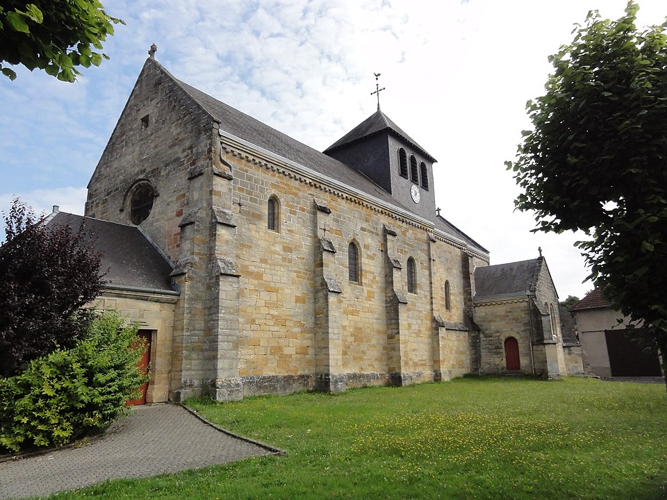 L'église était à l'origine romane, modifiée à la fin de l'époque gothique et au début de la Renaissance. Le porche, daté de 1549, présente des motifs ornementaux de style Renaissance. Une voûte en pierre a été installée au XVIe siècle. À la fin du XVIIe siècle, le clocher a été abattu et remplacé par un clocher plus trapu. En 1944, la partie supérieure de l'édifice fut détruite par les troupes SS qui rasèrent le village. La restauration entreprise a permis de conserver plusieurs éléments remarquables : autels, statuaire, chaire et une belle armoire eucharistique. L'autel latéral, de forme rectangulaire, est caractéristique de la fin du XVIIe siècle et porte en son centre un phénix, symbole de résurrection. Le maître-autel appartient pleinement au XVIIIe siècle. Le retable en pierre comprend une niche abritant une statue de Saint-Nicolas en pierre ; son visage très expressif témoigne de grandes qualités plastiques. Les peintures actuelles laissent apparaître d'importantes traces de polychromie ancienne. La chaire à prêcher est l'une des cinq chaires en pierre conservées en Meuse et antérieure à la Révolution ; son répertoire décoratif, notamment les feuilles d'acanthe sous la cuve et à la base de la montée d'escalier, permet de la dater entre la fin du XVIIe siècle et le début du XVIIIe siècle.