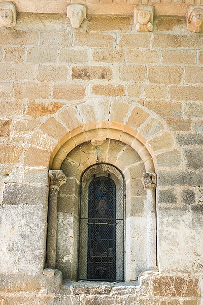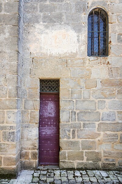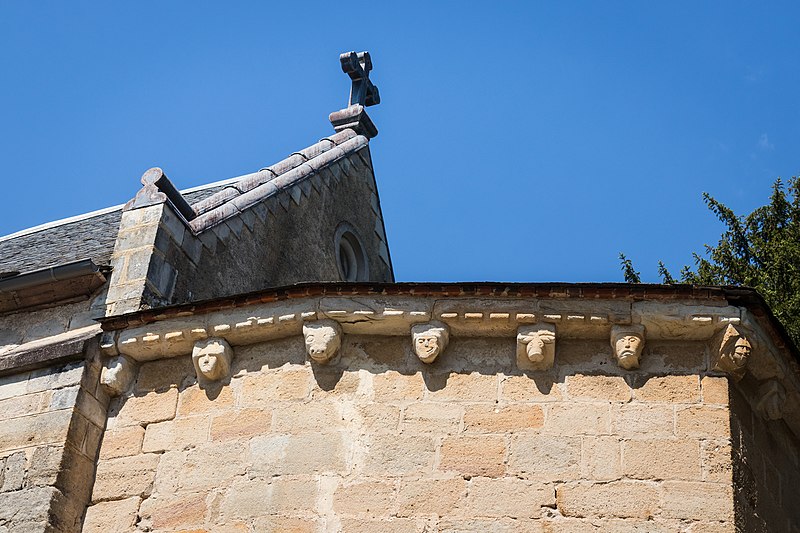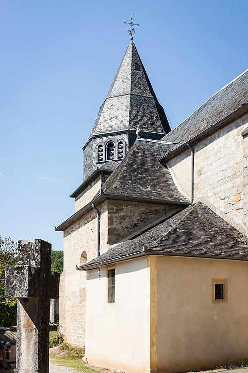 Église de la fin du XIIe siècle, elle comprend une nef à laquelle furent ajoutées postérieurement une chapelle de part et d'autre du chœur voûté en berceau. La nef a été très remaniée. Le portail d'entrée, du XIIIe siècle, supporte un clocher volumineux du XIIe siècle ; son étage octogonal et sa flèche, cette dernière du XVIIIe siècle, sont constitués par une charpente habillée d'ardoises. Quatre faces de l'octogone sont ajourées de baies à trois divisions encadrées de zinc. L'abside est à cinq pans. Les colonnes de l'arc triomphal conservent leurs chapiteaux sculptés et les corniches sont ornées de modillons historiés.