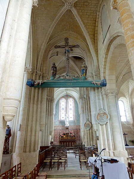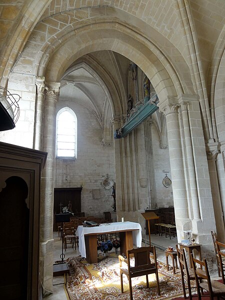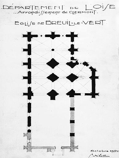 L’église Saint‑Martin de Breuil‑le‑Vert, située dans la vallée de la Brêche en Oise, est une paroisse catholique désormais rattachée à la Miséricorde Divine en Clermontois et classée monument historique. L’édifice présente une composition atypique : une large nef unique qui s’ouvre à l’est sur les deux vaisseaux d’un grand chœur à chevet plat, et une chapelle latérale sud avec abside à pans coupés accolée aux deux premières travées du chœur. Sur la façade et dans la nef subsistent les grandes arcades romanes bouchées, vestiges de l’église primitive de la fin du XIe siècle, aujourd’hui visibles aussi depuis l’extérieur en raison de la disparition du bas‑côté sud au début du XIXe siècle. La nef actuelle relève majoritairement du début du XVIe siècle, mais elle a reçu sa configuration intérieure avec des voûtes d’ogives en briques et plâtre lors des travaux de 1870–1872 qui masquent une charpente lambrissée en carène renversée du XVIe siècle. En revanche, le chœur forme un ensemble assez homogène de la première moitié du XIIIe siècle ; il ne compte qu’un seul niveau d’élévation et témoigne d’une architecture gothique soignée. La deuxième travée du côté sud supporte la base du clocher en bâtière, qui constitue l’élément extérieur le plus remarquable de l’édifice, tandis que les deux dernières travées des vaisseaux forment un chœur‑halle aux supports amincis. L’église occupe le bourg, rue du Marais, dans l’enclos du cimetière qui précède la façade occidentale ; elle est bordée au nord par la rue Saint‑Martin, à l’est par l’impasse des Écoles et au sud par la ferme du prieuré, successeur du prieuré dépendant de l’abbaye de Saint‑Germer‑de‑Fly. La donation de la paroisse à l’abbaye, attestée aux alentours de 1099–1100, permit la fondation d’un prieuré qui joua un rôle dans la vie paroissiale jusqu’à sa suppression définitive et sa transformation en ferme au XVIIIe siècle. L’état roman de la fin du XIe siècle se reconnaît notamment aux chapiteaux géométriques des grandes arcades et à des traces de transept, tandis que la campagne gothique des XIIe–XIIIe siècles a remplacé la croisée du transept et édifié le vaste chœur à collatéral nord. Au fil des siècles, l’édifice a connu des remaniements importants : suppression du bas‑côté nord et élargissement de la nef au XVIe siècle, embellissements et réparations aux XVe–XVIe siècles financés par des mécènes locaux, puis travaux de consolidation et aménagements au XIXe siècle, parmi lesquels la voûte néo‑gothique de la nef et la construction de la sacristie. La Révolution entraîna un inventaire en 1790, la refonte d’une cloche la même année, la vente des biens de la fabrique en 1794 et une reprise du culte seulement après le Concordat avec la nomination d’un nouveau curé au début du XIXe siècle ; c’est également autour de cette époque qu’a eu lieu la démolition du bas‑côté sud et le bouchage des ouvertures donnant sur l’ancien prieuré. Les interventions du XIXe siècle ont modifié l’authenticité de certains éléments : démolition partielle de boiseries, percement de nouvelles baies au nord, remplacement des petites fenêtres romanes et installation des voûtes de 1870–1872, mesures parfois critiquées pour leur manque de respect de l’état ancien. Au XXe siècle, la paroisse a vécu la mise sous séquestre des biens de la fabrique, la classification de l’église en 1921 et la disparition de nombreux registres et archives pendant la Première Guerre mondiale ; l’organisation des offices a progressivement évolué vers un rythme partagé entre clochers voisins. Des recherches et opérations de conservation ont été menées plus récemment : des vitraux du XIIIe siècle provenant de la chapelle sud ont été retrouvés aux États‑Unis en 1979 et des reproductions en ont été réalisées, un architecte du patrimoine a relevé en 1989 la proposition de restituer la charpente lambrissée en supprimant les voûtes néo‑gothiques, et une association de sauvegarde fondée en 2015 a mobilisé des fonds pour restaurer la chapelle latérale sud et le versant sud des premières travées du chœur. L’édifice est régulièrement décrit : nef unique de quatre travées, chœur de quatre travées prolongé d’un collatéral nord de même hauteur, chapelle sud de deux travées, tourelle d’escalier, clocher en bâtière et sacristie moderne accolée au collatéral. Les dimensions intérieures et extérieures montrent une longueur totale hors‑œuvre de 36,55 mètres, une nef longue de 17,55 mètres, un chœur de 19,00 mètres, une largeur intérieure moyenne de 8,90 mètres dans la nef et de 12,20 mètres dans le chœur, et des hauteurs sous voûte qui varient autour de 8,75 mètres pour la nef et de 9,09 à 9,35 mètres pour le chœur. À l’intérieur, la nef conserve les quatre grandes arcades romanes bouchées au sud avec des piliers cruciformes et des chapiteaux à décor archaïque, tandis que le chœur présente des piliers fasciculés, des chapiteaux végétaux typiques du XIIIe siècle, des clés de voûte sculptées et quelques irrégularités liées aux différentes campagnes de construction et de réparation. Le chœur‑halle oriental, plus léger par l’amincissement des supports, offre un espace soigné avec un chapiteau central et des bases évoluées proches du rayonnant, tandis que le collatéral nord a bénéficié de reprises flamboyantes et de refaits ponctuels. La chapelle latérale sud, aujourd’hui dédiée à saint Joseph, associe des éléments a priori plus anciens et des remaniements ultérieurs, tant au niveau des ogives que des supports, et communique encore par une arcade bouchée qui rappelle l’existence du bas‑côté roman disparu. Le clocher en bâtière, appareillé en pierre de taille, combine
