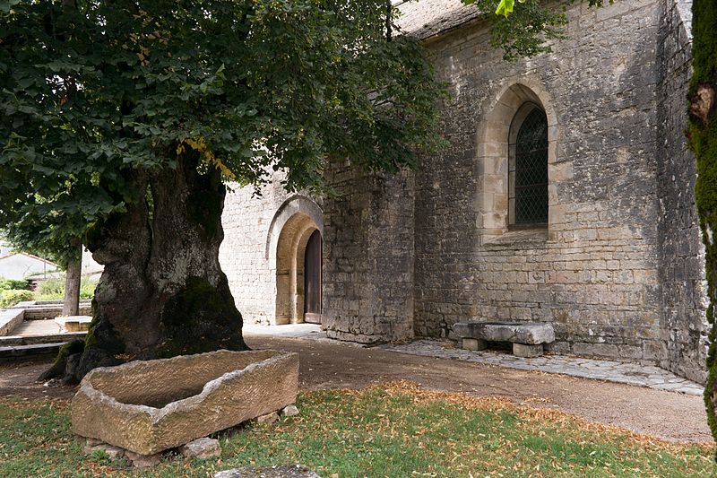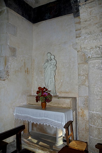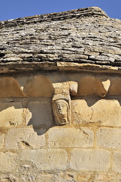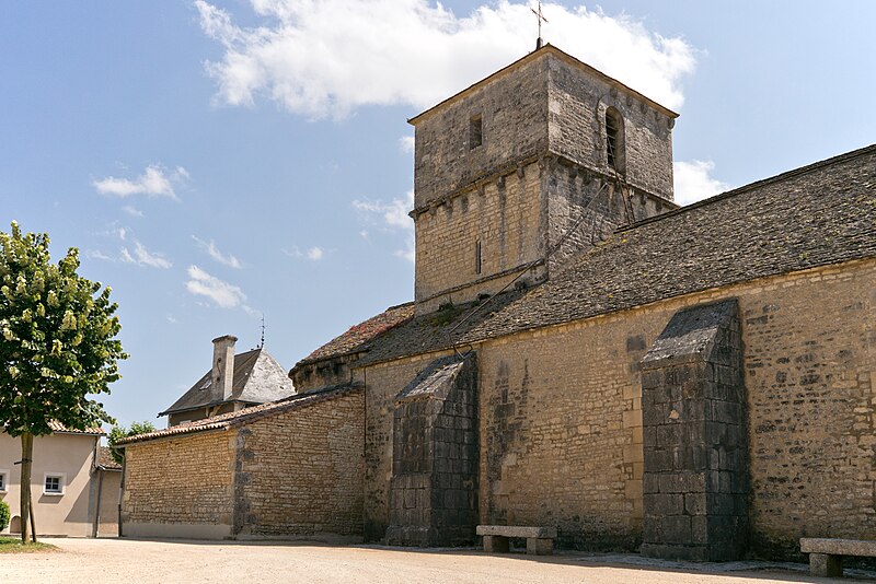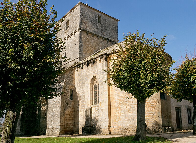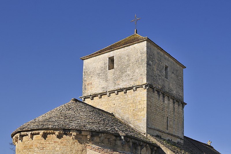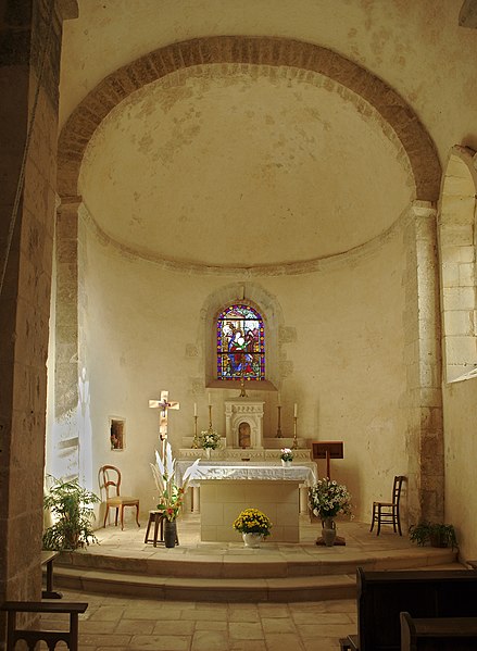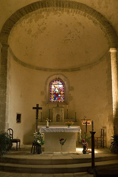 Construite au début du XIIe siècle, l'église est demeurée intacte, sans adjonction postérieure. Son plan comprend une nef de deux travées flanquée de bas-côtés étroits. Les piliers sont cantonnés de colonnes. La nef est voûtée en berceau d'ogive, tandis que les bas-côtés présentent des voûtes en plein cintre. La travée du clocher est surmontée d'une coupole octogonale reposant sur des trompillons ; une petite baie pénètre la coupole. Le sanctuaire et le chœur complètent le plan liturgique. La porte latérale sud est entourée d'une archivolte ornée d'une suite de petits compartiments cubiques. Le clocher, pourvu d'une corniche médiane à corbelets, est percé de quatre baies en plein cintre sans archivolte ni colonnettes. Le cordon de l'abside alterne corbelets à figures, petites arcatures et mascarons. L'intérieur conserve une litre funéraire peinte.