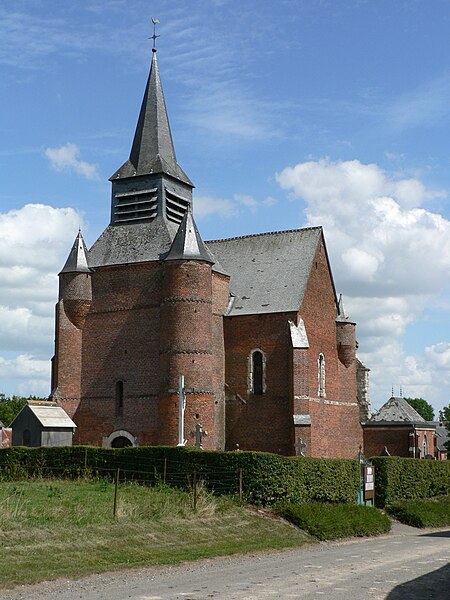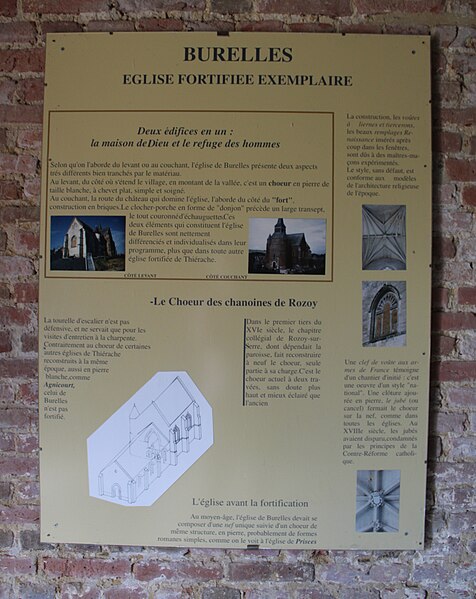 L'église Saint-Martin de Burelles, située sur la commune de Burelles dans le département de l'Aisne en Hauts-de-France, est une église fortifiée. Le chœur a été élevé au milieu du XVIe siècle sur les fondations d'une première église médiévale dont il ne subsiste aucune trace. La nef, le transept et le porche correspondent à la partie fortifiée, semble-t-il construite d'un seul jet au début du XVIIe siècle par un maçon thiérachien dans un style local en briques. Le clocher-porche, tour carrée en brique, n'était pas achevé ou nécessitait des reprises en 1664, comme l'indique un contrat avec un maçon de Cilly. La sacristie a été reconstruite en 1874 par l'architecte Benard dans un style néo-Renaissance. Après la Première Guerre mondiale, on a repris les voûtes du donjon et refait une partie du clocher, achevée en 1926. L'édifice a été inscrit au titre des monuments historiques en 1927 puis classé en 1931.