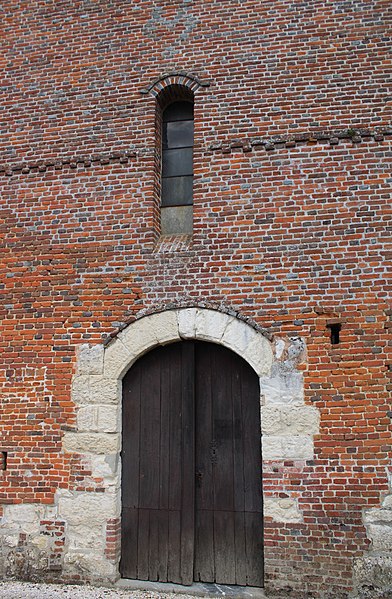 Les éléments de défense et d'usage sont nombreux : l'église est établie sur une motte, le chevet conserve une fenêtre murée et de petites ouvertures de guet, la façade est flanquée d'une haute tour percée de meurtrières et d'une échauguette reposant sur un contrefort en briques, et la bretèche dans la salle de refuge supérieure du transept servait aussi de latrines. Le clocher renferme des salles de refuge aménagées, parfois dotées d'une cheminée. Le portail, partiellement en pierre calcaire et en plein cintre, est protégé par deux meurtrières et surmonté d'une étroite ouverture destinée à jeter des projectiles sur d'éventuels assaillants.