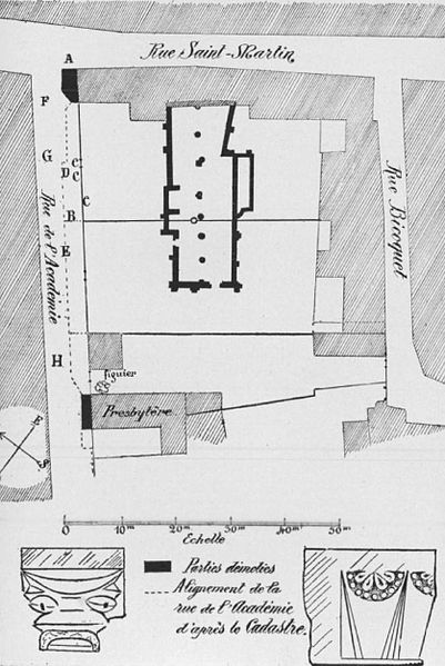 Les restes de l’église Saint-Martin de Caen sont les vestiges d’une ancienne paroissiale catholique inscrits au titre des monuments historiques le 25 juin 1929. Un village se développe du Ier au IIIe siècle sur les bords de l’Odon, puis se déplace au IIIe siècle vers un site plus au nord, à l’amorce des coteaux menant à la plaine de Caen. Un lieu de culte dédié à Martin de Tours est fondé au VIIe siècle sur ce nouvel emplacement. La proximité de l’ancienne voie romaine, aujourd’hui rue Saint-Martin, a suggéré l’hypothèse d’une nécropole païenne antérieure, mais les plus anciennes sépultures mises au jour datent du VIIe siècle et aucune preuve archéologique ne confirme l’existence d’une nécropole plus ancienne. Des fouilles menées par Michel de Boüard dans les années 1960 ont mis au jour des traces d’une église pré-romane entourée d’un important cimetière haut-médiéval comprenant entre cent cinquante et deux cents sarcophages. Aux Xe et XIe siècles, le développement urbain le long de l’Odon conduit à l’enceinte du bourg et place la majeure partie de la paroisse Saint-Martin en situation de faubourg, dit Bourg-l’Abbé. À la même époque, le patronage passe à l’abbaye aux Dames après un échange impliquant le chapitre de la cathédrale de Bayeux, tandis que les évêques de Bayeux conservent la perception d’une partie de la dîme. Une portion de la paroisse est détachée pour former la paroisse Saint-Nicolas sous le patronage de l’abbaye aux Hommes ; la paroisse Saint-Martin, qui relève du doyenné de Caen dans le diocèse de Bayeux, est traversée par la route menant à la Bretagne et au Bessin et est connue sous le surnom de Saint-Martin-de-la-Tannerie en raison de la présence de tanneurs sur les berges de l’Odon. L’église romane est édifiée au début du XIIe siècle, puis reconstruite dans le style gothique au XVe siècle. À la suite d’une décision judiciaire, le cimetière paroissial est transféré hors de la ville en 1784-1785, vers le cimetière des Quatre-Nations. L’ordonnance de 1791 qui réduit le nombre de paroisses caennaises incorpore Saint-Martin à la paroisse Saint-Étienne ; l’église est désaffectée en 1793, vendue comme bien national en 1796 et détruite en 1798. Le jeune Bernardin de Saint-Pierre a été pensionnaire au presbytère. Sur le plan architectural, des travaux d’élargissement de la rue de l’Académie dans les années 1850 ont exhumé une partie de l’ancien cimetière, un modillon roman et deux chapiteaux à godron, et le site a fait l’objet d’une fouille scientifique en 1964. L’édifice était orienté nord-nord-ouest – sud-sud-est ; à l’origine il ne comportait pas de collatéraux et les cloches étaient logées dans un clocher-mur. Une seconde nef dite « la collatérale » a été ajoutée ensuite à l’est, et un clocher-tour a été élevé en 1736 du côté opposé. Le chœur roman se terminait par une abside semi-circulaire ; l’église du XVe siècle présentait deux nefs à chevet plat, dont une partie subsiste encore en élévation.