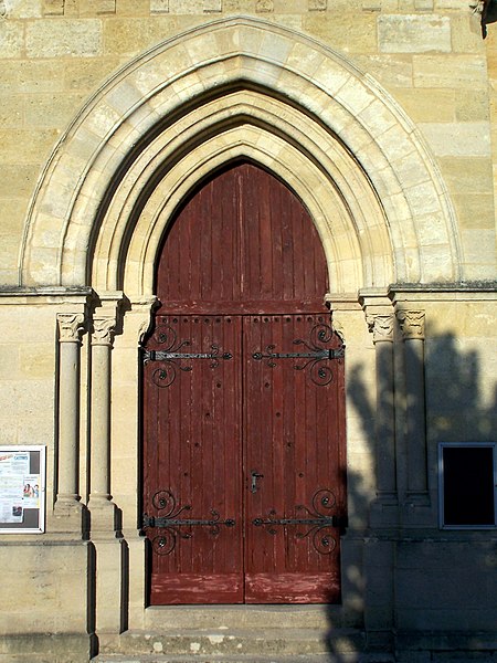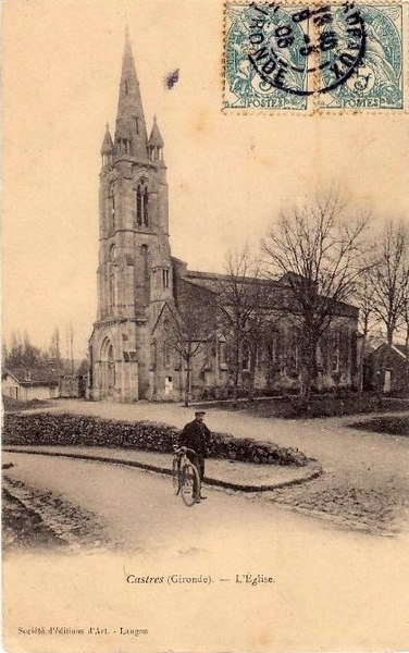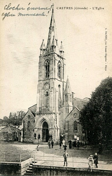 L'église Saint-Martin, située à Castres-Gironde (Gironde), est un édifice catholique organisé en trois nefs voûtées d'arêtes, terminées par une abside et deux absidioles en cul-de-four. L'ensemble a été reconstruit en 1867, mais l'abside romane a été conservée et classée au titre des monuments historiques en 1913. Les baies sont ornées de colonnettes, tant à l'intérieur qu'à l'extérieur. Les contreforts présentent une disposition singulière : entre le cordon accompagnant la naissance des archivoltes et la corniche, leur profil se compose d'une triple colonnette dont la centrale, plus volumineuse, crée un ressaut dans la corniche, tandis que les deux latérales s'amortissent dans la saillie des corbelets. L'abside a été surmontée d'un mur en maçonnerie pour permettre l'installation d'une charpente au-dessus de la voûte. L'édifice figure dans la liste des monuments historiques de la Gironde ; des ressources documentaires sont disponibles (Clochers de France, Observatoire du patrimoine religieux, base Mérimée, Wikimedia Commons).