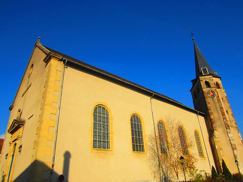La chapelle Saint-Étienne, édifiée à la seconde moitié du XIe siècle ou dans la première moitié du XIIe siècle, a été en grande partie démolie en 1830; seul le chœur et la tour-clocher édifiée au‑dessus ont été conservés. La nef et un nouveau chœur ont été reconstruits en 1831, date portée sur la façade occidentale, d'après les plans de l'architecte Derobe fils de Metz et par l'entrepreneur Jean Hoffmann de Yutz. L'édifice est ensuite devenu l'église paroissiale Saint-Martin, en remplacement de l'ancienne église située au sud‑est du village. Une tribune a été ajoutée en 1857, selon la datation fournie par des travaux historiques. Les fresques ont été réalisées par Jean Engel en 1900.