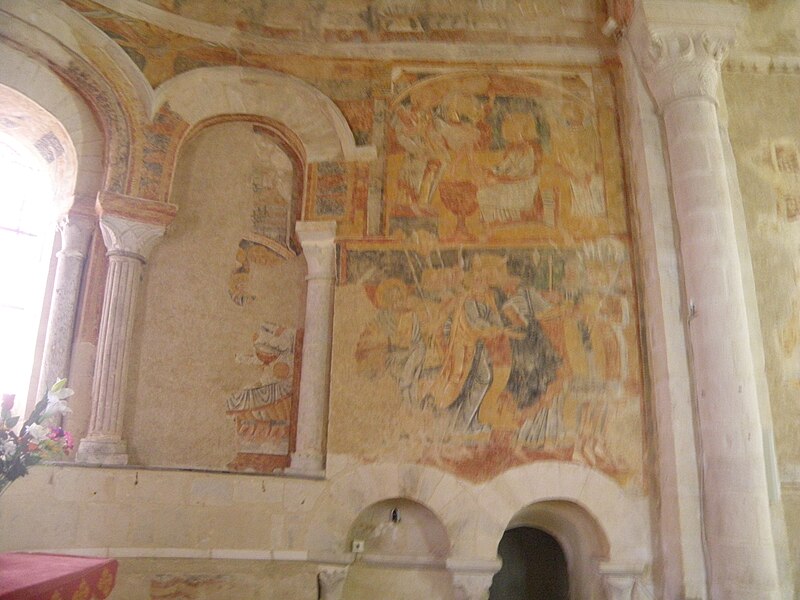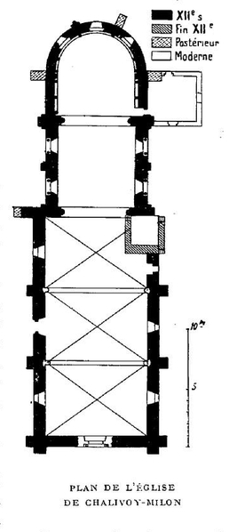 L'église Saint-Martin, dite aussi Saint-Éloi ou Saint-Sylvain, est située à Chalivoy-Milon dans le département du Cher. Initialement dédiée à saint Sylvain, elle est surtout connue sous le vocable de saint Éloi, tandis que le nom de saint Martin figure dans la notice des monuments historiques. De style roman, l'édifice conserve un important ensemble de peintures murales. Le domaine de Chalivoy appartenait à l'abbaye Saint-Sulpice de Bourges dès 819. Une mention d'une église Saint-Sylvain apparaît en 1032, mais elle ne correspond pas à l'édifice actuel. L'église telle qu'on la voit aujourd'hui a été bâtie au deuxième quart du XIIe siècle et servait alors d'église prieurale. Dans la seconde moitié du XIIe siècle a été ajouté un clocher latéral. La charpente de la nef a été reconstruite au XVe siècle. Au XVIIe siècle, une sacristie a été accolée au mur latéral nord. Cette sacristie a été remplacée vers 1837-1838 par une nouvelle dépendance au sud de l'abside. En août 1544, l'église fut consacrée de nouveau à saint Sylvain et à la Vierge; l'évêque bénit alors quatre autels, chacun dédié à plusieurs saints. Au cours du XVIIIe siècle, saint Éloi est attesté comme patron et, en 1732, la dédicace à saint Éloi est déjà mentionnée lors d'une visite pastorale. En 1759 on perça une petite porte latérale dans le mur sud de la nef, porte qui fut murée en 1885. La tribune fut construite en 1854 et la découverte de fresques est signalée en 1868. Les travaux de 1885 ont entraîné la construction de voûtes d'ogives en briques pour trois travées de la nef, le percement de nouvelles baies et la destruction de fresques de la nef. Les parties hautes du clocher ont fait l'objet d'une réfection complète en 1951. À la fin du XXe siècle, la voûte et les travées de 1885 ont été supprimées et les baies romanes obturées au XIXe siècle ont été rouvertes, permettant la vue directe sur la charpente en châtaignier du XVIe siècle. L'édifice est classé au titre des monuments historiques par arrêté du 13 juillet 1911. L'église se compose de trois parties; le clocher, placé du côté sud entre le chœur et la nef, communique autrefois avec la charpente par une passerelle en bois visible sur sa face nord. La sacristie actuelle date de la reconstruction du XIXe siècle et la façade nord de la nef comporte une petite porte dont le tympan est décoré d'un agneau portant une croix soutenu par deux anges. L'édifice était entièrement recouvert de fresques qui avaient été masquées sous du plâtre jusqu'au milieu du XIXe siècle. Les peintures du chœur et de l'abside ont été restaurées, bien qu'elles soient abîmées, tandis que les fresques de la nef ont en grande partie disparu lors des travaux de 1885. Les décors du chœur et de l'abside représentent de nombreuses scènes bibliques et évangéliques : la Résurrection de Lazare, l'entrée de Jésus à Jérusalem, la Nativité, l'annonce aux bergers, la fuite en Égypte, le massacre des Innocents, la Cène, le lavement des pieds, le baiser de Judas et divers épisodes de la Passion tels que la Crucifixion, la Déposition et la Mise au tombeau, ainsi que des scènes judiciaires et de flagellation. La voûte du cul-de-four de l'abside montre le Christ en majesté dans une mandorle, entouré des symboles évangéliques, de séraphins et de vingt-quatre vieillards couronnés; les ébrasements des baies portent des figures de saints et d'évêques et l'arc d'entrée de l'abside illustre les travaux des mois. Un grand médaillon circulaire portant l'agneau pascal occupait la jonction des bras d'une grande croix peinte sur la voûte; autour s'alignaient des médaillons avec le buste de martyrs et, sous les arcades, douze personnages debout, apôtres ou Pères de l'Église, tenaient des phylactères. Dans la nef subsistent des fragments, notamment un vestige de la partie supérieure d'une mappemonde et deux petites figures en costume du XIIe siècle en position d'orants, dont la signification (signature des peintres ou représentation des commanditaires) reste interrogée. La mappemonde géante, d'environ six mètres de diamètre, peinte sur le mur sud en avant du clocher, a été détruite lors des travaux de 1885; elle a fait l'objet de descriptions détaillées par l'abbé Pierre-M. Lenoir et par Alphonse Buhot de Kersers, qui signalent la présence d'éléments bibliques et mythologiques, de fleuves et de cités telles que Babilonia, ainsi que de personnages remarquables comme Nimrod et des êtres fabuleux.