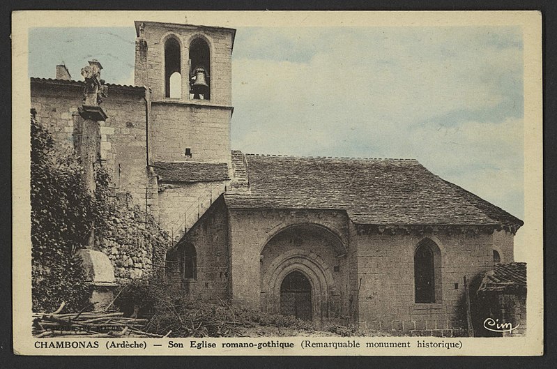 L'église Saint-Martin de Chambonas, située dans le département de l'Ardèche en France, est une église paroissiale classée au titre des monuments historiques depuis le 5 août 1907. Construite au début du XIIIe siècle, elle a vu édifier le chœur, une nef de deux travées et le porche. Une travée supplémentaire et le clocher ont été ajoutés vraisemblablement au XVe siècle. Le presbytère a été construit au XVIIIe siècle par le prieur Claude Allier. À l'extérieur, les sculptures présentent une grande variété de motifs et de figures : « lo desgobilhaïre », « lo cagaïre », une boule fleurie de croix, un marteau, un ours, « lo bofarèl », un visage faisant la trogne, une tête blessée, un sonneur de trompette, « lo podet », des instruments d'artisans, une genette, un sanglier, un poisson, un épi encadré par deux oiseaux, une amphisbène, une tête caprine, une représentation de saint Jean et un cordon orné d'une fleur. À l'intérieur, on observe notamment une feuille et un visage sur un chapiteau nord, un calice et un pichet sur l'abside, des têtes couronnées dont l'une sur la colonne sud, une fleur de lys sur la colonne sud, le blason de Naves sur le mur nord de la troisième travée, des détails de la frise de l'abside, un épi entre deux oiseaux et un personnage grimaçant. L'ensemble signale une riche iconographie sculptée qui complète l'intérêt historique et architectural de l'édifice.