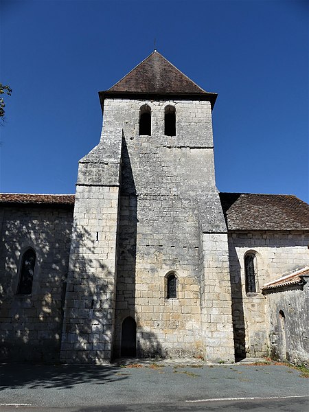 L'église Saint-Martin de Champeaux est une église romane à nef unique située dans le petit bourg de Champeaux, sur la commune nouvelle de Mareuil en Périgord, dans le nord du département de la Dordogne en Ribéracois, à environ soixante mètres au sud de la Nizonne. La première mention écrite du lieu apparaît au XIIIe siècle dans un pouillé sous la forme Champeus, postérieurement à la construction de l'église. Au XIVe siècle, la paroisse dépendait de la châtellenie des Bernardières. Le portail date du XIVe siècle ; l'oculus qui le surmonte a été réalisé au XIXe siècle. L'édifice a été remanié au XVe siècle et une chapelle latérale nord, de style gothique, y a été ajoutée à la Renaissance. Les culs-de-lampe des ogives de cette chapelle, ornés d'écussons de la famille Fayolle, ont été martelés en 1793. En 1863, le cimetière qui entourait l'église a été déplacé sur la rive droite de la Nizonne. L'église a été inscrite au titre des monuments historiques le 27 septembre 1948. Orientée selon un axe est-ouest, l'église présente un pignon occidental éclairé par un oculus et sommé d'une croix en pierre ; le portail comporte quatre voussures et deux têtes sculptées de part et d'autre. La nef unique de quatre travées s'ouvre au nord sur la chapelle gothique ; nef et chapelle sont couvertes de toits à deux pans. À la hauteur de cette chapelle, un clocher de plan rectangulaire repose sur une coupole soutenue par quatre piliers sculptés de feuillages. Le clocher est épaulé au sud par deux contreforts inégaux, celui de l'ouest étant plus haut et plus massif que celui de l'est, et il est couvert d'un toit à quatre pans orné de deux croix métalliques. Les baies du clocher, deux sur chaque face, sont en plein cintre et de style roman. Le chœur, éclairé par trois baies romanes, se termine par un chevet plat auquel une sacristie a été ajoutée à l'angle sud-est. Plusieurs objets mobiliers ont été inscrits au titre des monuments historiques le 8 janvier 1975 : la porte de la sacristie ornée d'une peinture à l'huile du XVIIe siècle représentant une religieuse qui pourrait être sainte Radegonde ou une abbesse de l'abbaye de Ligueux de la famille de Beaupoil de Saint-Aulaire, et qui pourrait provenir du proche château des Bernardières ; une croix de procession en cuivre du XVIIIe siècle ; un calice et une patène en argent du XIXe siècle. La photothèque comprend notamment des vues du clocher et de ses contreforts, des croix du pignon occidental et du clocher, du portail et de son décor avec tête sculptée, ainsi que du chevet plat et des baies romanes et gothiques à l'angle du chœur et de la chapelle nord.