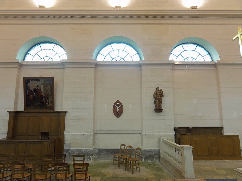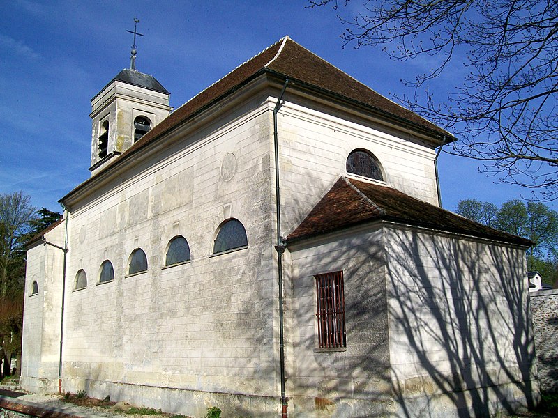 L'église primitive se trouvait un peu plus au nord, dans l'enceinte du domaine du château et des bâtiments de la ferme seigneuriale ; elle fut partiellement remaniée en 1568 et son chœur renouvelé en 1645 aux frais du prieur Amador‑Jean‑Baptiste de Vignerot du Plessis de Richelieu. Au troisième quart du XVIIIe siècle, le mauvais état et l'emplacement malcommode décidèrent le prieur à faire reconstruire l'église à l'emplacement actuel face à sa résidence. L'architecte Jacques Cellerier imposa un style néoclassique sobre ; contraint par un budget limité, il utilisa des matériaux peu onéreux tout en respectant une conception cohérente que l'on compare à l'église de Tremblay‑en‑France. La nouvelle église fut inaugurée en 1786. Le clocher, qui posa des problèmes de stabilité, dut être rebâti en 1899. Après la guerre, l'usage dominical déclina : l'édifice ne fut plus utilisé que pour quelques célébrations et finit par être désaffecté dans les années 1970, puis restauré à partir de 1977 et rouvert au culte ; la paroisse rejoignit celle de Luzarches sur demande des fidèles. L'église est classée monument historique par arrêté du 2 janvier 1990 et les messes dominicales y sont aujourd'hui célébrées de façon irrégulière, environ tous les deux mois d'octobre à juin à 9 h 30.