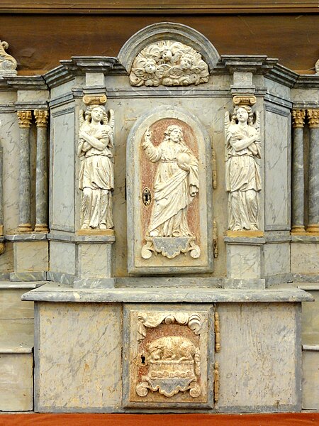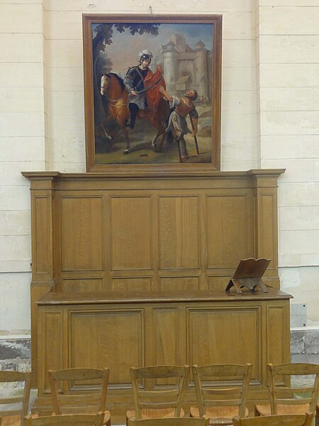 L'église conserve six objets classés provenant de l'ancienne église : le dais du bâton de procession de la confrérie Saint‑Martin, en bois doré de style Louis XV et contenant une statuette équestre de saint Martin ; un confessionnal richement sculpté de style Louis XV ; deux statues en bois du XVIe siècle représentant la Vierge à l'Enfant et saint Jean‑Baptiste ; la dalle funéraire de Simon Le Cordier, déplacée de l'ancienne église et placée au milieu du chœur ; un grand tableau retable intitulé « Christ au désert servi par les anges » attribué à Liébault, inspiré d'une composition de Charles Le Brun et portant, en bas à gauche, les armes du prieuré ainsi que la date 1736 ; et une cloche provenant de l'ancienne église portant une longue inscription. Parmi les autres éléments remarquables figurent un tabernacle baroque orné d'un bas‑relief du Christ et d'un petit tabernacle inférieur à l'iconographie de l'Agneau, un aigle‑lutrin en bois doré probablement du XIXe siècle aujourd'hui relégué en sacristie, ainsi que deux dalles funéraires dont celle de Mathieu Porlier comportant une longue épitaphe encadrée de motifs macabres.