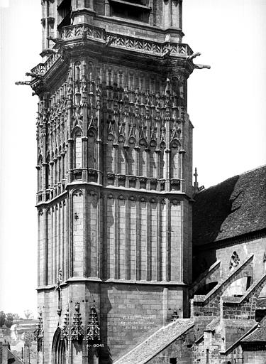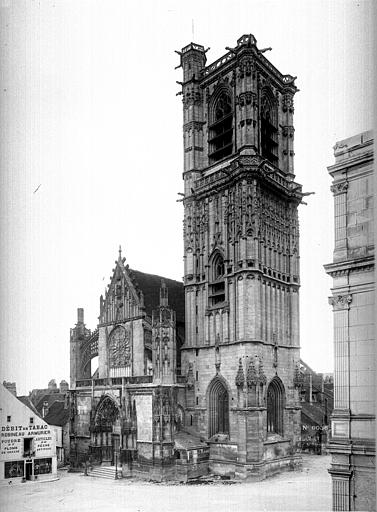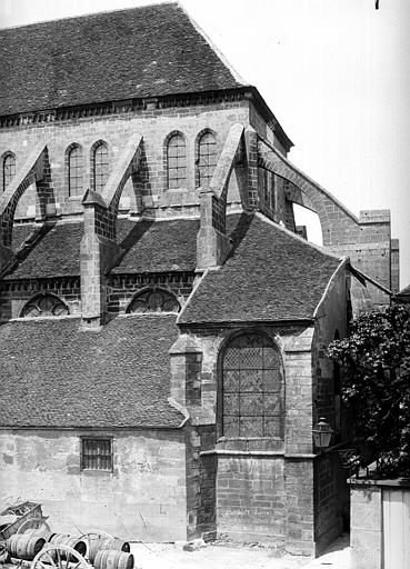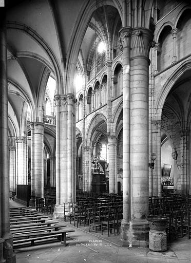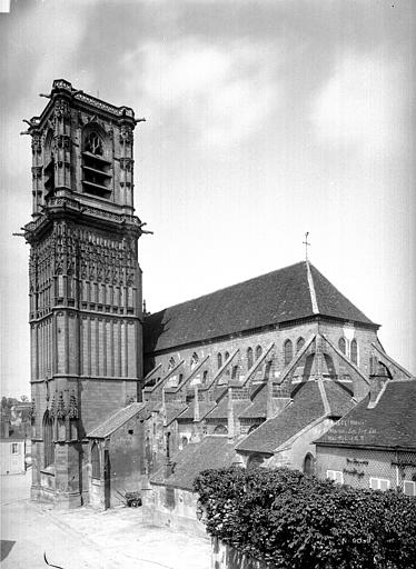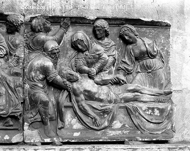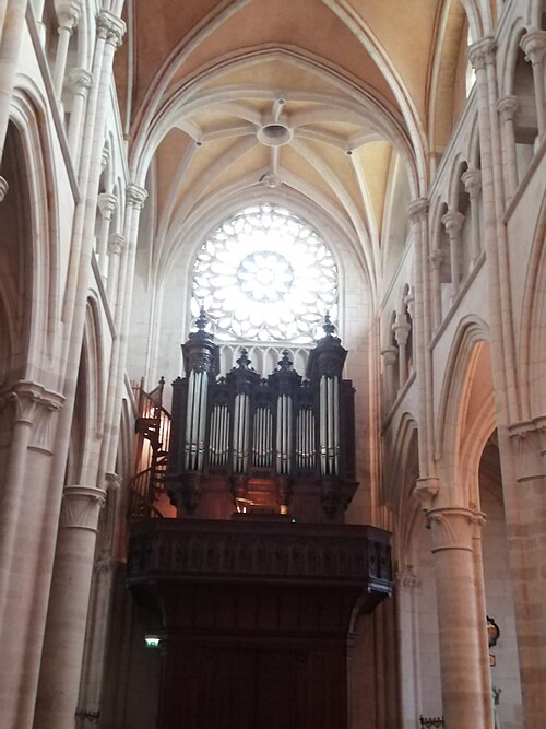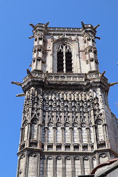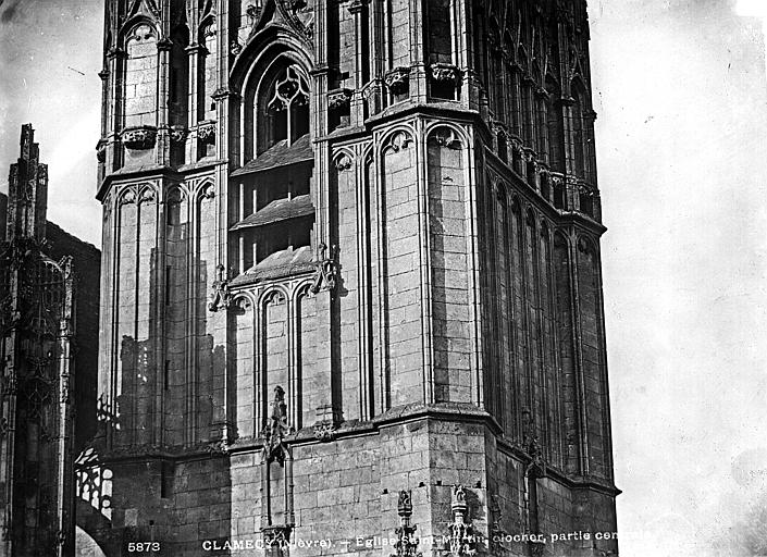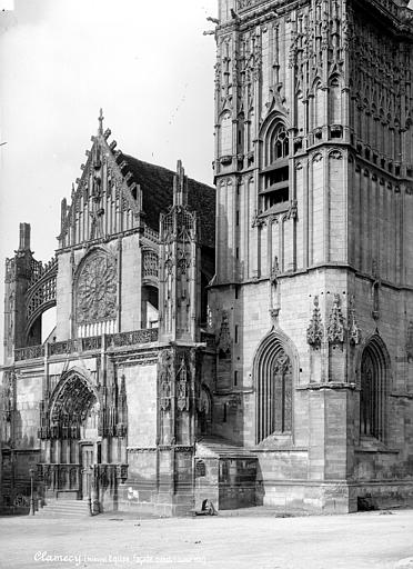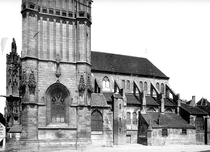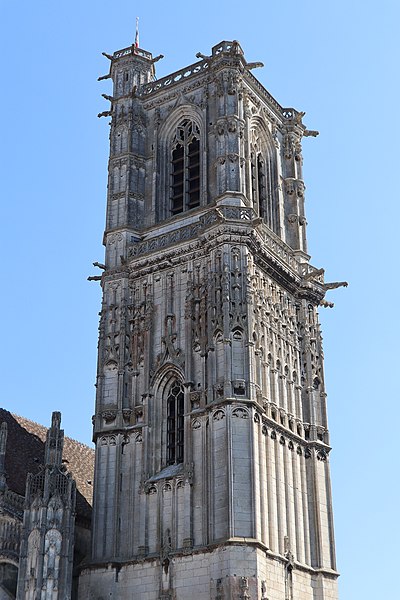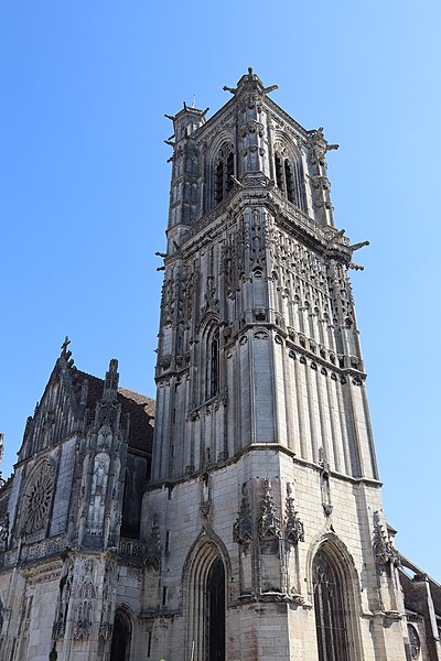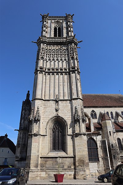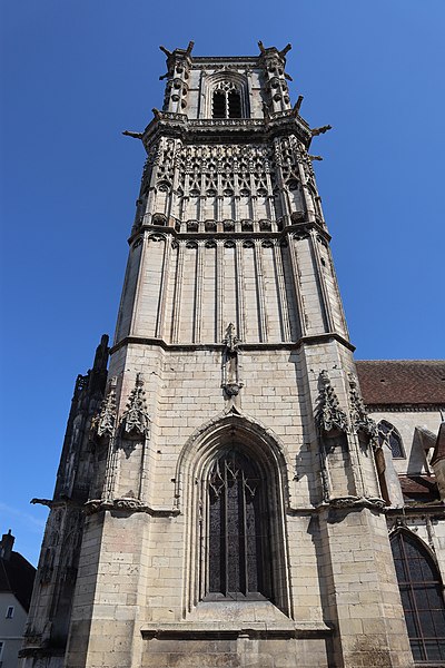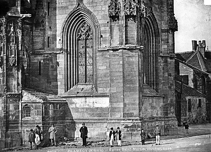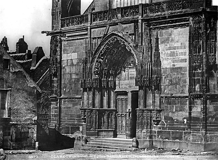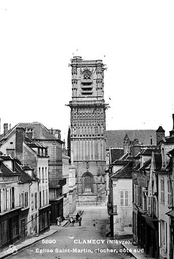 L’église Saint-Martin de Clamecy, ancienne collégiale située dans la Nièvre en Bourgogne Franche-Comté, prend son origine d’une chapelle paroissiale datée du VIIIe siècle. Au IXe siècle, les comtes de Nevers s’installent à Clamecy et contribuent au développement de la ville en fondant notamment une paroisse, un château-fort et la chapelle paroissiale primitive. La reconstruction au XIe siècle, conduite par le vicomte Guy de Clamecy et l’évêque d’Auxerre Geoffroy de Champallement, vise à accueillir un collège de huit chanoines ; l’édifice est d’abord dédié à Saint-Potentien. Le chapitre prospère grâce à des dîmes, rentes, droits de pêche et de chasse ainsi qu’à des dons de terres, vignobles et biens offerts par les seigneurs et la comtesse Ida, puis par Mahaut de Courtenay. Bien qu’aucun texte n’atteste précisément le lancement des travaux, la plupart des historiens situent leur reprise autour de 1215. La campagne principale de construction s’étend approximativement de 1215 à 1520 : en 1240 sont réalisées les trois premières travées de la nef et le chœur, inspiré du gothique bourguignon et d’éléments cisterciens, avec alternance de piles simples et complexes, arcs surhaussés ornés de têtes humaines et voûtes en croisées d’ogives. La dernière travée, achevée au XVe siècle, fixe le plan définitif de la collégiale, qui présente un chevet plat. En 1437 la charpente de la nef est refaite et l’année suivante l’église prend le vocable de saint Martin. La tour monumentale orientée au sud‑ouest est élevée en 1497, réalisée en pierre de Basseville par Pierre Cuvé dit « Bat-le-Duc » et les habitants de Clamecy, et constitue une fierté locale. Vers 1515 s’achèvent les travaux de la tour et commencent ceux du portail et de la façade : le portail, essentiellement gothique, est surmonté de trente-deux scènes de la vie de saint Martin et la façade se distingue par son abondante décoration. La légende rapporte la mort de Pierre Cuvé écrasé par un bloc de pierre, sculpture que son élève aurait figurée et qui est aujourd’hui exposée à l’entrée de Clamecy, rue du Grenier à Sel ; un mouvement de foule en 1654 a par ailleurs causé plusieurs décès lors d’une visite de la tour. Dès 1520 les gros travaux sont terminés, mais en 1521 François Ier remarque un fléchissement des murs ; il finance l’installation d’un jubé confiée au chanoine Guillaume Colas et achevée en 1525, élément dont on débat encore aujourd’hui s’il fut cause ou remède du fléchissement ; ce jubé est finalement retiré en 1840 par Eugène Viollet‑le‑Duc lors du classement de la collégiale sur la première liste des Monuments historiques. En 1525 sont également posées des portes en chêne massif. La bénédiction des cloches de la tour a lieu en 1778 pour Martine, Marie et Gabrielle, avec des parrains et marraines de la noblesse locale ; Martine subsistera jusqu’en 1851 où elle est fendue lors des troubles de 1848, et le carillon sera restauré en 1857 grâce au financement de familles locales, bénédiction donnée par l’évêque de Nevers Dominique‑Augustin Dufêtre, les cloches ayant alors été louées comme « le plus beau son du diocèse de Nevers et d’Auxerre ». La Révolution entraîne la suppression du chapitre, la transformation de l’édifice en Temple de la Raison et de nombreuses dégradations ; en 1793 Fouché ordonne la démolition de la tour et le démontage des gargouilles et des cloches pour empêcher l’édifice, selon ses termes, et pour faire des canons. À la fin du XIXe siècle est installé l’orgue du facteur Aristide Cavaillé‑Coll ; cet instrument, restauré et inscrit en plusieurs phases, est finalement classé et figure parmi les trois orgues de ce maître recensés en Bourgogne‑Franche‑Comté. Le XXe siècle connaît quelques épisodes marquants : en mai 1935 un drapeau rouge est hissé au sommet de la tour après l’élection d’un conseil municipal communiste, le drapeau tricolore de la Révolution étant replacé après la Seconde Guerre mondiale et encore en place aujourd’hui, et la guerre de 1939‑1945 n’occasionne que des dommages mineurs, notamment la chute de gargouilles le 16 juin 1940 suite à des bombardements allemands. À l’intérieur, la collégiale présente de grandes arcades, un triforium à quatre arcades et une rangée de fenêtres hautes à remplage en arrière du triforium ; ces fenêtres sont souvent géminées et tréflées, accompagnées de rosaces quadrilobées et d’une rose à sept lobes dans les premières travées des bas‑côtés. La dernière travée se distingue par une voûte flamboyante à liernes et tiercerons, tandis que les autres travées conservent des voûtes en croisées d’ogives. À l’entrée, face aux bénitiers, une gravure en latin et en grec — « Nipson anomhata mh monan opsin » et « Lava peccata non solam frontem » — exhorte à une purification intérieure et extérieure. L’édifice comprend huit chapelles : les fonts baptismaux, Saint‑Joseph, l’Annonciation, le Crucifix (ou Saint‑Jacques / Saint‑Sacrament), la Sainte‑Vierge, le collège, Jeanne d’Arc et la chapelle de la tour. Le jubé primitif de 1525 reposait sur quatre colonnes, comportait des niches pour des statues des Docteurs de l’Église et deux bas‑reliefs représentant la Cène et la Mise au Tombeau ; ces bas‑reliefs, détaillant scènes et expressions des personnages, sont exposés aujourd’hui dans la nef depuis la destruction du jubé en 1840. La tour, adossée au sud contre la deuxième travée du bas‑côté, comporte deux étages carrés ornés d’arcatures et de consoles destinées à recevoir des statues, des fleurons découpés, des baies à abat‑son et une balustrade en encorbellement au second étage ; elle se termine par une terrasse protégée par une balustrade, renforcée de contreforts