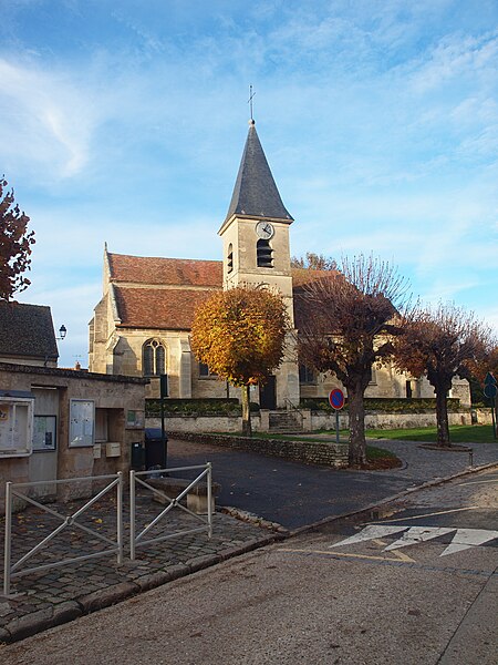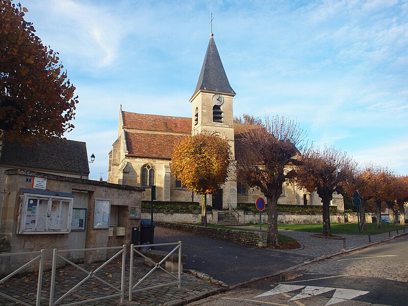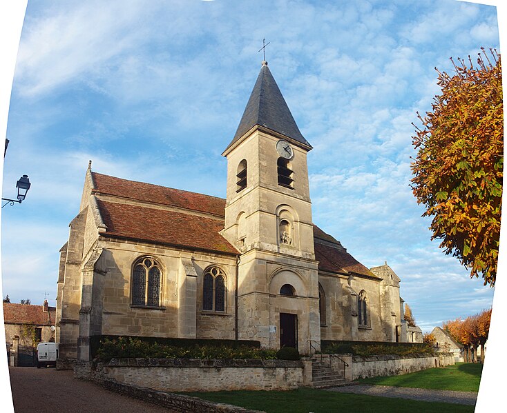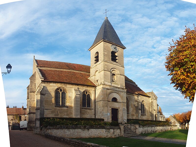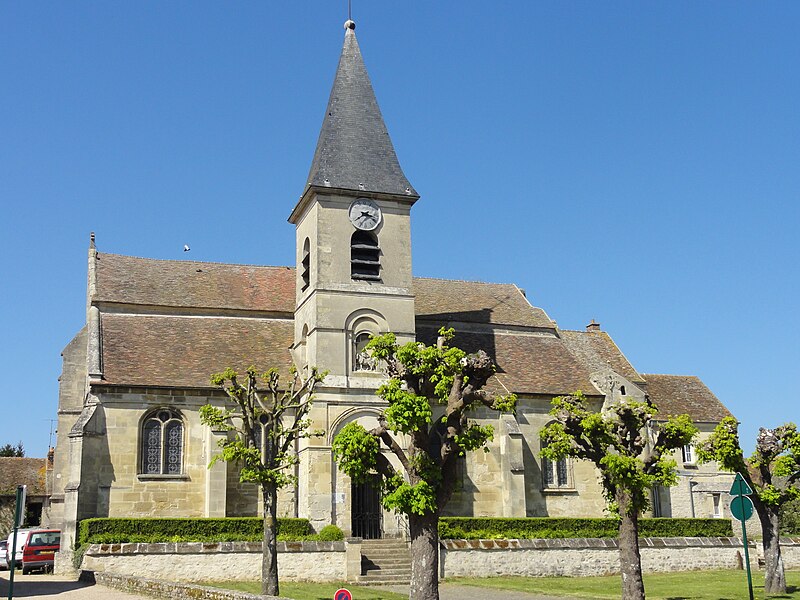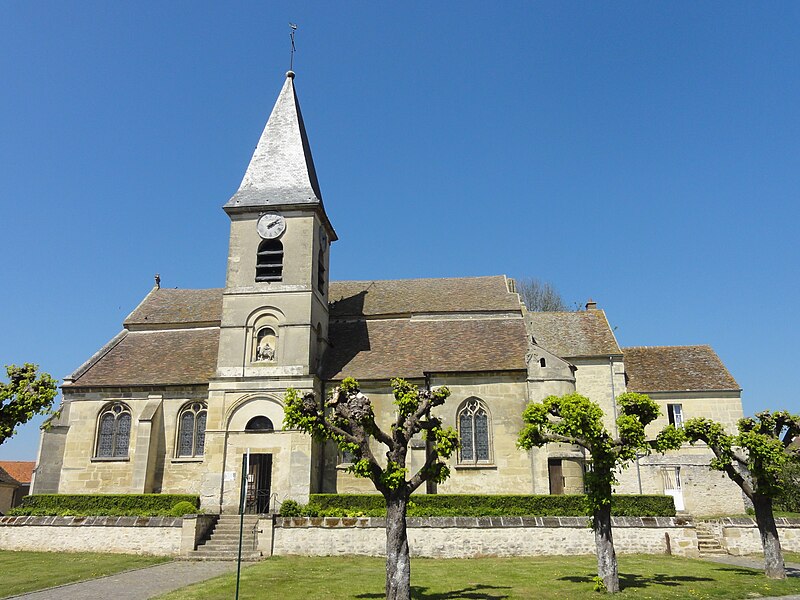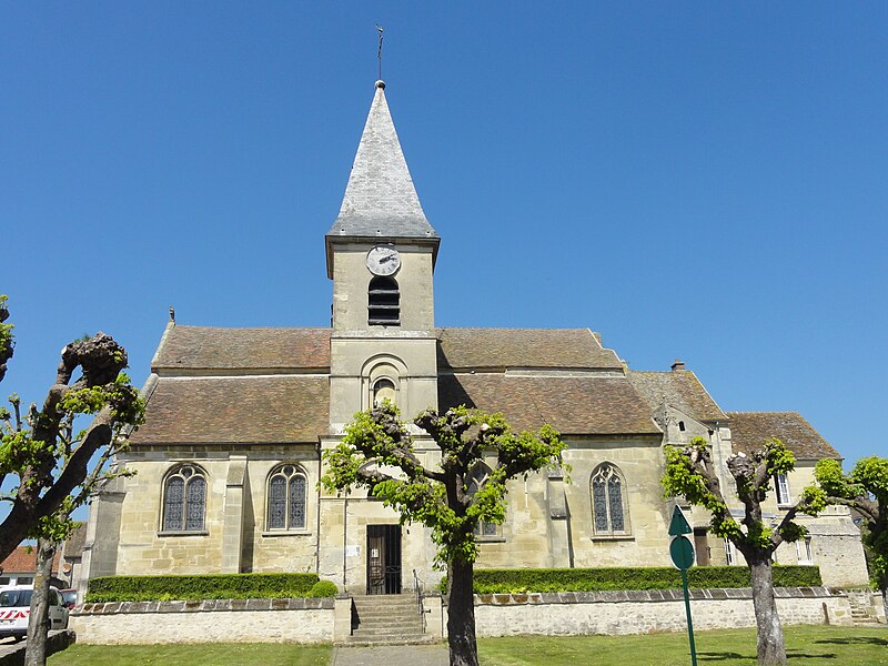 L’église Saint-Martin de Commeny, située au centre du village dans le Parc naturel régional du Vexin français (Val-d’Oise), est une église paroissiale catholique prenant place en retrait de la rue, entourée d’une pelouse et bordée d’arbres au sud et à l’est, avec l’ancienne école communale, bâtie vers 1818, accolée au chevet. La paroisse, dédiée à saint Martin de Tours, est fondée en 1161, et la construction de l’église commence quelques décennies après cette date ; l’édifice primitif, de style gothique primitif, est achevé au début du XIIIe siècle et comprend alors une nef de quatre travées flanquée de bas-côtés, un transept à clocher central et un petit chœur au chevet plat. De l’église romane et gothique primitive subsistent notamment des éléments du clocher primitif — arcs en plein cintre bouchés, une corniche de modillons et un faisceau de colonnettes tronqué — ainsi que le chœur, datable de la fin du XIIe siècle, dont la voûte médiévale est la plus ancienne conservée. L’état de l’église se dégrade pendant la guerre de Cent Ans, d’où la reconstruction, au début du XVIe siècle, des dernières travées des bas-côtés et des croisillons du transept dans un style gothique flamboyant. À la suite de travaux postérieurs, la nef et les bas-côtés sont voûtés et en grande partie refaits en 1568 dans une interprétation locale de la Renaissance, qui conserve toutefois les grandes arcades nord, la croisée du transept, le clocher primitif et le chœur de la première église. Des renforcements des piles du clocher s’avèrent ensuite nécessaires ; le clocher ancien est démoli en 1832 et remplacé l’année suivante par un clocher-porche élevé d’après les plans de l’architecte Rousseau de Pontoise, financé par la commune. Les restaurations du XIXe siècle, comportant de nombreux tirants et renforts en fer, ainsi que des reprises importantes, ont réduit l’unité stylistique de l’ensemble tout en privilégiant la conservation d’une partie de la maçonnerie ancienne. L’église est inscrite au titre des monuments historiques par arrêté du 16 juin 1926. Aujourd’hui, Commeny dépend de la paroisse d’Avernes et Marines et les messes dominicales sont célébrées de manière irrégulière, environ deux fois par an.