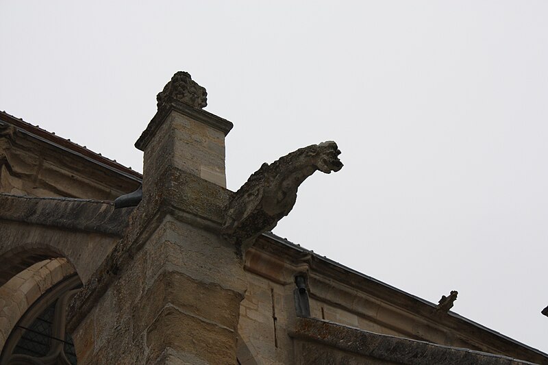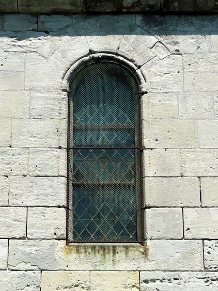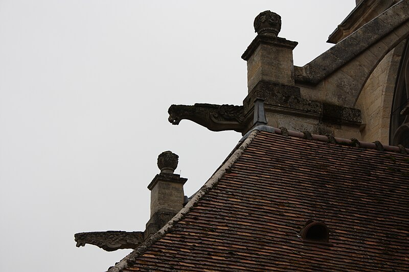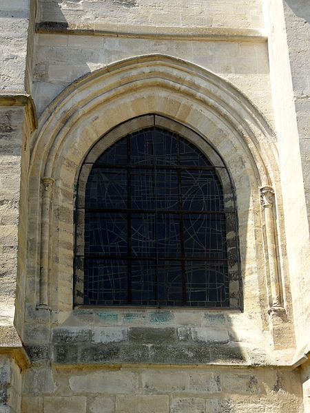 L'extérieur montre la sobriété romane de la façade ouest avec contreforts plats, modillons et billettes, des baies en plein cintre des bas-côtés et un portail décoré d'un rang de billettes et d'un rang de damiers, surmonté d'un tympan nu ; les vantaux en bois datent du XVe siècle. Le chevet, daté autour de 1250, offre une élévation gothique en trois niveaux dont le remplage de la grande baie combine une traçerie du XIIIe siècle et des meneaux refaits en 1613, tandis que les arcs-boutants du XVIe siècle portent des culées ornées et des gargouilles.