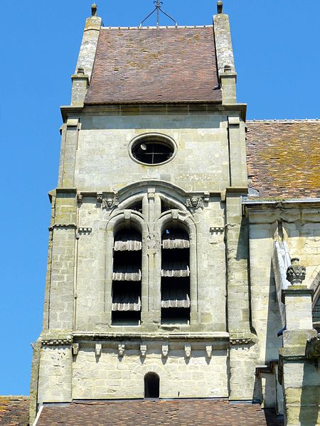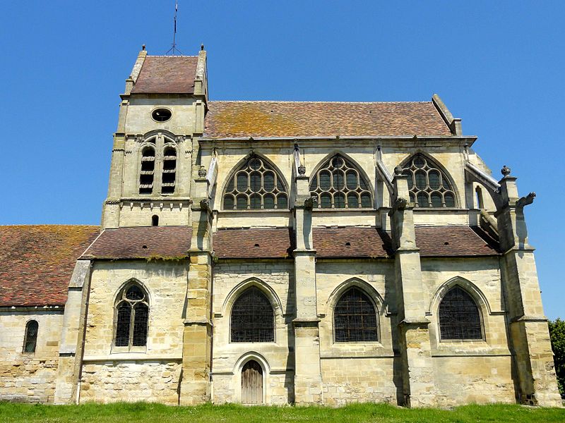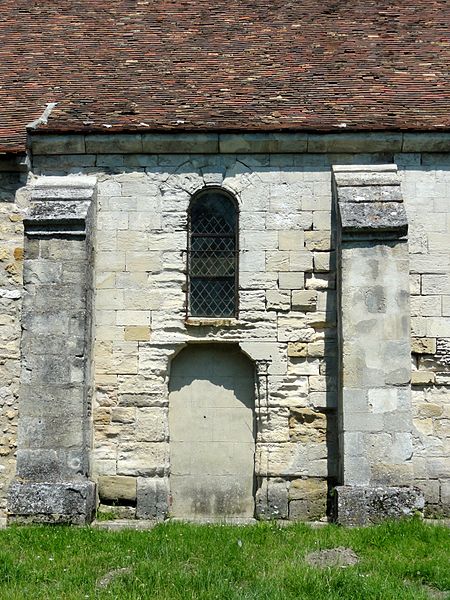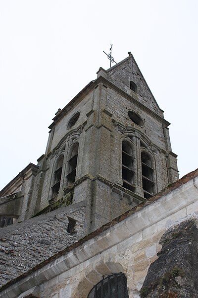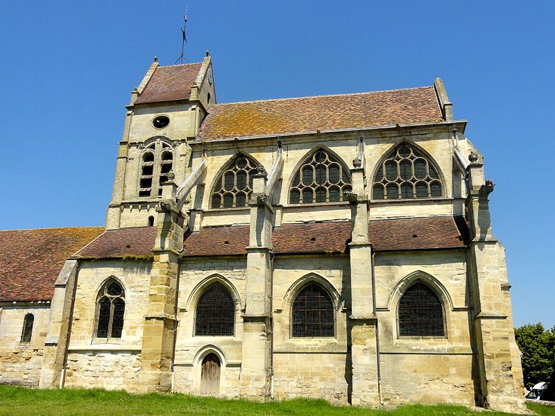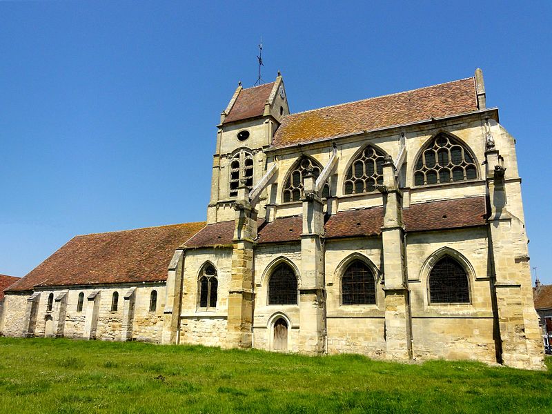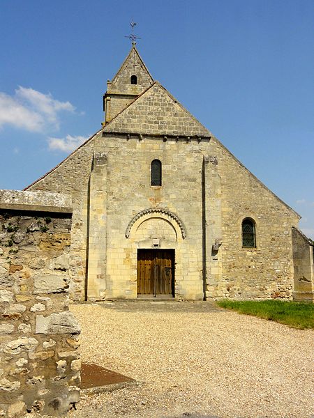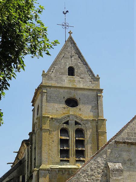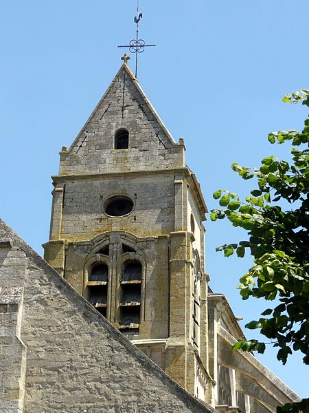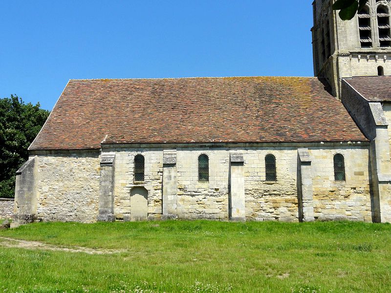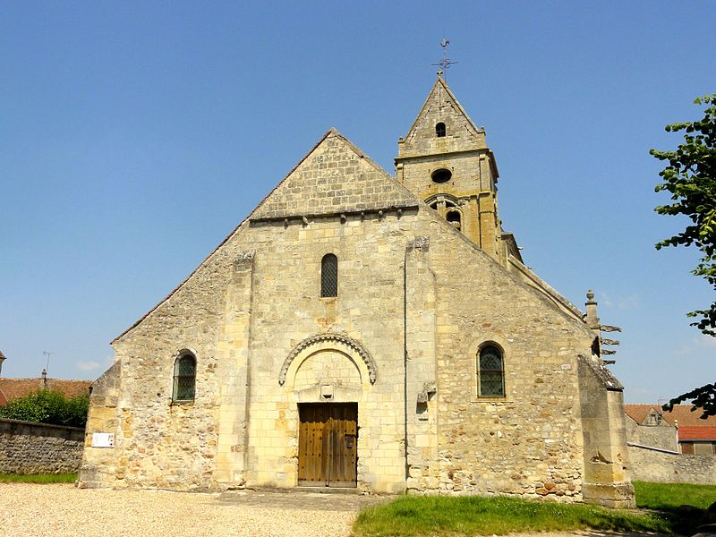 L'église occupe un emplacement rectangulaire légèrement orienté vers le sud-ouest ; la façade occidentale donne sur la rue Guynemer et le chevet sur la rue du Général Leclerc (RD 190). On peut faire le tour du bâtiment : un petit portail latéral au nord sert d'accès habituel, un petit parvis précède la façade ouest et une grande pelouse au sud correspond à l'ancien cimetière déplacé en 1865. La première mention du village date d'un diplôme de 843, mais la première preuve documentaire de l'église provient d'un accord de 1071 entre l'abbé de Saint-Denis et l'archevêque de Rouen ; dès lors, l'abbé de Saint-Denis présentait à la cure sous l'Ancien Régime.