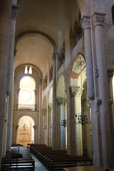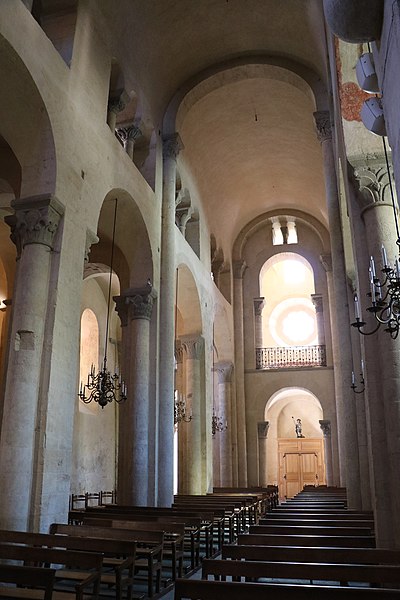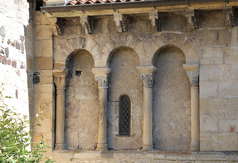 L'église Saint-Martin, à Cournon-d'Auvergne (Puy-de-Dôme, France), date du XIe siècle et présente un style auvergnat pur. Son plan primitif comprenait une abside semi-circulaire entourée d'un déambulatoire sans chapelles, une nef à bas-côtés dont la longueur pouvait correspondre à cinq travées (y compris celle du narthex), un transept sans bas-côtés et un clocher central élevé sur la croisée. Le narthex devait être surmonté d'une tribune et de deux clochers à l'extrémité occidentale. Les bas-côtés étaient surmontés d'un triforium en demi-berceau ; extérieurement, cette galerie répondait à une rangée d'arcatures au-dessus d'arcs longitudinaux reliant les contreforts. L'intérieur comporte cent dix chapiteaux sculptés de décors végétaux ou historiés. Au XVIIIe siècle, le massif barlong, le clocher, le déambulatoire et les chapelles rayonnantes se sont écroulés, et ces éléments ont été reconstruits au XIXe siècle. Parmi les modifications figure la reconstruction de la façade occidentale de la nef sur une travée et demie ainsi que la réédification du clocher central au-dessus de la coupole au XIXe siècle. L'édifice a été classé au titre des monuments historiques en 1912.