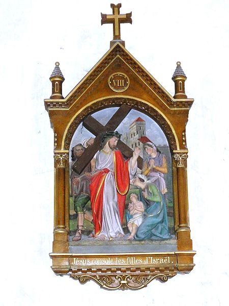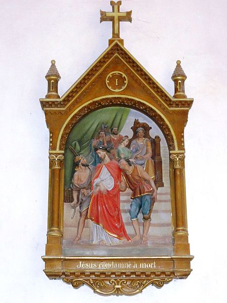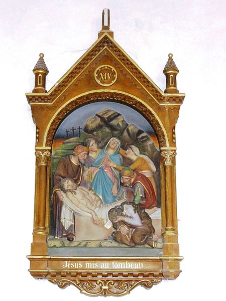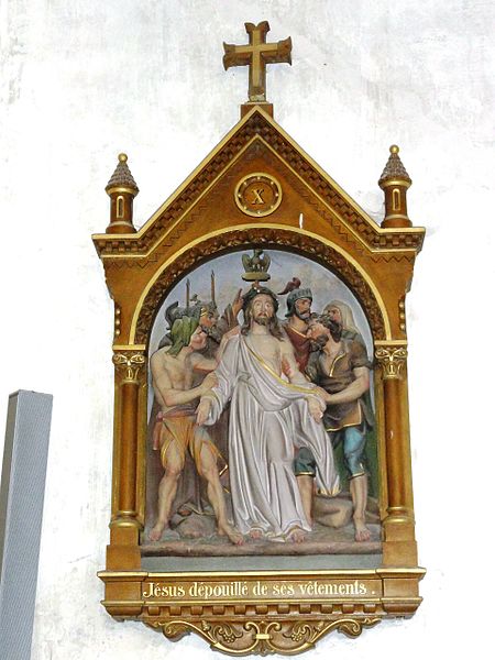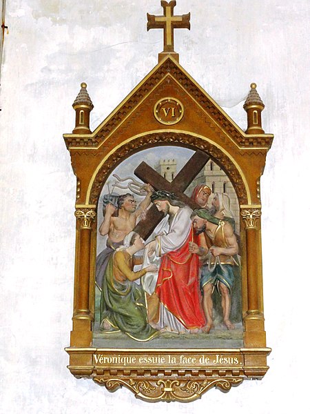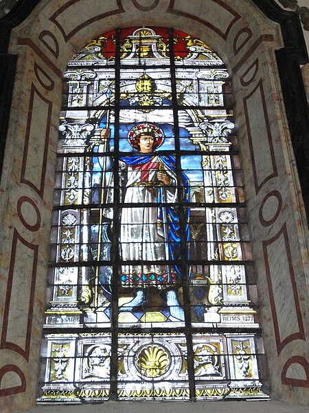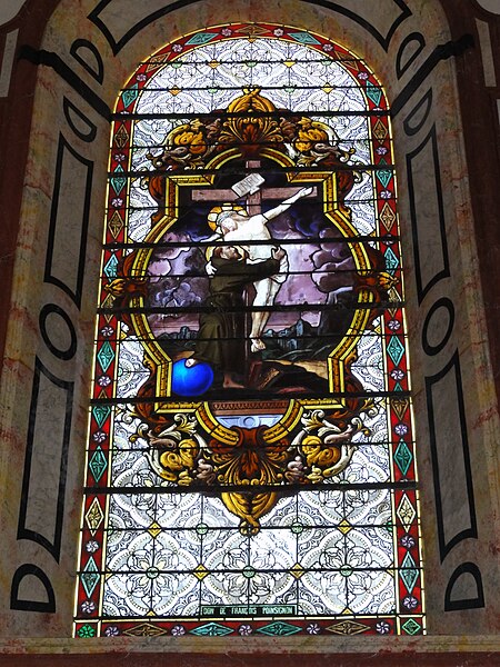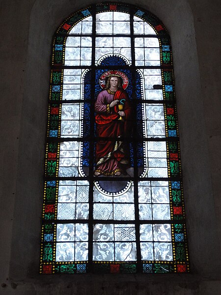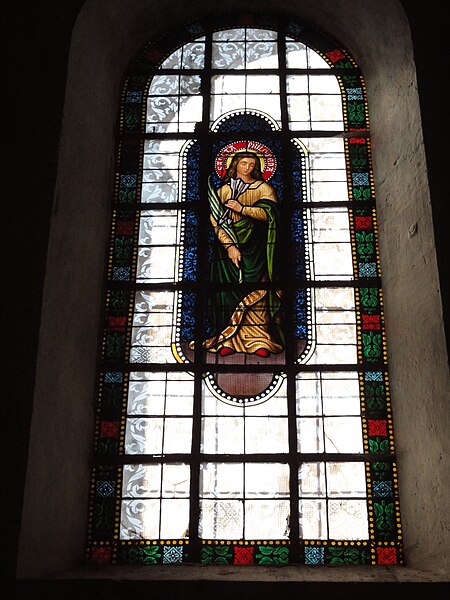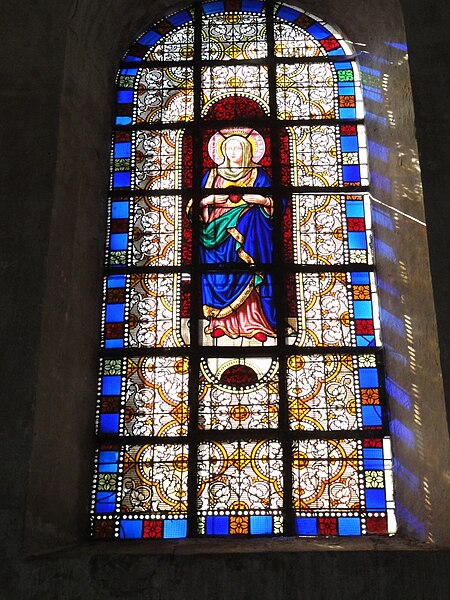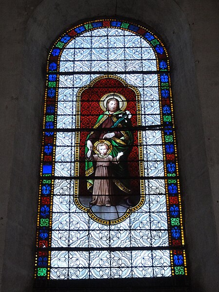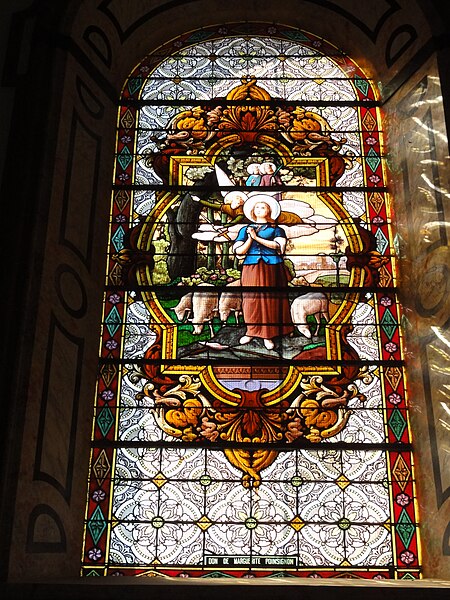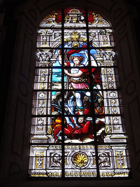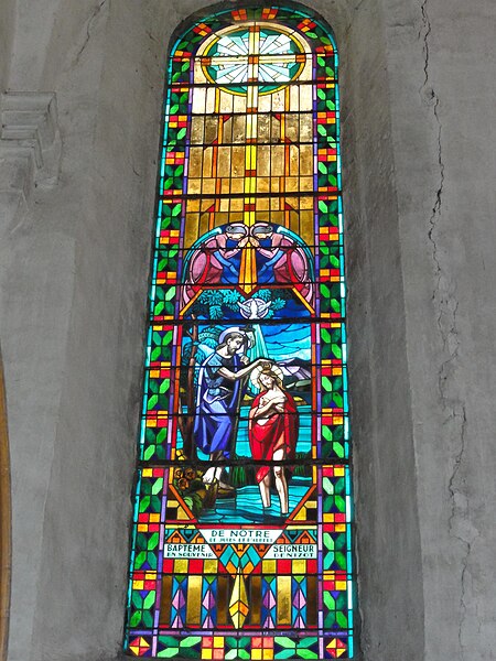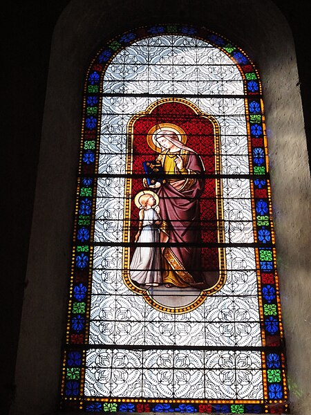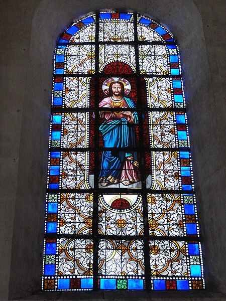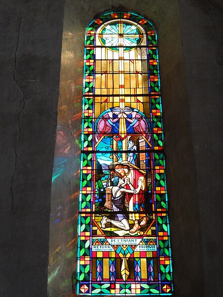Les vitraux comprennent une série signée Clément Haussaire, datée de 1877, qui représente notamment l'archange Michel, saint Louis, Bernadette Soubirous, l'éducation de la Vierge, sainte Philomène, la Vierge Marie, le retour de l'enfant prodigue, le baptême du Christ, le Sacré‑Cœur, saint Jean l'évangéliste, saint Joseph avec l'Enfant Jésus et la descente de la Croix ; deux petits vitraux du portail figurent les symboles du Christ et de l'absolution.