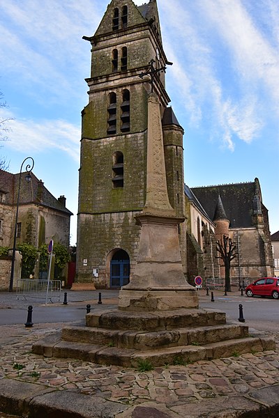 Devant l’entrée se dresse un calvaire daté des XVe–XVIe siècles, constitué d’un socle en pierre surmonté d’une croix. La fontaine Morin, du XVIe siècle, se situe également devant l’église et est inscrite aux monuments historiques depuis 1991.