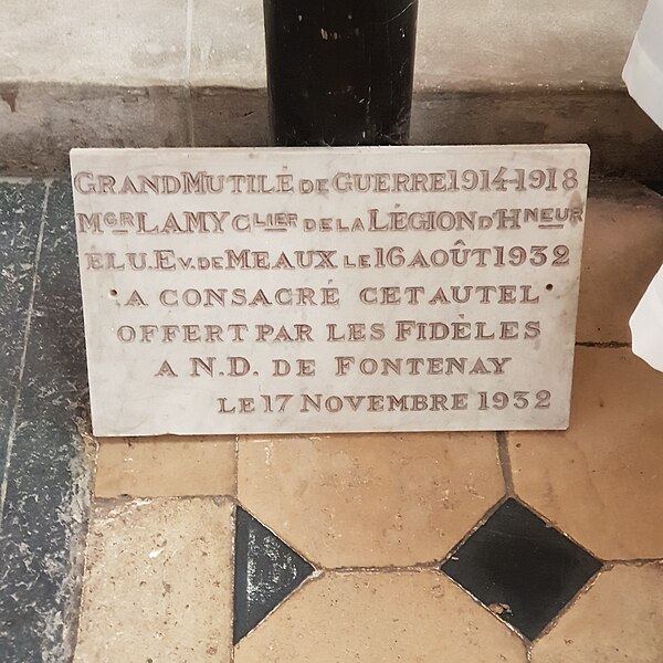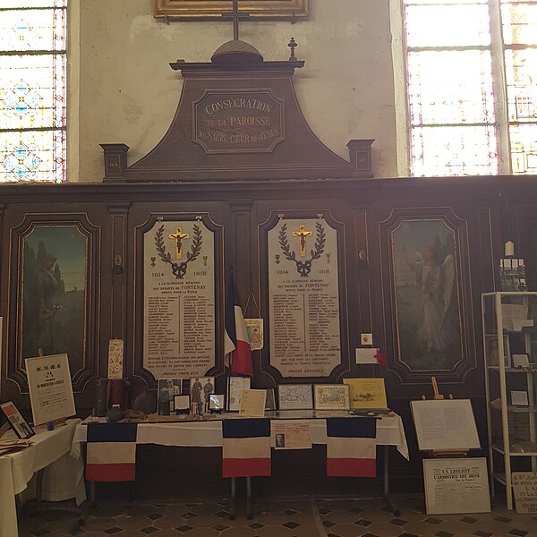 La chapelle Saint-Joseph abrite un triptyque récapitulant les soldats morts pour la France pendant la Première Guerre mondiale ; ses vitraux figurent l’arche de Noé et la tour de Babel. On y trouve aussi le tableau Baptême du Christ (1844) d’Isidore Péan du Pavillon, ainsi que deux tableaux anonymes représentant la Résurrection (XVIe siècle) et sainte Marie-Madeleine (XVIIe siècle). Une porte dissimulée dans les boiseries ouvre sur la crypte où se trouvait le tombeau des seigneurs de Fontenay, la famille Le Tonnelier de Breteuil ; ce tombeau fut saccagé à la Révolution, le plomb fondu pour munitions, le mausolée détruit et les ossements inhumés au cimetière. L’accès à la salle capitulaire se fait depuis cette chapelle.