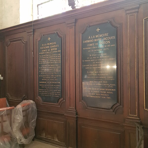 Parmi les mobiliers classés figurent les fonts baptismaux en pierre datés de 1521, ornés d’inscriptions latines sur leurs quatre faces et placés à l’entrée à droite ; l’Adoration des bergers attribuée à Nicolas Baullery (première moitié du XVIIe siècle) ; une Madeleine repentante d’après Charles Le Brun (XVIIe siècle) ; une Crucifixion (XVIIe siècle) ; les lambris du chœur de 1689, composés de panneaux moulurés et de colonnes cannelées surmontées de chapiteaux ioniques, ornés d’une inscription côté nord et de deux palmes ; les lambris de la nef et du transept sud, la tribune, le tambour de la porte occidentale et le banc d’œuvre datés des XVIIe et XIXe siècles ; ainsi que le tableau du Baptême du Christ d’Isidore Péan du Pavillon (1844), exposé au Salon de 1844 et offert à l’église en 1849. La cloche Martine, attribuée aux fondeurs Godiveau, figure également parmi les éléments signalés.