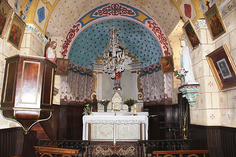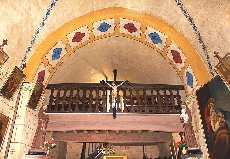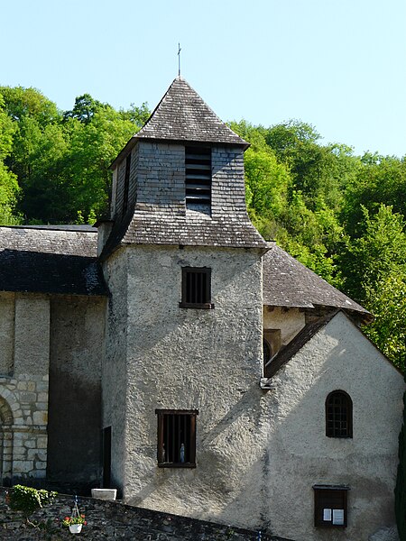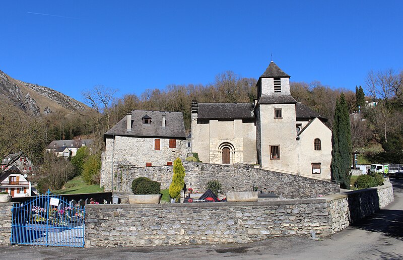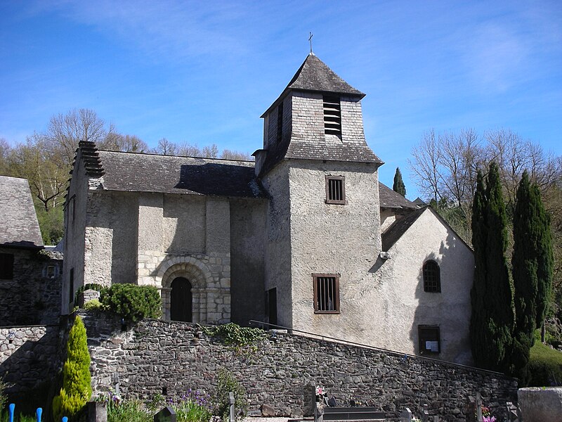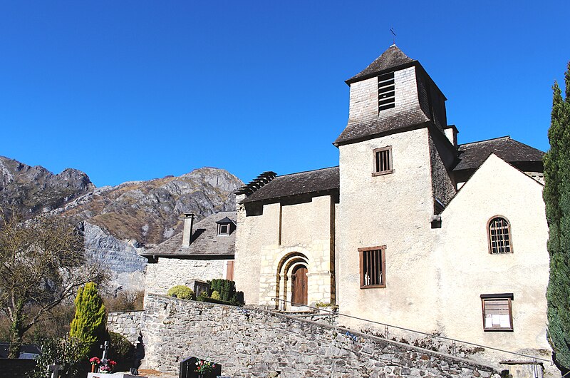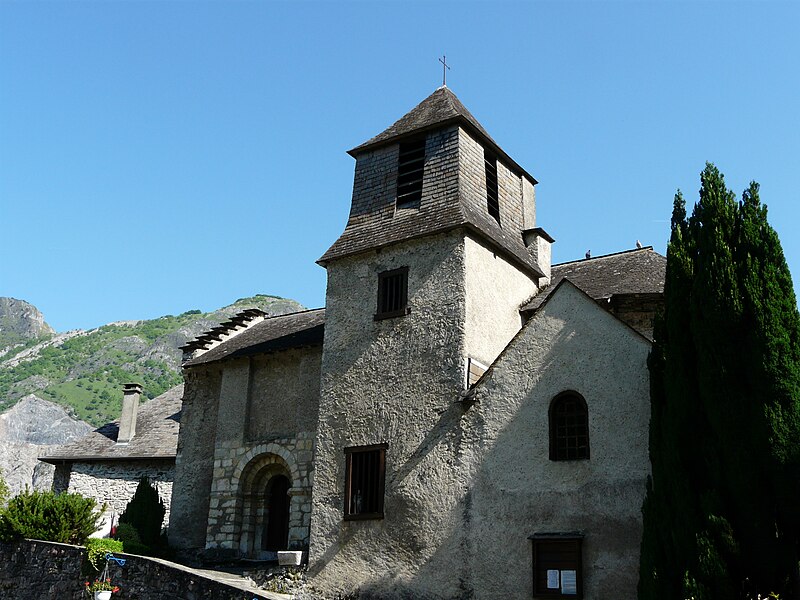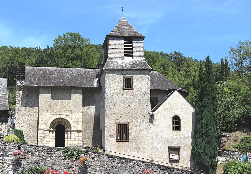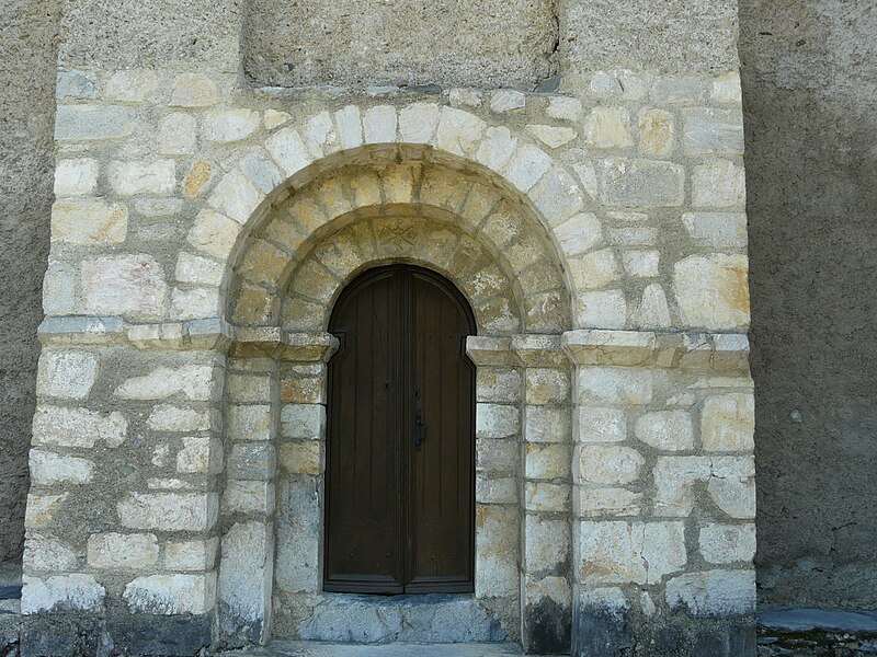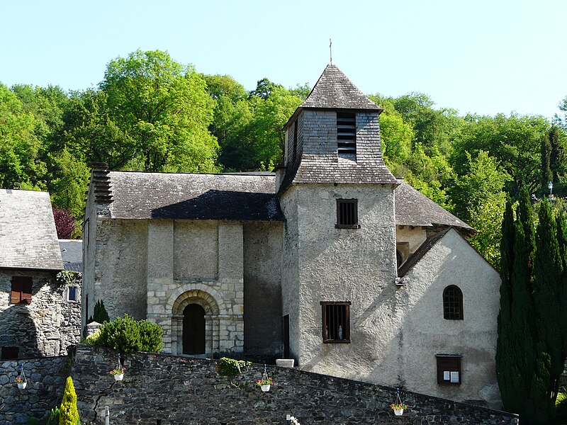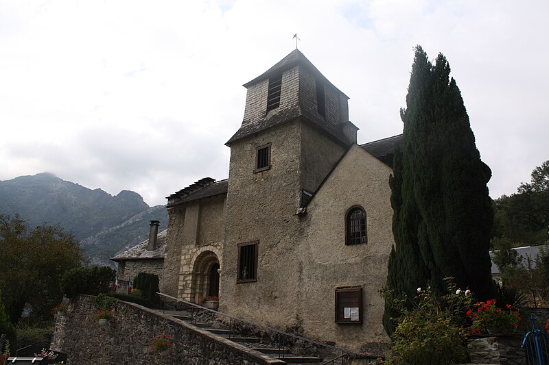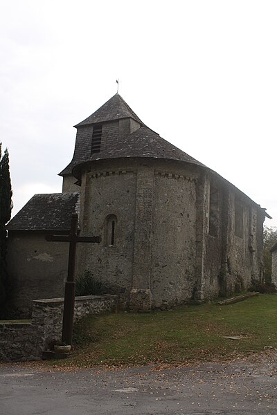 L'église se compose d'une nef unique voûtée en berceau brisé sur doubleaux à profil rectangulaire, terminée à l'est par un chevet voûté en cul-de-four et à l'ouest par un mur plat auquel est adjointe une tribune en bois. À l'extérieur, des contreforts rectangulaires scandent les murs dont le percement originel a été transformé ; sur la façade sud s'ouvre un portail en plein cintre à triple rouleau de section carrée et le bâtiment est accolé à un clocher rectangulaire et à une sacristie. L'intérieur est peint ; le chœur est décoré de draperies en trompe-l'œil peintes sur son pourtour et comporte un retable peint et doré dans l'esprit du XVIIIe siècle. Hormis la sacristie et le clocher, l'ensemble présente des formes de l'architecture romane. Il est supposé que, dans l'édifice primitif, la couverture de la nef surplombait celle du chœur et que les parties hautes du chœur ont pu être refaites lors d'une surélévation avec réemploi d'éléments antérieurs. Les origines de l'église sont médiévales.