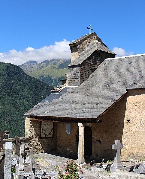 L'église Saint-Martin de Grailhen se situe à l'ouest du village, sur un belvédère dominant la vallée d'Ancizan à Saint-Lary-Soulan, dans les Hautes-Pyrénées. D'origine romane, elle a connu des remaniements importants aux XVIe et XVIIe siècles. La partie la plus ancienne semble être le mur ouest, percé d'une baie étroite de facture romane, et l'édifice conserve plusieurs éléments remployés d'époque romane, dont un tympan étudié et six modillons. Le gros-œuvre, murs et couvrement, a été rebâti dans la seconde moitié du XVIe siècle, comme l'attestent des clés de voûte portant les dates 1566, 1589 et 1591, et une restauration de style gothique y a été effectuée à la fin du XVIe siècle. La sacristie et le bas-côté nord ont été ajoutés au XVIIe siècle ; la date 1696 est gravée sur l'oculus extérieur ouest du bas-côté, ce qui permet de situer approximativement ces aménagements. Jusqu'en 1793, l'église fut la matrice de la cure de Camparan, puis elle devint annexe de la cure de Guchan. Inscrite au titre des monuments historiques le 2 mars 1979, elle est représentative du bâti religieux de la vallée de l'Aure. L'édifice, à double vaisseau, s'ouvre au sud par un portail décoré d'un tympan-chrisme roman ; le vantail médiéval conserve sept pentures et une serrure remarquables. Le clocher-pignon présente deux baies en plein cintre et la corniche du clocher-mur réemploie des modillons romans. La nef et l'abside polygonale sont couvertes de voûtes d'ogives, tandis que le bas-côté nord est voûté d'un berceau en anse de panier. Un programme peint daté de 1607 orne les voûtes d'ogives et, par son unité stylistique, semble l'œuvre d'un même atelier. L'intérieur comporte également un retable du XVIIIe siècle et une porte ornée d'un chrisme et de ferrures anciennes.