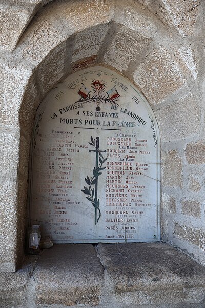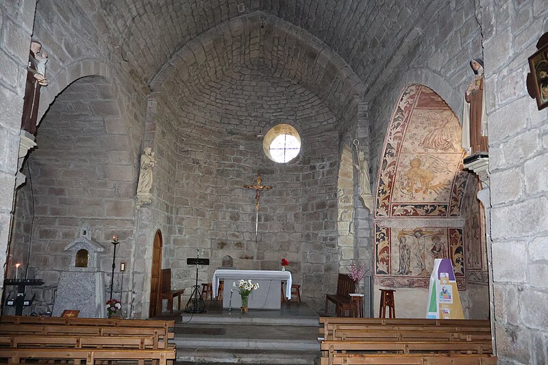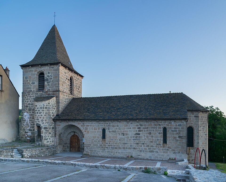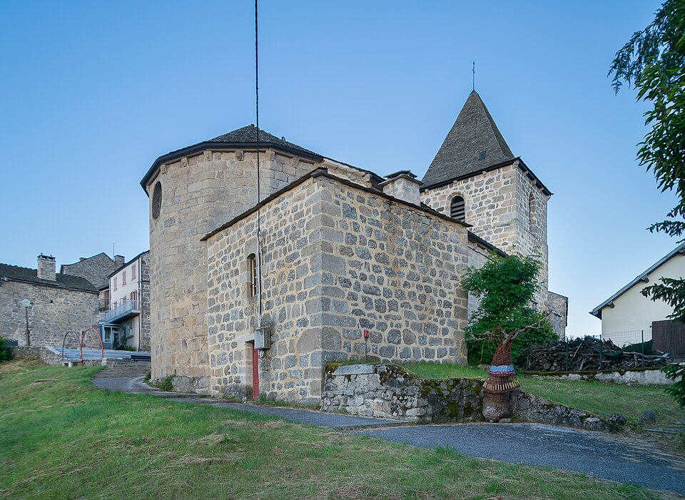 L'église Saint-Martin de Grandrieu, située dans la commune de Grandrieu (Lozère), présente deux hypothèses d'origine : elle pourrait être l'œuvre des seigneurs de Montauroux, dont dépendait Grandrieu, ou résulter d'une fondation par des moines venus de Bretagne, supposée en raison de la présence de saints normands ou bretons. L'ensemble de la construction remonte aux XIIe et XIIIe siècles ; en 1305, l'église est unie à la mense épiscopale de Mende. Entièrement construite en granit et orientée selon le rite, elle adopte un plan en croix avec une nef flanquée de chapelles latérales ajoutées au XIVe siècle, deux chapelles de chœur formant les bras de la croix et une abside pentagonale en chevet. L'intérieur conserve des culs-de-lampe sculptés représentant têtes humaines, animaux, feuillages et motifs géométriques. Vers 1923, des travaux dans la chapelle latérale sud ont mis au jour des peintures murales en fresque figurant des personnages, des rinceaux et des lettres gothiques. La construction des chapelles latérales au XIVe siècle pourrait être attribuée à des artisans anglais, hypothèse appuyée par la représentation de saints populaires en Angleterre, tels que Barthélemy ou Onufre. L'édifice est dominé par un clocher carré. L'ensemble est classé au titre des monuments historiques en 1930.