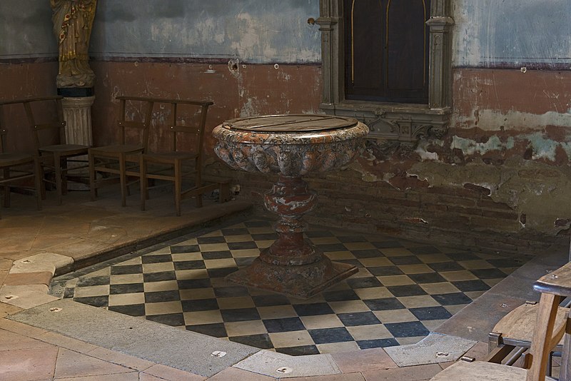 Parmi le mobilier et les éléments remarquables figurent une table-console et un dais de procession classés dans la base Palissy, ainsi que des reliquaires (saint Éloi, saint Martin), une rosace et les fonts baptismaux.