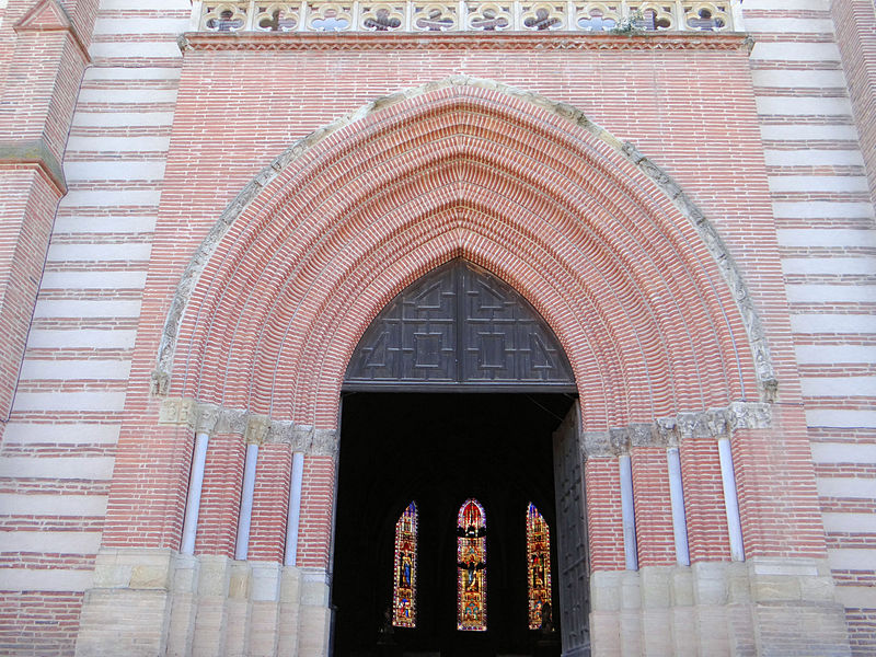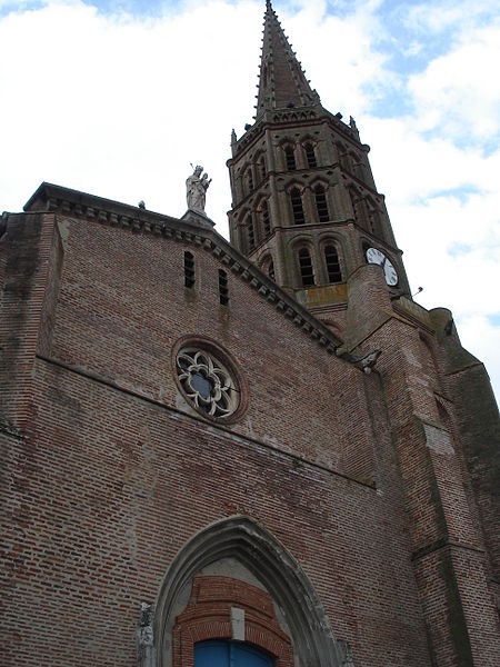 Avant la Révolution, l’église dépendait de la basilique Saint-Sernin de Toulouse. Le portail du XIIIe siècle a été déposé puis remonté dans le mur en briques de la nouvelle église ; il se compose d’une série d’arcs en briques et d’un encadrement en pierre orné d’une bande zodiacale entrelacée de signes divers. Six colonnettes et leurs chapiteaux sculptés ont été réemployés dans ce remploi ; les chapiteaux des colonnes, colonnettes et pilastres forment une frise sculptée continue aux sujets bibliques et aux allégories. Le portail est inscrit au titre des monuments historiques depuis 1950 et plusieurs objets de l’église sont référencés dans la base Palissy.