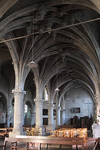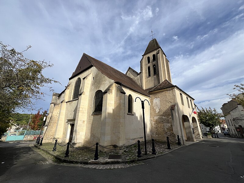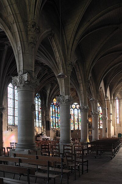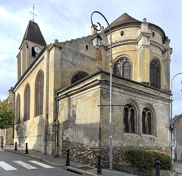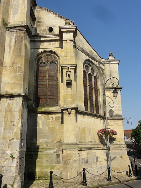 Les parties les plus anciennes de l'édifice remontent au XIIe siècle ; la nef et le bas-côté sud sont essentiellement gothiques du XIIIe siècle. La plupart des autres constructions datent du XVIe siècle, notamment le prolongement de la nef avec chœur à abside en hémicycle, le collatéral nord et l'extension du collatéral sud. Les premières additions affichent le style gothique flamboyant, tandis que les finitions tardives présentent des caractères de la Renaissance ; l'abside est la seule partie entièrement conçue dans ce dernier style. Les remaniements successifs ont altéré l'ordonnance extérieure : seules la façade nord et, en partie, la façade du chevet conservent un caractère homogène. À l'intérieur, l'assemblage des différentes campagnes garde une relative harmonie et une exécution soignée ; la véritable richesse de l'église tient à ses six verrières Renaissance, parfois reconstituées à partir de fragments. L'édifice est classé monument historique depuis 1929.