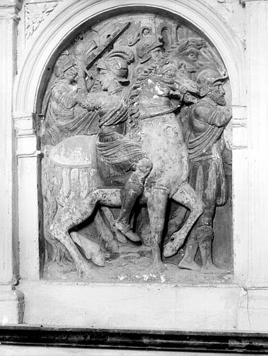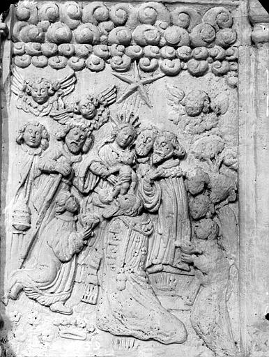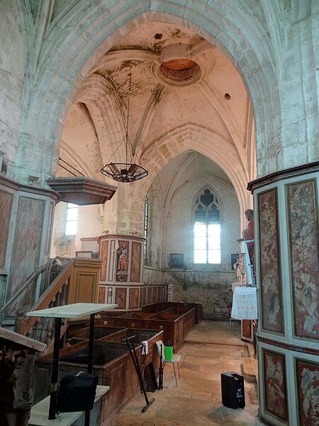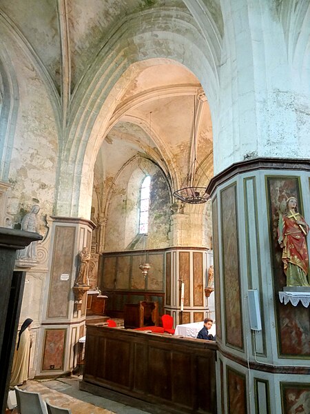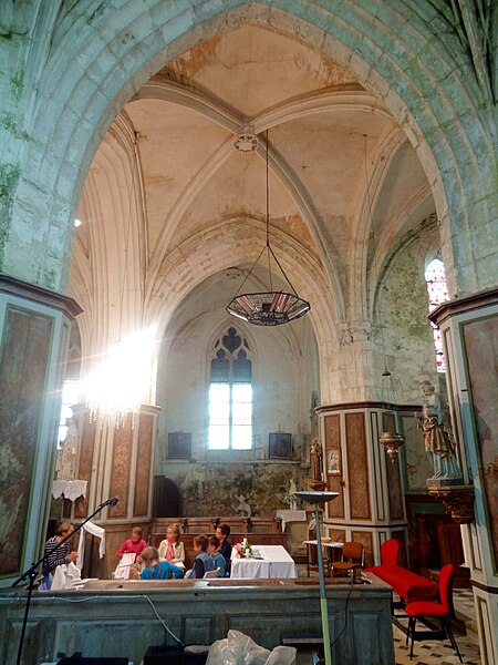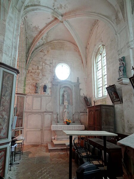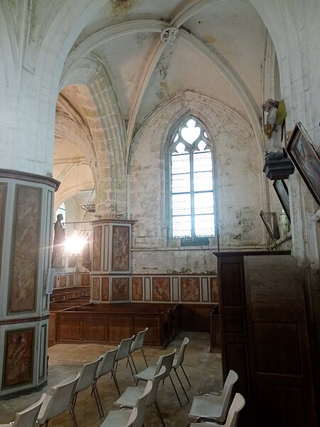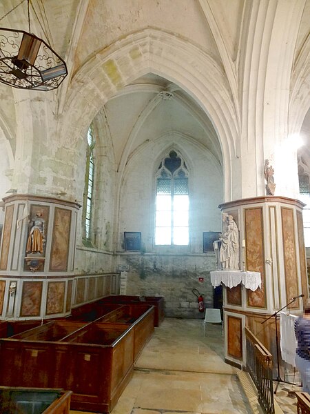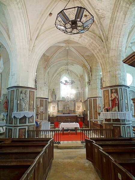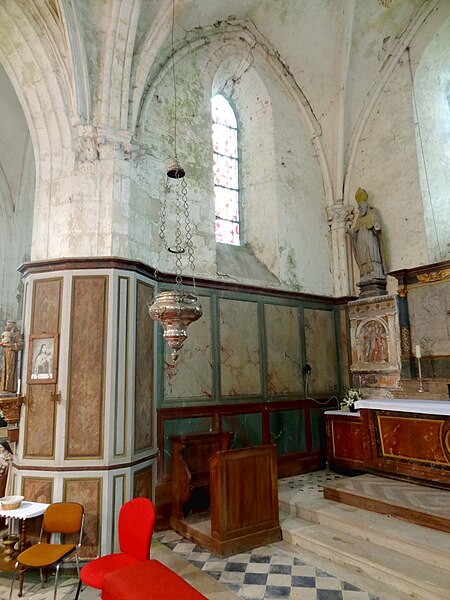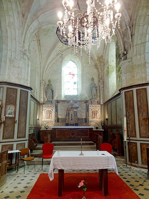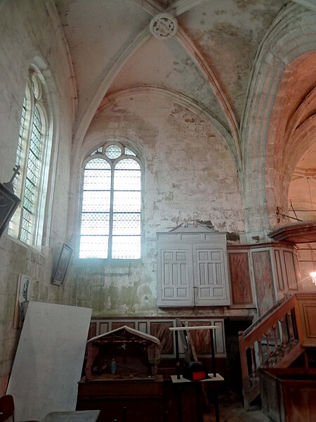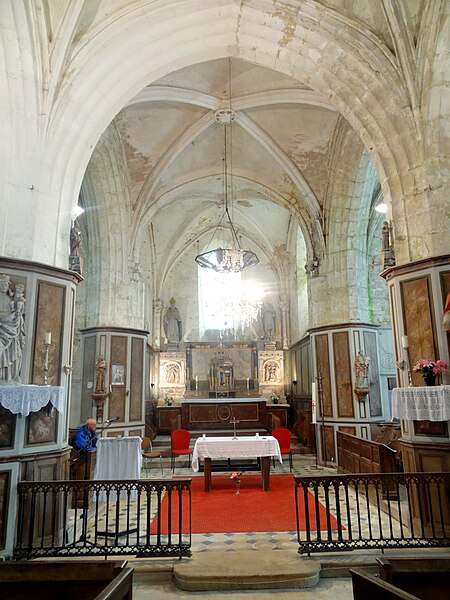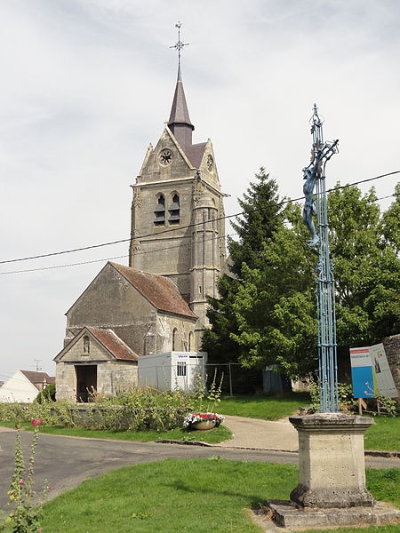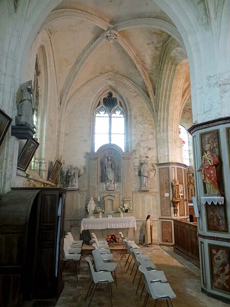 L'église Saint-Martin de Hadancourt-le-Haut-Clocher (Oise) est une paroissiale catholique dont l'essentiel résulte d'une reconstruction d'inspiration flamboyante entreprise après la guerre de Cent Ans, mais dont les maçonneries de la nef remontent au deuxième quart du XIIe siècle et témoignent d'origines romanes. La deuxième travée du chœur, d'aspect gothique, appartient au début du XIIIe siècle, tandis que la partie orientale et la croisée du transept, base du clocher, relèvent du gothique flamboyant du XVIe siècle; le croisillon sud et sa chapelle traduisent une transition vers la Renaissance. L'édifice présente un plan marqué par un net déséquilibre : une nef courte de seulement deux travées sans bas-côtés contraste avec des parties orientales plus développées comprenant transept, chœur et chapelles latérales. Orientée légèrement vers le nord-est au chevet, l'église est voûtée d'ogives sur un unique niveau d'élévation et le portail occidental constitue l'accès principal. Le clocher, remarquable par son étage de beffroi soigné et ses quatre pignons — configuration rare au nord de Paris — est couvert de deux toits en bâtière imbriqués et couronné d'un clocheton octogonal en charpente ; sa hauteur avoisine 33 mètres. Extérieurement, la nef est en moellons tandis que les croisillons et les chapelles sont appareillés en pierre de taille ; la tourelle d'escalier angle sud-est présente des niveaux octogonaux puis circulaires et un dôme en forme de cloche de facture flamboyante. À l'intérieur, la croisée du transept et la première travée du chœur forment un ensemble homogène où l'arc brisé domine; la dernière travée du chœur conserve des proportions et une voûte caractéristiques du début du XIIIe siècle, avec lancettes fortement ébrasées et chapiteaux sculptés à décor de feuilles. Les travées flamboyantes affichent des profils d'arcades et d'ogives sobres, les ogives présentant le type courant dans le Vexin : filet entre deux moulures concaves et larges gorges séparées des voûtains par des filets saillants; la clé de voûte de la première travée du chœur porte une étoile à huit branches. Le croisillon nord et sa chapelle conservent des clés de voûte ajourées et des fenêtres à réseau flamboyant, tandis que le collatéral sud témoigne d'un retour vers l'arc en plein cintre et d'un remplage à influence Renaissance. Parmi le mobilier, plusieurs éléments sont protégés au titre des monuments historiques : les fonts baptismaux en pierre calcaire, peut‑être de la seconde moitié du XIIe siècle et classés depuis 1912, ainsi que des bancs, des bas-reliefs, des statues et le tabernacle inscrits en 1989. Six bas-reliefs de la Renaissance sont encastrés dans les murs de la nef et deux autres dans le mur du chevet, figurant des scènes bibliques ou hagiographiques; d'autres sculptures en pierre ou en bois proviennent notamment de l'ancienne église de Lèvemont, rasée et partiellement transportée, et comprennent un christ en croix polychrome, une Vierge à l'Enfant et un groupe de saints martyrs. Une statue de saint Michel et une statue de saint Éloi (inscrite en 2011) font également partie des pièces signalées, tandis que la Vierge de la chapelle nord, inscrite puis classée, illustre le passage du style médiéval à la Renaissance. Le tabernacle, adossé à l'ancien maître-autel, est une composition en bois traitée en faux-marbre avec colonnettes corinthiennes réduites, entablement et niches; seul le tabernacle est mentionné comme inscrit parmi ces éléments en 1989. L'édifice a été classé monument historique par arrêté du 23 septembre 1922 et une campagne de restauration des élévations extérieures a été lancée en 2012. La commune dépend aujourd'hui de la paroisse Saint‑François‑d'Assise du Vexin (siège à Chaumont‑en‑Vexin) et n'accueille plus de messes dominicales depuis 2018. Les abords offrent une mise en valeur côté ouest depuis la place devant la façade, tandis que le chevet reste partiellement enclavé et l'ancien cimetière au sud limite la visibilité de l'élévation méridionale.