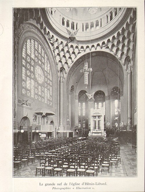 L'église Saint-Martin est une église catholique située place Carnot à Hénin-Beaumont, dans le Pas-de-Calais. Elle occupe l'emplacement de l'ancienne église dont les origines remontent au XIIe siècle et qui avait été remaniée et agrandie à plusieurs reprises, avec une tour-clocher attribuée au XVe siècle et un chœur du XVIIIe siècle. Cette ancienne église, classée monument historique en 1827, a été dynamitée par les troupes allemandes lors de leur retraite pendant la Première Guerre mondiale et entièrement détruite en 1926. La municipalité confia d'abord des projets de reconstruction à André Dufau ; plusieurs esquisses néogothiques proposées entre 1922 et 1926 furent rejetées. Sur suggestion de la commission des dommages de guerre, l'architecte parisien Maurice Boutterin fut ensuite chargé de concevoir la nouvelle église. Le programme municipal imposait que l'édifice soit reconstruit sur la même emprise, « en pierre » sans brique apparente, sans clocher et capable d'accueillir le plus grand nombre de fidèles, ce qui orienta le choix d'un plan à vaisseau unique. Après des plans initiaux présentés en 1927 et remaniés, un projet approuvé en 1928 permit d'ouvrir le chantier en octobre 1929 ; les travaux se sont achevés en septembre 1932 et la réception définitive a eu lieu en 1933. Les entrepreneurs étaient la maison Broucke et fils d'Hénin-Liétard ; Maurice Boutterin dessina également le mobilier et les objets liturgiques, des luminaires aux confessionnaux, en passant par la chaire, les autels et les décors de mosaïque. L'édifice, de style romano-byzantin et conçu sur un plan basilical à vaisseau unique, combine une ossature en béton avec des parements en pierre reconstituée et une couverture d'ardoises ; colonnes et meneaux des baies sont en pierre. La partie centrale, cubique et percée de deux grandes baies, est surmontée d'un dôme octogonal et, à chacun de ses angles, flanquée de quatre clochers culminant à 36 mètres. Le dôme a 26 mètres de diamètre, s'élève à 50 mètres de haut, est percé de huit œils-de-bœuf et coiffé d'une croix multibranches. La nef et le chœur, parfaitement symétriques, se prolongent à l'ouest et à l'est et se terminent par des pans multiples, chacun accompagné d'une absidiole à trois pans. L'église comporte trente-six verrières réalisées par l'atelier Jean Gaudin ; les deux grands vitraux de la partie centrale représentent saint Martin partageant son manteau et saint Vaast. L'intérieur est richement décoré : murs et arcs sont ornés de mosaïques rouges et or, le maître-autel en marbre blanc, haut de neuf mètres, est rehaussé d'or, et la coupole porte un décor mosaïqué. On y trouve également un chemin de croix peint par Henri Rapin, un bas-relief de Gustave Crauk dans la chapelle dite de la Pietà et des orgues construites par les frères Coupleux de Lille. L'édifice a été classé au titre des monuments historiques en 2003.