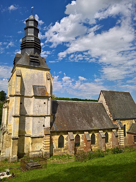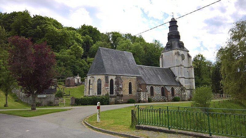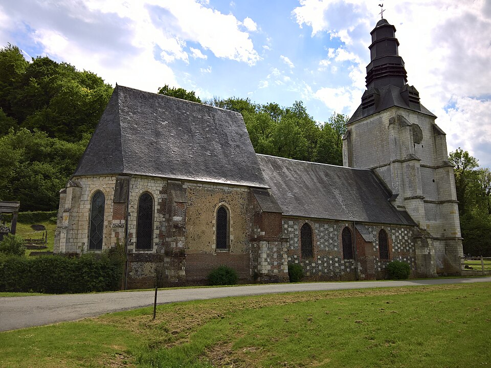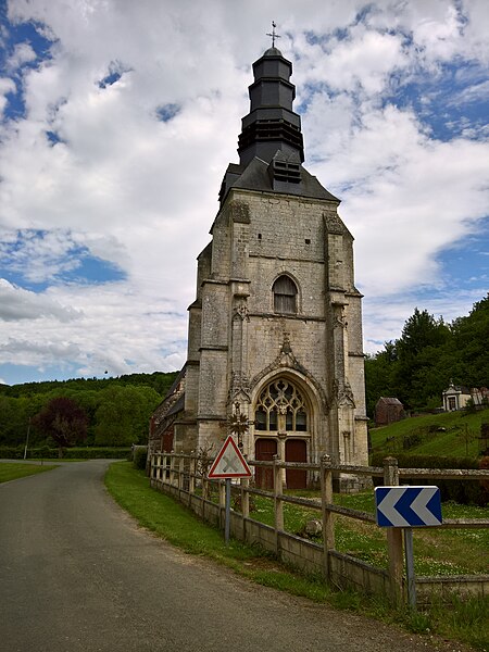 L'église Saint-Vast d'Agnières se trouve dans la commune associée d'Agnières, sur le territoire de Hescamps, dans le sud-ouest du département de la Somme. Le chœur, à abside pentagonale, date de la fin du XIIe ou du début du XIIIe siècle. La nef et le clocher-porche ont été reconstruits ou remaniés aux XVIe et XVIIe siècles. Des travaux de consolidation ont été réalisés aux XVIIe ou XVIIIe siècles, puis l'édifice a fait l'objet d'interventions importantes dans la seconde moitié du XIXe siècle. L'ensemble de l'église est protégé au titre des monuments historiques par arrêté du 15 septembre 1995. La nef est bâtie en pierre avec un appareillage en damier mêlant calcaire, silex et briques; elle est voûtée en bois. Le porche présente un décor de style flamboyant. Le trésor de cette petite église de campagne réside dans ses vitraux médiévaux du XIIIe siècle conservés dans le chœur. Trois lancettes illustrent des scènes de la Genèse, l'enfance du Christ et l'Arbre de Jessé, tandis que la baie axiale représente Adam et Ève, Abel et Caïn, l'Arche de Noé et porte une effigie de saint Vaast. L'église conserve également une statue en bois de sainte Barbe datée du XVIe siècle.