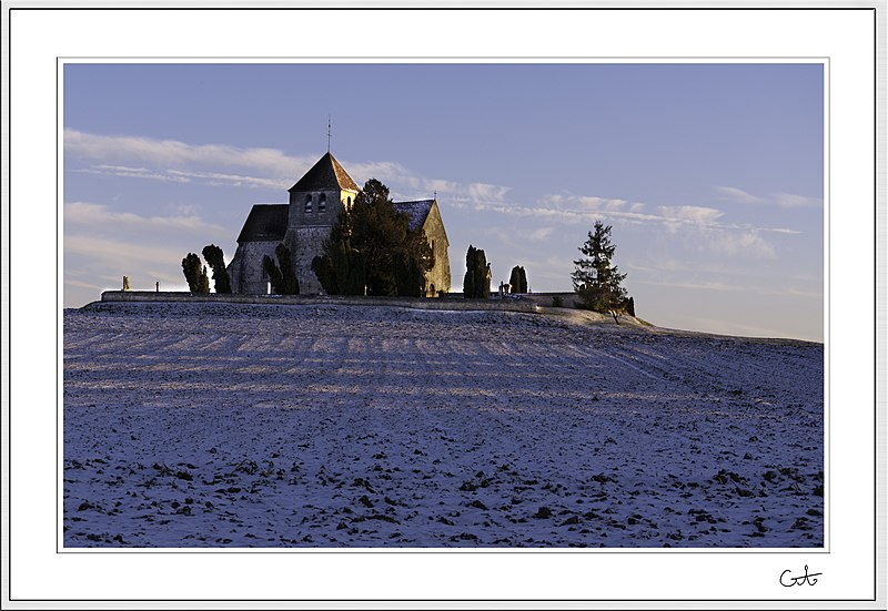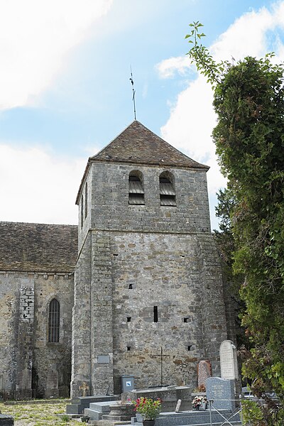 L’église Saint-Martin est un édifice catholique situé à La Genevraye, en Seine‑et‑Marne (France). Élevée sur un mamelon à 69 m, elle se trouve isolée en dehors du village et domine la vallée du Loing. Le Père Philippe (1908‑1977), successeur du Père Jacques au couvent des Carmes d’Avon, la qualifiait de « joyau de l’art médiéval » et soulignait son cadre pictural ; il la décrivait comme « vieille de huit siècles » et évoquait une cloche presque aussi ancienne qui animait la vallée. L’ensemble formé par l’église et son cimetière est classé parmi les Sites pittoresques depuis 1970, et l’église figure parmi les monuments historiques par l’arrêté du 7 mars 1975. La cloche, datée de 1619 et provenant de Montigny‑sur‑Loing, est elle aussi classée. Le plan présente une orientation en croix latine avec transept saillant ; l’église est entourée d’un cimetière. La façade pignon s’ouvre sur une porte cintrée surmontée d’une baie cintrée et coiffée d’une croix. Les murs latéraux sont percés de baies cintrées et épaulés de contreforts. La tour‑clocher, de plan carré, épaulant la façade du vaisseau central, est percée d’ouvertures cintrées pourvues d’abat‑sons et surmontée d’une croix de faîtage et d’une girouette. Des photographies montrent l’église en été, la façade sud‑sud‑est avec le cimetière, la façade ouest‑sud‑ouest avec l’entrée, ainsi qu’un chapiteau portant une inscription à droite de l’entrée. Des ressources complémentaires sont disponibles notamment sur Clochers de France, l’Observatoire du patrimoine religieux et la base Mérimée.