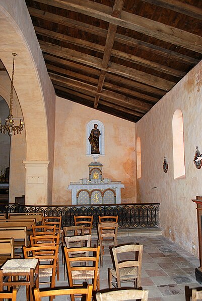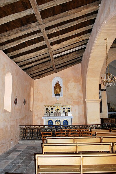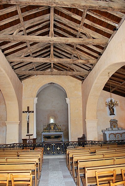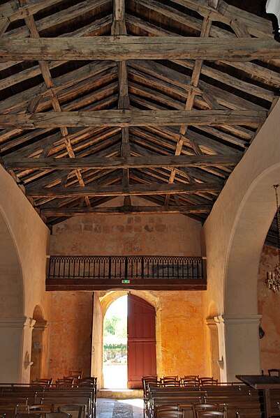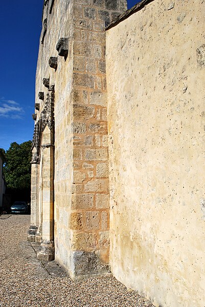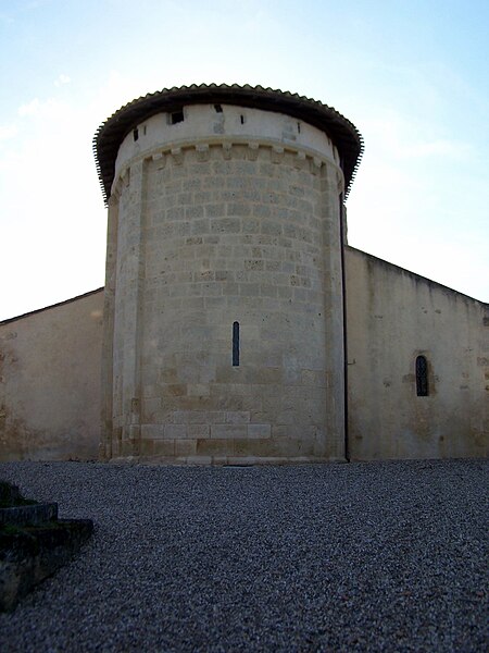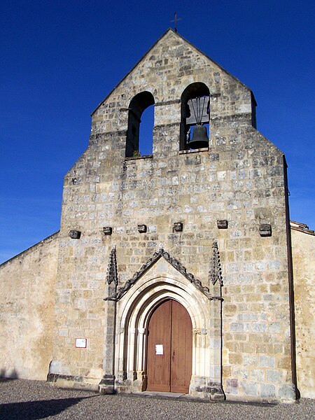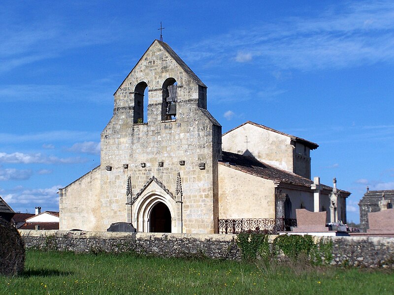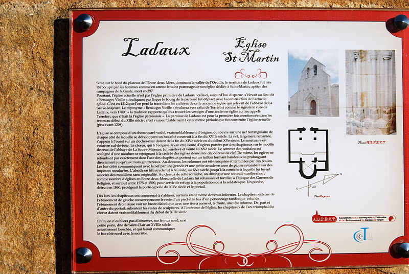 L'église Saint‑Martin, dédiée à saint Martin, se situe dans la partie ouest du bourg de Ladaux (Gironde), le long de la route départementale D119. La paroisse est attestée peu avant 1208 et l'édifice primitif fut probablement élevé à cette période ; l'église présente des origines romanes des XIIIe et XIVe siècles et a fonctionné comme église prieurale. Le chœur, de plan carré, est voûté d'ogives avec liernes et s'ouvre sur une nef rectangulaire. L'abside, pourvue de contreforts plats, a été surélevée et partiellement fortifiée, sans doute au XVIe siècle, pour des raisons de défense. À l'ouest, la nef s'appuie sur un clocher‑mur comportant deux baies en plein cintre, datées du début du XVe siècle, et s'ouvre par une porte ogivale à trois archivoltes reposant sur colonnes ; le portail est encadré de pilastres triangulaires surmontés de clochetons. Des bas‑côtés ont été ajoutés à la fin du XVIIe siècle. Un porche protégeant la porte ogivale du XIVe siècle a été détruit en 1860, ce qui a accéléré la détérioration des chapiteaux, dont certains sont aujourd'hui informes. Sur le contrefort occidental du mur sud se voit un cadran canonial. Pendant les Guerres de religion, surtout entre 1575 et 1590, l'église servait de refuge à la population. De nombreuses restaurations ont eu lieu entre 1834 et 1855. L'ensemble de l'édifice a été inscrit au titre des monuments historiques par arrêté du 21 décembre 1925.