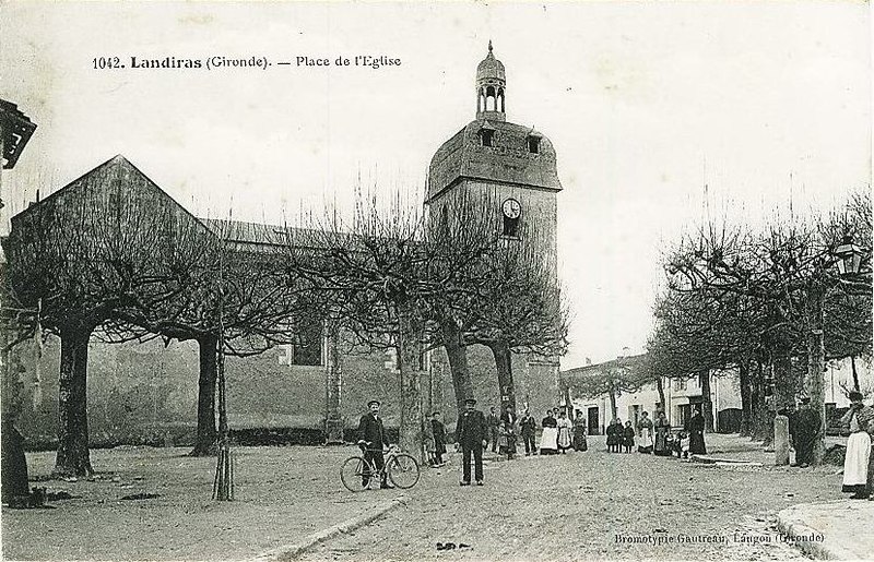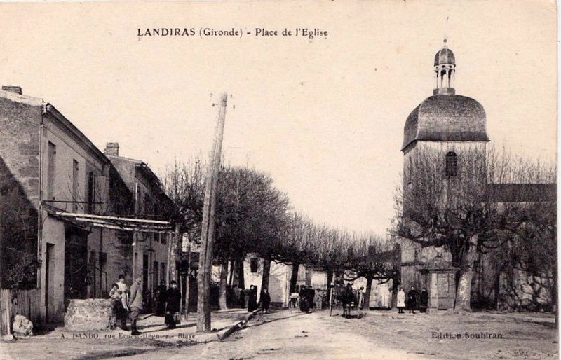 L'église Saint‑Martin, paroisse catholique de Landiras (Gironde), se situe au centre du bourg, près de la mairie ; elle est classée aux Monuments historiques. L'édifice est dédié à Martin de Tours et présente un plan en croix latine composé de trois nefs précédées à l'ouest d'un clocher‑porche ajouté au XVIIIe siècle. La nef aboutit à une abside et un transept dont chaque bras ouvre sur une absidiole. L'édifice, d'origine romane, remonte au XIIe ou au début du XIIIe siècle et a conservé le chevet et le transept de cette période. Il a été élargi par l'adjonction de bas‑côtés au sud au XVIe siècle et au nord au XIXe siècle, l'absidiole nord et la sacristie datant du XIXe siècle. Les voûtes de la nef, du transept et des bas‑côtés ont été réalisées au XIXe siècle en briques puis recouvertes de plâtre ; les voûtes en berceau en brique datent notamment de 1838. Le clocher accolé au portail roman a été reconstruit en 1765. L'absidiole nord a été successivement reconstruite au cours du XIXe siècle, en 1838 puis à nouveau entre 1865 et 1868, pour retrouver la symétrie de l'absidiole sud. Le chœur a été rénové en 1980 et des peintures murales médiévales, révélées par des sondages en 2002, ont été dégagées et restaurées en 2006‑2007. Ces fresques, probablement du XIVe siècle, figurent en partie basse les travaux des mois : on distingue surtout septembre (foulage du raisin), octobre (glandée) et novembre (tuailles). Le monument a été protégé à plusieurs reprises : classement du chevet en 1907, classement du transept en 1984 et inscription de l'ensemble en 2004.