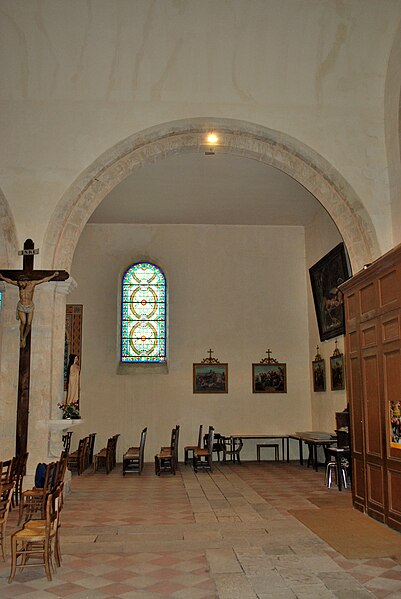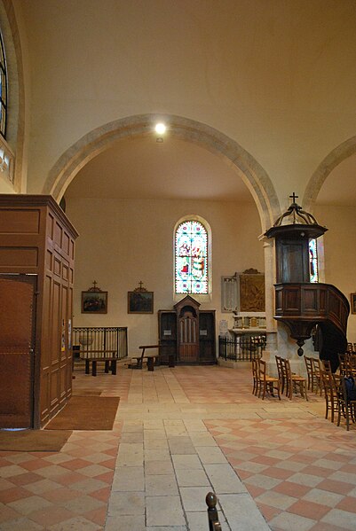 L'église conserve quinze vitraux réalisés par des maîtres‑verriers ; les verrières du chœur posées en 1869 par Joseph Villiet remplacent celles détruites par la tempête de 1865, et quelques vitraux des bas‑côtés nord sont l'œuvre de Louis Hutrel (années 1860‑1870). Les baies du sanctuaire figurent des saints et des scènes hagiographiques, tandis que les vitraux des collatéraux présentent des motifs figuratifs ou décoratifs selon les travées. Le mobilier liturgique est riche : fonts baptismaux anciens (bénitier réemployé du XVIIe siècle et une coquille monumentale Tridacna du XVIe siècle), chandelier pascal et lutrin du XIXe siècle, chaire de 1818, stalles du XVIIIe siècle, tableaux et statues inscrits à l'Inventaire ou à l'I.G.P.C. Parmi les œuvres peintes se trouvent un tableau du miracle de saint Blaise (début XIXe siècle) et une Mort du Christ, tandis que les statues incluent plusieurs Vierges et des figures de saints datées des XIXe et XXe siècles.