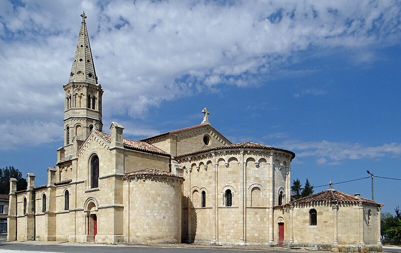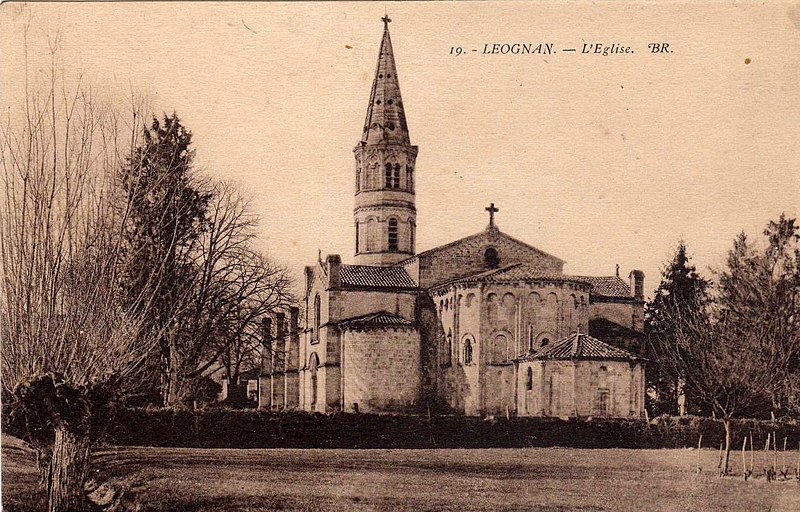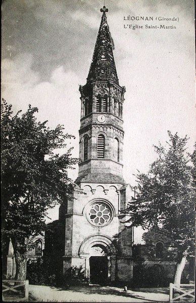 L'église Saint-Martin se trouve au centre du bourg de Léognan, en Gironde. Elle est d'origine romane : une première chapelle a été édifiée à la fin du XIe siècle selon un plan en croix latine, avec trois absides semi-circulaires à l'est. La nef comprend trois travées et le chevet présente une abside à neuf pans ornée d'un double étage d'arcatures et de colonnes qui couvrent tout le mur de fond; une description détaillée du chevet par Léo Drouyn est consultable en bibliographie. Implantée sur la route de pèlerinage de Saint-Jacques-de-Compostelle reliant Bordeaux à Béliet, la chapelle dépendait des Hospitaliers de l'ordre de Saint-Jean de Jérusalem, qui accueillaient les pèlerins et entretenaient un hôpital aujourd'hui disparu. De chapelle elle devint église paroissiale jusqu'en 1789, date à laquelle elle fut transformée en Temple de la Raison et ses dépendances converties en prison. Au XIXe siècle, l'édifice était très délabré ; lors de la reconstruction commencée en 1853, l'architecte Jean-Baptiste Lafargue, conseillé par Eugène Viollet-le-Duc, n'a pu conserver que l'abside romane. L'église a été classée au titre des monuments historiques en 1862.