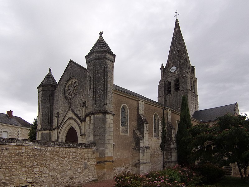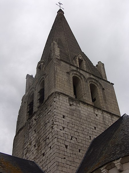 L'église paroissiale Saint-Martin de Ligré (Indre-et-Loire) est un édifice d'origine principalement XIIe siècle, remanié au XVe siècle et partiellement reconstruit à la fin du XIXe siècle après un incendie. Elle apparaît sous la forme « ecclesia de Ligro » dans une charte de l'abbaye Notre-Dame de Beaumont-lès-Tours et appartenait au XIIe siècle à l'abbaye Saint-Paul de Cormery, possession confirmée par une bulle d'Alexandre III en 1180 citée dans le cartulaire. Les plus anciennes structures datent de cette période. Le clocher a été remanié au XVe siècle, tandis que des maçonneries du XIIe siècle subsistent à sa base. Le 2 août 1876, un incendie détruit la nef, qui a été entièrement reconstruite, les autres parties ayant été préservées. L'église, à l'exception de la nef, est inscrite comme monument historique par arrêté du 18 juin 1962, et le mécanisme de l'horloge installé dans le beffroi, datant de la première moitié du XXe siècle, a été protégé en 1999. Située au centre du bourg de Ligré, la nef s'ouvre vers l'ouest-sud-ouest et le chœur vers l'est-nord-est. L'édifice adopte le plan en croix latine classique, composé d'une nef, d'un transept et d'un chœur terminé par une abside semi-circulaire. La nef, moderne, présente en façade un portail en arc brisé surmonté d'une rosace et est flanquée à chaque angle de tourelles polygonales. Ses murs gouttereaux sont épaulés par des contreforts, sensiblement plus massifs du côté méridional en raison d'un terrain plus bas. La croisée du transept est cantonnée de fortes piles aux angles qui portent chacune des arcades et supportent le clocher élevé au-dessus. Cette croisée est voûtée par une coupole à huit pans. Chaque bras du transept est voûté en plein cintre et s'éclaire par une unique baie percée dans son mur terminal. Une absidiole voûtée en cul-de-four est aménagée dans chacun des deux murs orientaux des bras du transept. Le clocher, principalement daté du XVe siècle, comporte à l'étage de beffroi deux baies jumelles sur chacune de ses faces. Il se termine par une flèche en pierre de plan octogonal, décorée de pinacles aux angles du beffroi et percée d'une lucarne sur trois côtés, le côté tourné vers la nef recevant une horloge. Le chœur, d'une seule travée, s'achève par une abside voûtée en cul-de-four et éclairée par une unique baie en plein cintre. Les documents iconographiques disponibles montrent la vue générale de l'église et du cimetière, la façade occidentale, la nef vue du sud, un plan rapproché du clocher et le chevet.