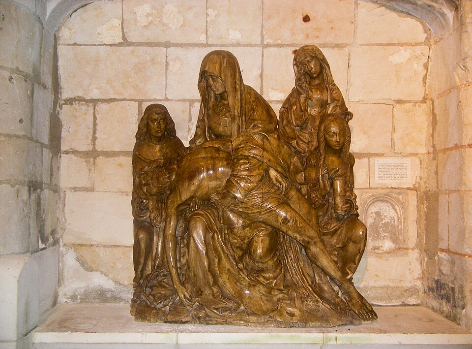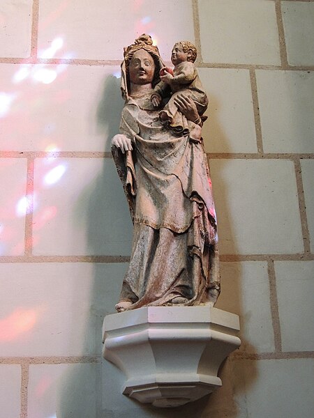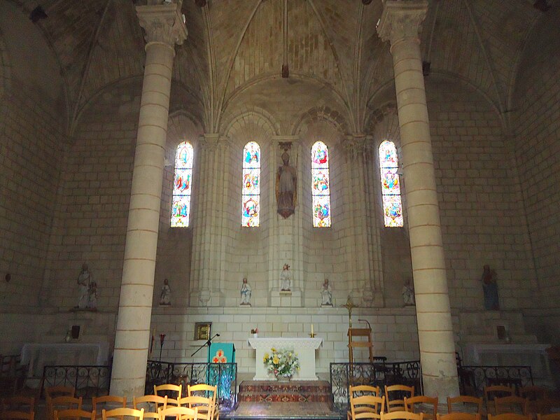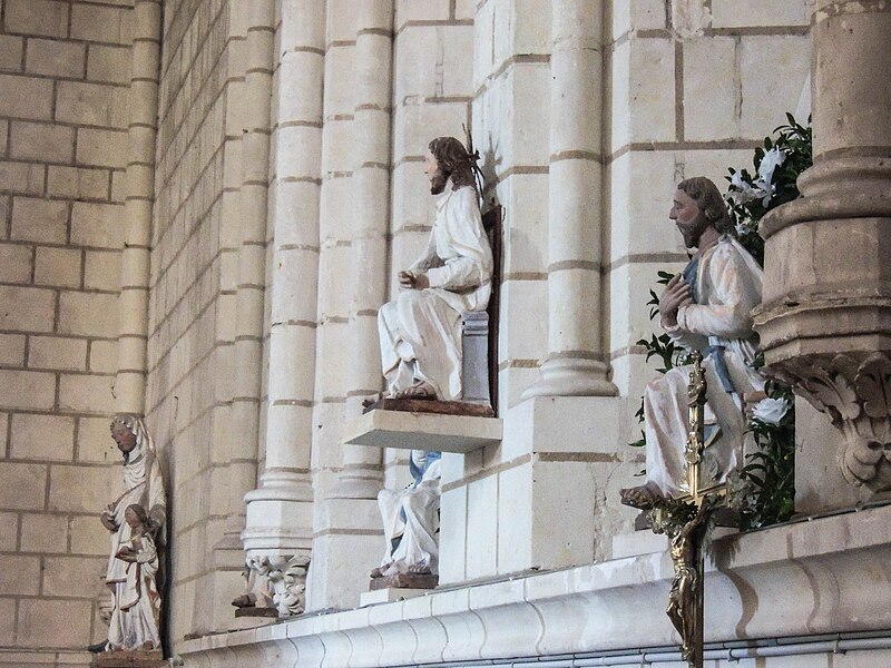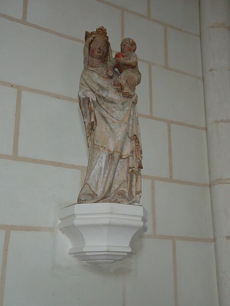Le mobilier comprend de nombreuses sculptures remarquables : un groupe en noyer représentant la Déploration, attribué à un atelier tourangeau ou nordique autour de 1500 et classé en 1938, deux crucifixions en noyer dont l'une provient de Pringé et a été partiellement reconstituée, une Vierge de pierre couronnée tardive du XIVe siècle venue de Pringé, un saint Jean-Baptiste polychrome du XVIe siècle, ainsi que des éléments de statues en calcaire du début du XVIe siècle retrouvés au XXe siècle dont saint Michel, protégé au titre des monuments historiques depuis 1982. Le chœur conserve des statues en terre cuite, dont un saint Martin évêque de 1668 par Nicolas Bouteiller et une Vierge à l'Enfant de la première moitié du XVIe siècle.