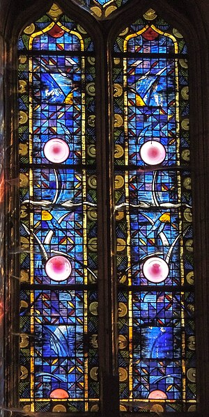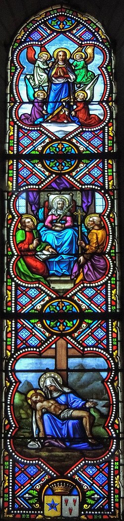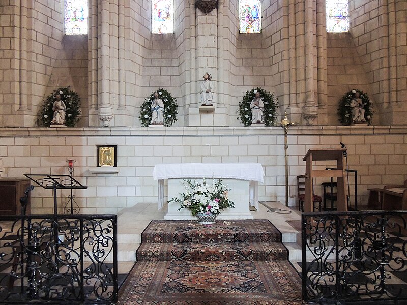 Les vitraux du chœur et du transept, réalisés par François Fialeix en 1876, illustrent des épisodes de la vie de Jésus et la vie de saint Martin ; ceux de la nef, d'Emmanuel Putanier (atelier Vitrail France), sont de style abstrait et datent de 2001, la baie ouest représentant la Crucifixion. Parmi les autres objets remarquables figurent un sarcophage mérovingien classé en 1988, une clôture de chœur en fer forgé du XVIIIe siècle, la chaire et les fonts baptismaux offerts en 1929 et divers autels secondaires, reliquaires et statues provenant d'époques variées. Le clocher abrite trois cloches, la plus grosse, Anne‑Marie‑Martine, ayant été installée en 1925 et fondue par les établissements Bollée ; les deux autres, Jeanne et Alice, proviennent de paroisses algériennes et ont été bénies en 1966.