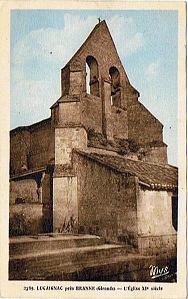 L'église Saint-Martin est une église catholique située dans la commune de Lugaignac, en Gironde, France. Elle se trouve au bourg de Lugaignac, au sud de Branne, entre les routes départementales D122 et D19. Cette petite église mesure environ 20 m sur 6 m et date de la fin du XIIe siècle. Elle présente une nef unique de trois travées voûtée en berceau brisé, un chœur carré et une abside à pans couverte d'une voûte en cul-de-four. Les murs de la nef ont été renforcés par des contreforts au XVIIe siècle, et deux chapelles sur le flanc nord ainsi qu'un porche occidental ont été ajoutés. Dans son clocher-mur, l'édifice conserve une cloche datée du 21 mars 1557. À l'intérieur, la chaire à prêcher en pierre remonte à la fin du XVIe siècle, période de la Contre-Réforme. Le bénitier, daté du XIIe siècle, est orné d'une série d'arcatures et de motifs en forme de grappes de raisin ou de pommes de pin, symboles de la vie éternelle. Le portail est rythmé par douze colonnes aux chapiteaux. L'ébrasement sud présente des corbeilles lisses, tandis que l'ébrasement nord est d'origine avec des corbeilles à feuilles d'eau et des motifs géométriques; ces corbeilles sont sommées de tailloirs alternant plusieurs rangs de dents de scie. Sur une double colonne subsistent les restes très abîmés d'une unique sculpture figurée. Le chevet a conservé des modillons d'origine en très bon état. L'ensemble de l'édifice a été inscrit au titre des monuments historiques par arrêté du 24 décembre 1925.