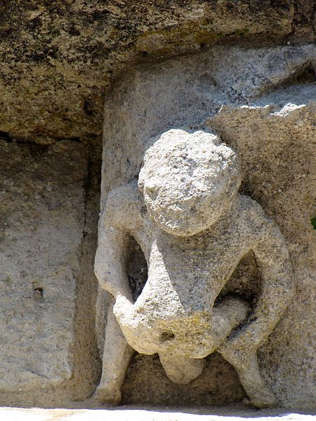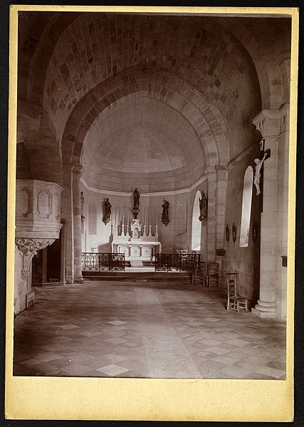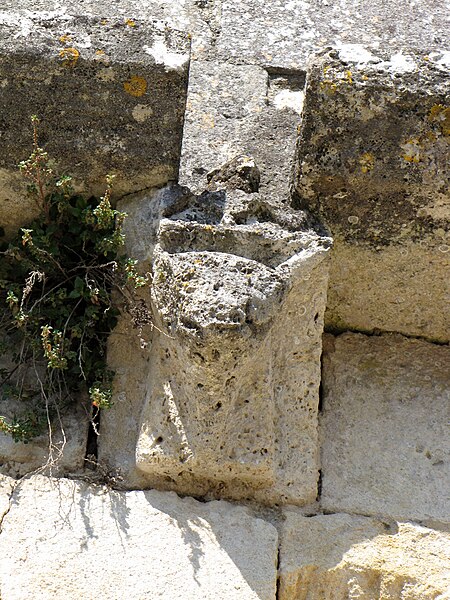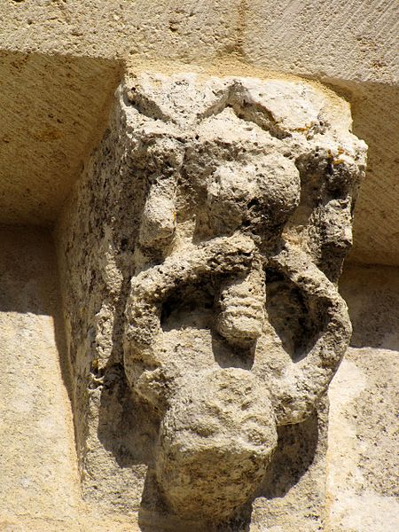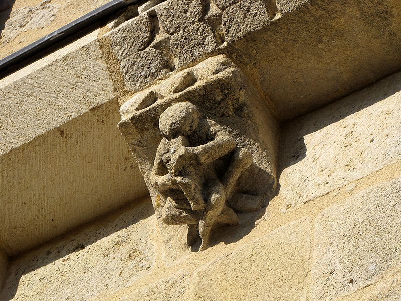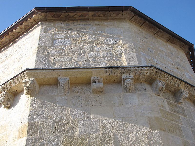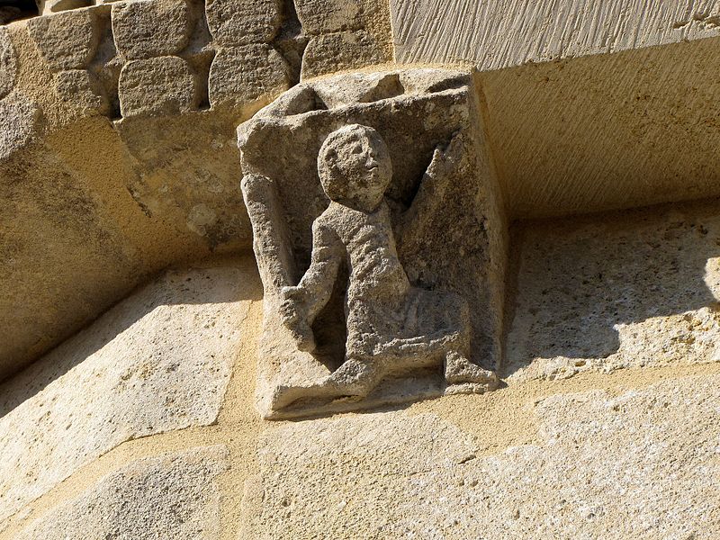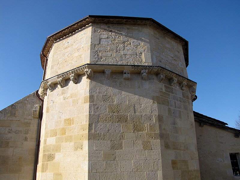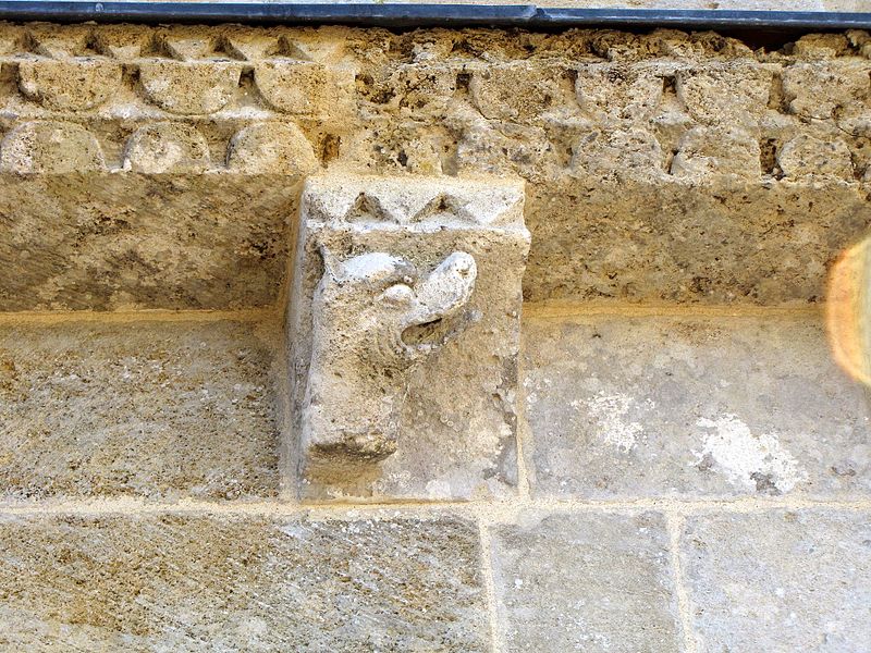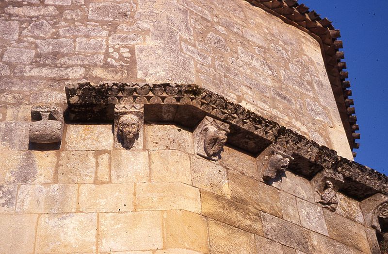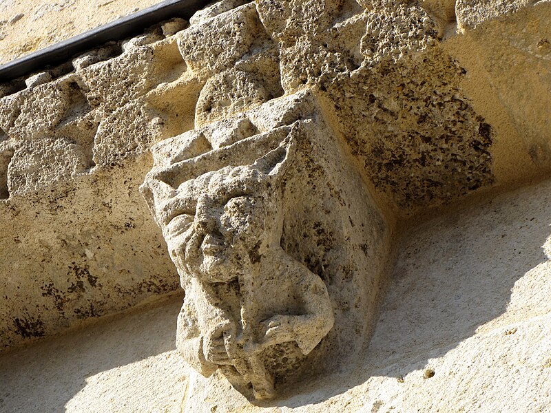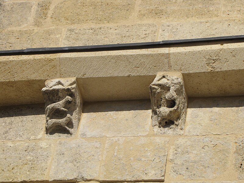 Les modillons sont des supports placés en saillie sous la corniche pour en soutenir l'extrémité; leur ornementation peut être géométrique ou figurative. Ils peuvent représenter des animaux, des créatures mythologiques, des monstres ou des personnages humains et illustrer des activités variées comme la musique, le travail ou des scènes à caractère sexuel, ce qui peut surprendre sur le chevet d'une église. De tels modillons « obscènes » ou impudiques sont fréquents sur les églises romanes de France, d'Angleterre, d'Irlande et d'Espagne. Le clergé exerçait un contrôle sur l'iconographie dans les églises depuis le deuxième concile de Nicée en 787, ce qui laisse penser que ces images répondaient à une intention. La représentation des animaux dans l'art médiéval occidental étant codifiée dans les bestiaires, on retrouve des thèmes similaires dans la décoration romane à travers l'Europe. Les modillons servaient aussi à illustrer et à dénoncer les péchés charnels par des images facilement compréhensibles pour des populations peu instruites, formant ainsi un « sermon en pierre ». Les modillons de l'église Saint-Martin couvrent presque tous ces thèmes. On y reconnaît, entre autres, un exhibitionniste anal, un centaure, une tête démoniaque, deux chiens, une scène de masturbation, un joueur de psaltérion, un homme armé d'une massue, un diablotin, des motifs végétaux et géométriques, un tonneau de vin, une tête d'homme, un satyre avec une femme, une tête de basilic, un félin, une cruche et un joueur de cor. L'exhibitionniste est représenté nu, accroupi, montrant son anus d'une main et indiquant celui-ci de l'autre. Le centaure, souvent associé dans l'art roman à des figures sataniques ou libidineuses, y est figuré dans une attitude de menace ou de rétribution vis‑à‑vis de l'exhibitionniste. Le satyre et la femme ont souffert de l'iconoclasme : on devine une femme nue debout devant un homme agenouillé, ce dernier portant un phallus pointu et deux petites cornes au‑dessus des oreilles, signe de la caractérisation diabolique de la chair.