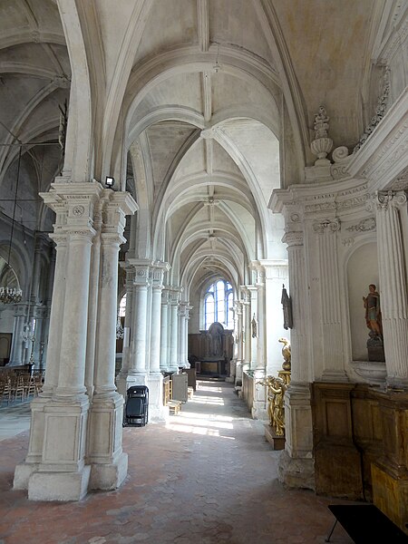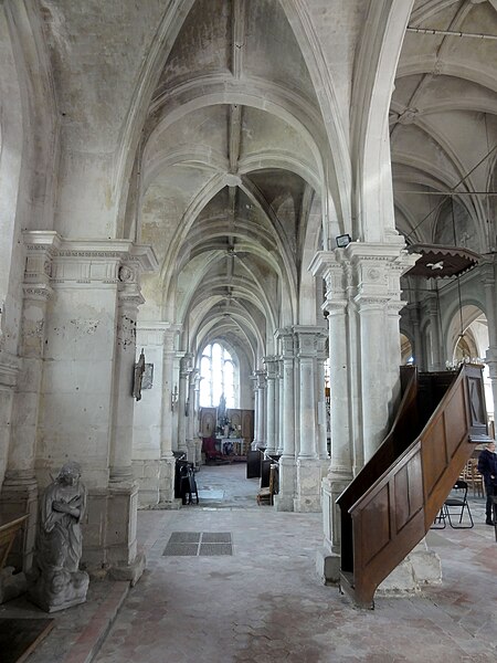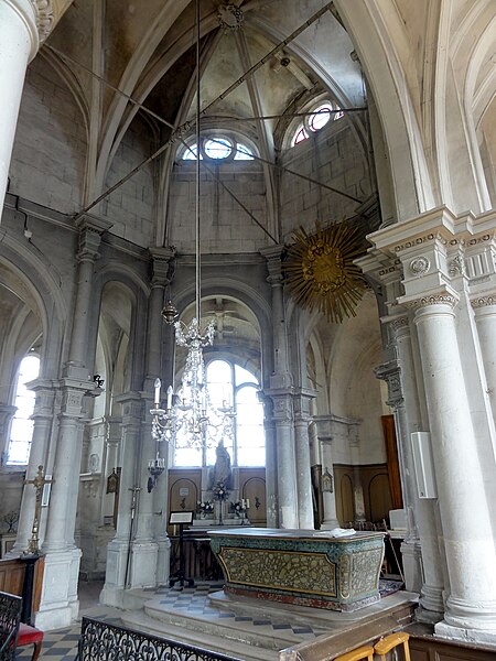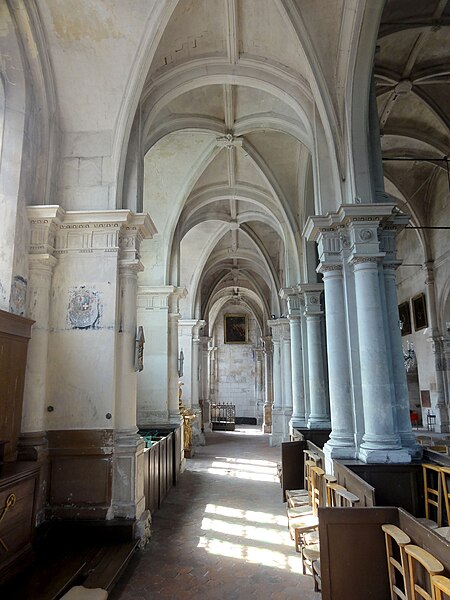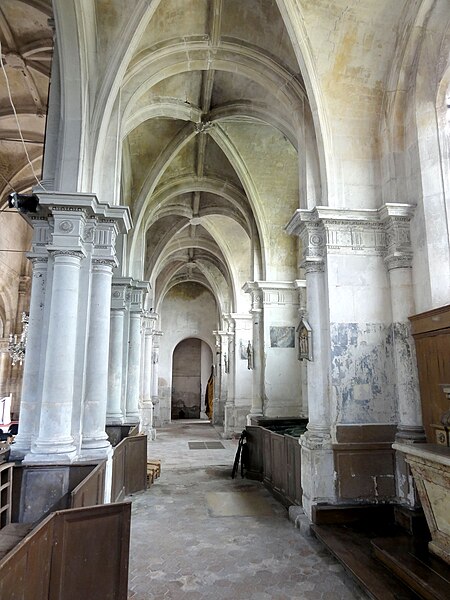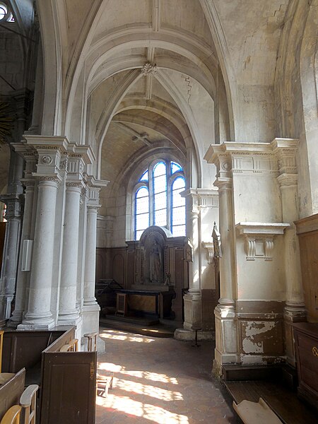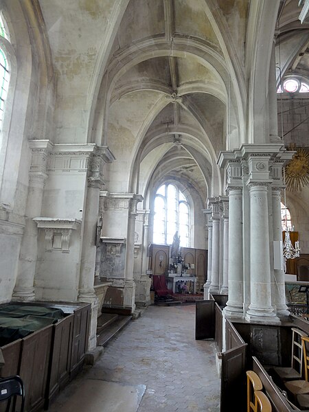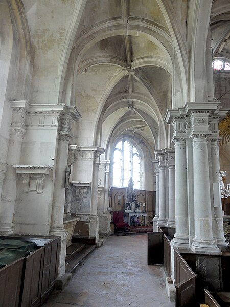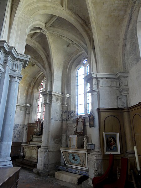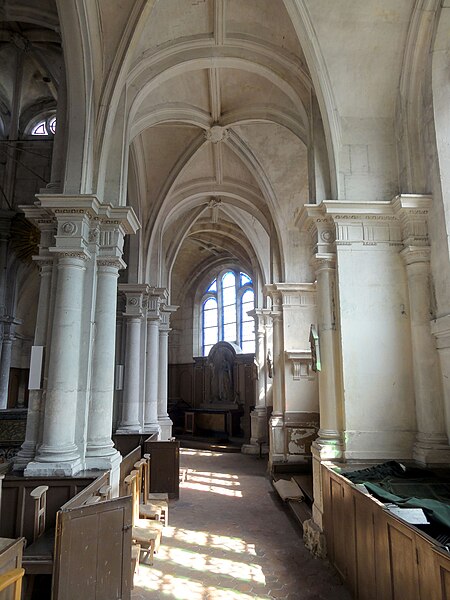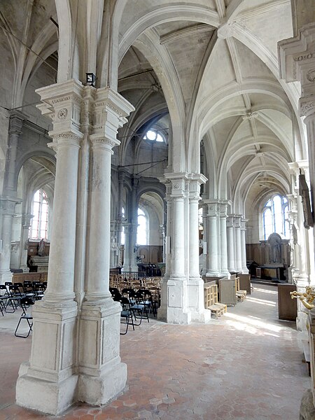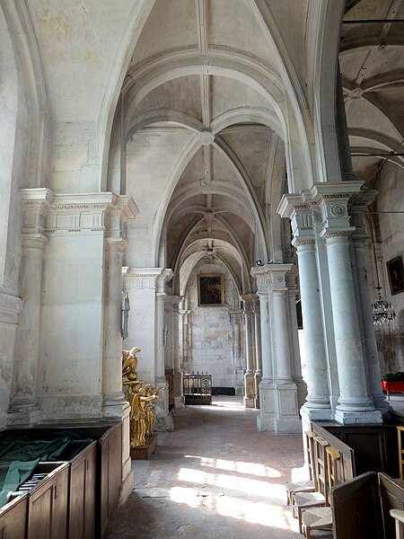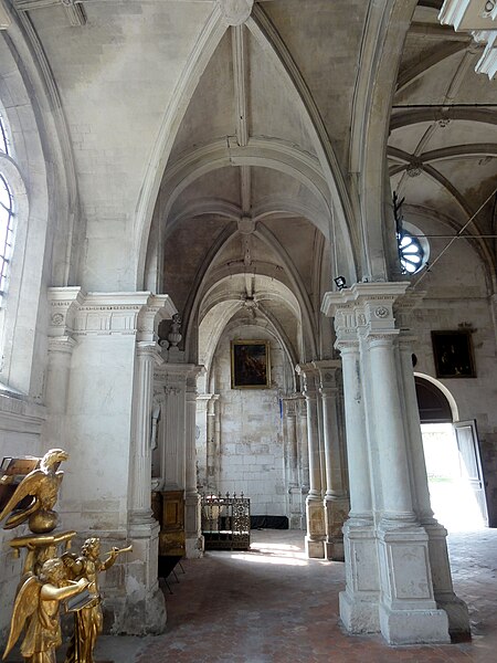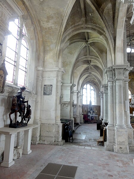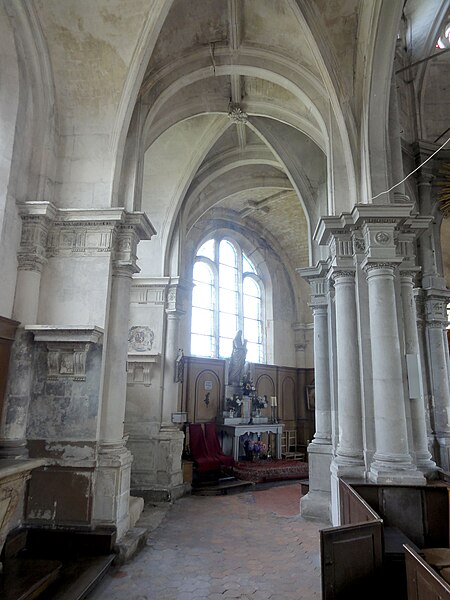 L'église Saint‑Martin de Mareil‑en‑France (Val‑d'Oise) est une église paroissiale catholique dont l'essentiel a été bâti lors d'une unique campagne au début du dernier quart du XVIe siècle. Depuis le domaine public, seuls le clocher et la façade occidentale, remaniés au milieu du XIXe siècle, sont visibles, tandis que les parties Renaissance restent largement masquées par des bâtiments et l'ancien cimetière. L'édifice se distingue par l'homogénéité et la qualité de son architecture Renaissance, où le voûtement d'ogives hérité du gothique se combine à des supports d'inspiration antique. L'ordonnancement et la sculpture monumentale portent la signature du maître‑maçon Nicolas de Saint‑Michel, de Luzarches, attribution établie par comparaison stylistique avec l'église Saint‑Martin d'Attainville et des rapprochements documentaires. Le plan est remarquable : il comprend un déambulatoire complet sans chapelles rayonnantes, et une enfilade de chapelles peu profondes rendue possible par des contreforts intérieurs. Cette disposition, rare pour une église Renaissance du nord de l'Île‑de‑France, a été qualifiée d'exceptionnelle par les historiens ; elle explique aussi la relative pénombre du chevet, l'abside étant entourée par le déambulatoire. Si la disposition générale et le voûtement renvoient à la tradition gothique, les supports, chapiteaux et entablements relèvent d'un langage formel résolument Renaissance. Les élévations latérales et le chevet, bâtis en pierre de taille, présentent un rythme modulaire et un décor sculpté sobre mais soigné. La paroisse, évoquée dès 1150 et placée sous le patronage de saint Martin, dépendait du doyenné de Montmorency et du diocèse de Paris jusqu'à la fin de l'Ancien Régime ; la présence du prieuré Saint‑Martin‑des‑Champs explique l'antique dévotion et les liens fonciers anciens. Les textes et les armes visibles laissent supposer l'intervention des seigneurs locaux, notamment la famille du Val, dans le financement de la reconstruction du XVIe siècle. Au milieu du XIXe siècle, l'architecte Volkers a remplacé le clocher menaçant, allongé la nef d'une travée et réalisé la façade néorenaissance, opérations qui ont été intégrées à l'intérieur sans rompre l'ordonnance d'ensemble. L'église conserve un mobilier abondant : parmi les pièces remarquables figurent une Charité de saint Martin en bois peint du dernier quart du XVIe siècle, un lutrin‑aigle soutenu par un atlante, des sculptures anciennes, des dalles funéraires et une cloche de 1599 ; plusieurs de ces éléments sont classés au titre des monuments historiques. L'ensemble de l'édifice a lui‑même été inscrit au titre des monuments historiques par arrêté du 21 février 1914. Affiliée à la paroisse de Luzarches et intégrée à la « paroisse des onze clochers », l'église Saint‑Martin n'accueille que rarement des messes dominicales. Malgré la sobriété extérieure due aux remaniements et aux contraintes de l'environnement agricole, l'intérieur révèle une œuvre de la Renaissance française d'une rare homogénéité et d'une grande finesse décorative.