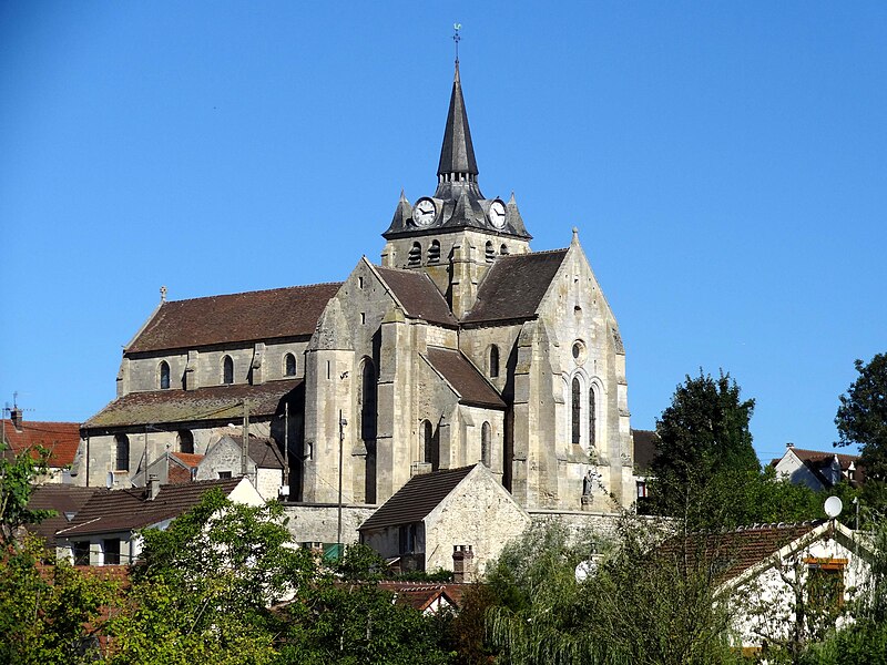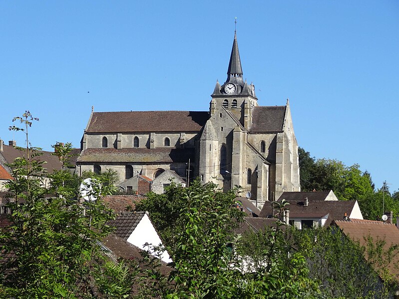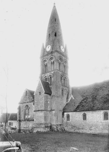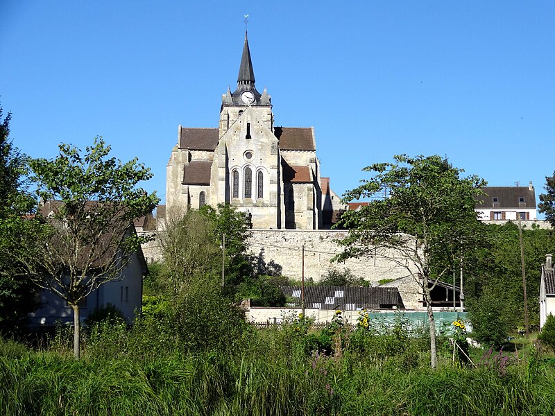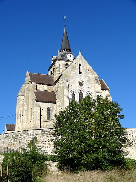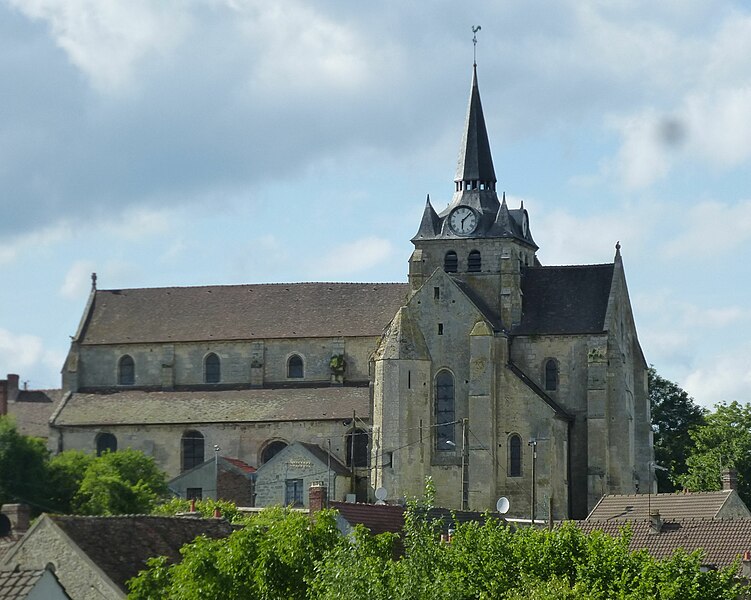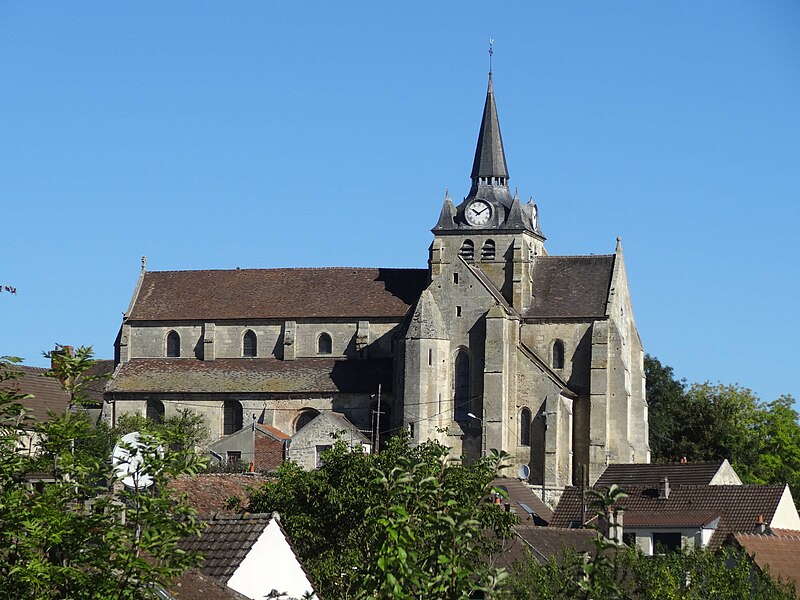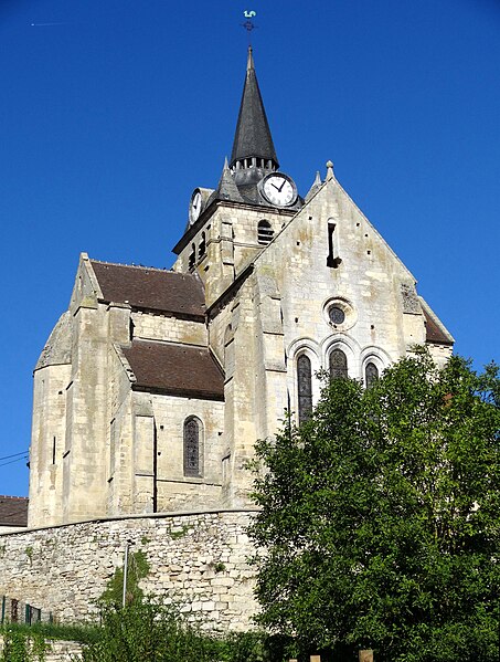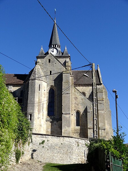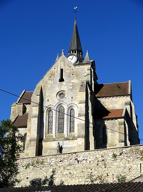 L'édifice est un ensemble très homogène de style gothique, bâti en trois campagnes rapprochées au cours de la première moitié du XIIIe siècle. Le plan est cruciforme et symétrique : nef de quatre travées accompagnée de deux bas-côtés, transept débordant dont les croisillons se prolongent par deux chapelles carrées vers l'est, et chœur d'une seule travée à chevet plat. La sculpture et la modénature des trois premières travées reflètent pleinement l'époque de construction, mais l'architecture conserve des traits de la tradition romane tardive — proportions, arcatures et baies en plein cintre, absence de fenêtres à remplage — en lien avec le courant architectural du diocèse de Soissons. Trois campagnes se distinguent clairement : la première a réalisé le chœur, le transept et les chapelles, la deuxième la quatrième travée de la nef et des bas-côtés, la troisième les trois travées occidentales et la façade ; ces phases se lisent notamment dans les profils des ogives et dans l'emploi de pilastres pour les grandes arcades.