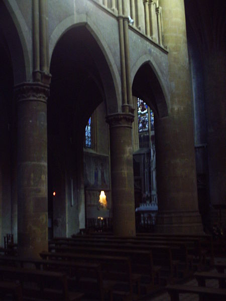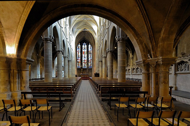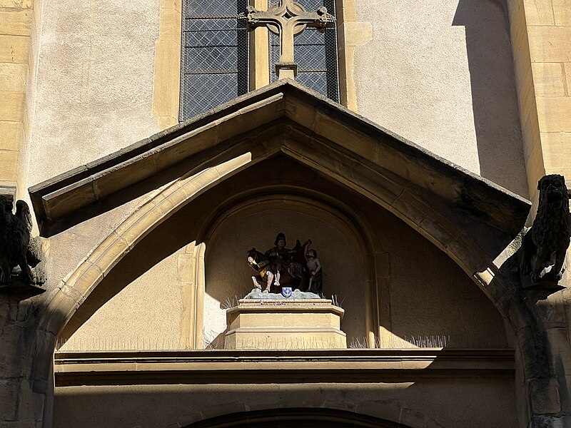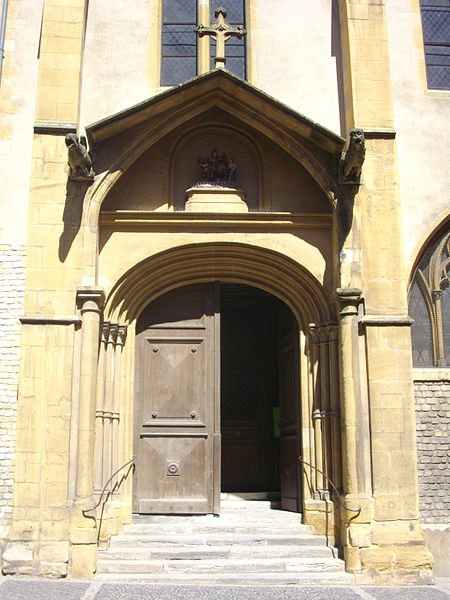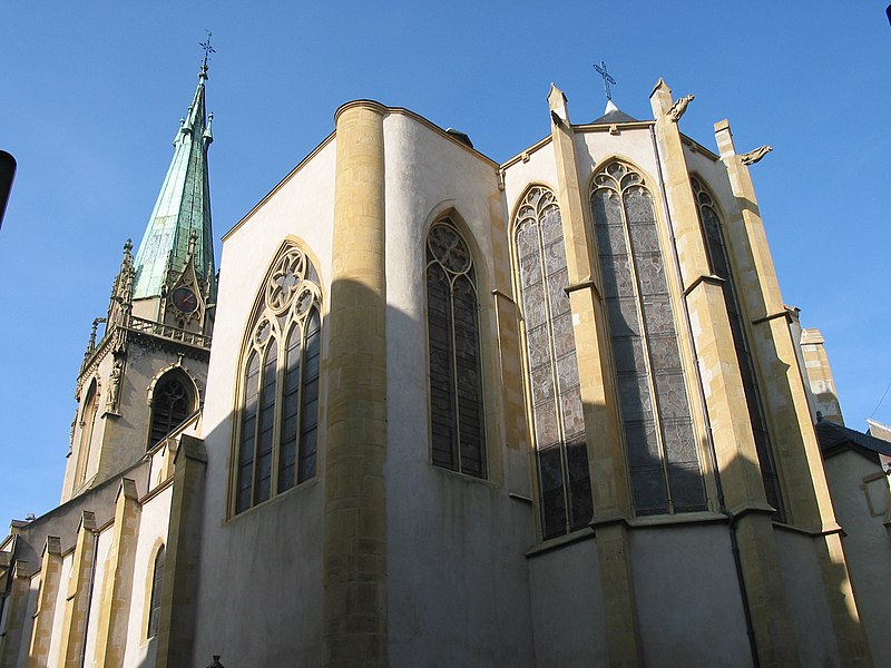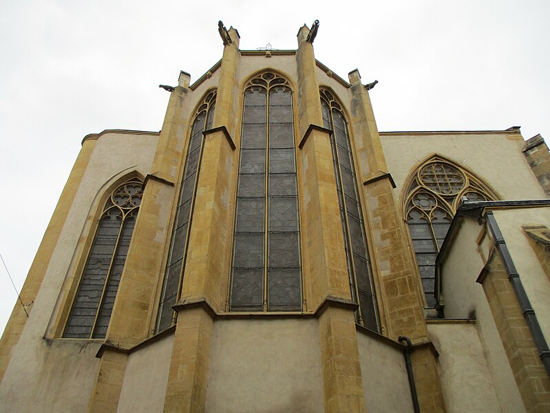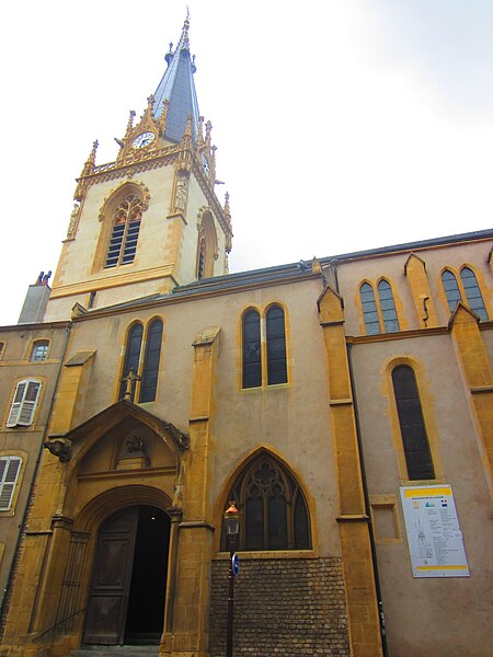 L'église Saint-Martin est l'une des plus anciennes églises et paroisses catholiques de Metz ; elle se situe au 25 rue des Huiliers, dans le quartier de Metz-Centre, son saint patron étant Martin de Tours, et son clocher sonne de 8h à 20h. Un premier sanctuaire, installé sur le flanc sud‑ouest de la ville gallo‑romaine de Divodurum, a donné son nom à la paroisse dite « in curtis » ; sa période de construction reste inconnue. L'édifice a connu plusieurs campagnes de construction et de transformation : à la fin du XIIe siècle il fut presque entièrement reconstruit, partiellement sur des murailles romaines du IIIe siècle dont subsistent des vestiges visibles de chaque côté du portail. L'église est citée en 1212 dans un acte de Frédéric II qui la place sous le patronage de l'hôpital Saint‑Nicolas. À la charnière des XVe et XVIe siècles, une nouvelle campagne a élevé le chœur, la première sacristie et le transept, et a doté Saint‑Martin de ses premiers vitraux. Au XIXe siècle, les verrières du chœur ont été remplacées par des compositions de Laurent‑Charles Maréchal. La tour du clocher, rasée en 1565 pour des raisons militaires lors de la construction de la citadelle, a fait l'objet d'un projet de reconstruction au XIXe siècle qui aboutit à une tour néo‑gothique inaugurée le 13 novembre 1887 ; le budget des travaux fut assumé par la paroisse, l'État et la ville de Metz. Cette reconstruction a modifié la symétrie du transept en supprimant le bras sud et en altérant l'impact visuel de l'ensemble. Des restaurations récentes, menées notamment en 2012 puis sous la direction de Christophe Bottineau, architecte en chef des Monuments historiques, se sont achevées en 2014 et ont porté sur le massif et la flèche du clocher, la base octogonale, la balustrade de la tourelle, les soubassements ainsi que sur les vitraux, les menuiseries, la charpente, la statuaire et l'horlogerie. Adam Philippe de Custine y a été baptisé, selon les registres paroissiaux. Le narthex, ensemble de travées basses prolongeant le porche, présente des chapiteaux d'allure primitive et des piliers massifs qui suggèrent une datation à la fin du XIIe ou au début du XIIIe siècle et évoquent l'architecture romane ou carolingienne. La nef, remarquable par son élévation, est scandée par cinq rangées de colonnes qui mènent à la croisée du transept ; ses arcs aigus, la profusion d'ornements floraux et l'élancement des voûtes témoignent d'une influence champenoise. Les murs de la nef sont animés par un faux triforium et quatre piliers d'un seul jet délimitent l'avant‑chœur. Le chœur illustre l'art flamboyant du début du XVIe siècle par l'élégance de ses grandes verrières et la disposition symétrique des panneaux de l'abside ornés d'entrelacs géométriques ; les vitraux anciens du chœur ont été dispersés dans le transept et les chapelles latérales et remplacés en 1881 par dix tableaux de Laurent‑Charles Maréchal. Le corpus des vitraux comprend des verrières des XVe et XVIe siècles et de nombreuses interventions de XIXe et début XXe siècles : créations et restaurations de Laurent‑Charles Maréchal, de l'atelier Maréchal et Champigneulle, de Jean‑Pierre Thiria, de Michel Frédéric Thiria et de Jean Gaudin, plusieurs d'entre elles ayant été classées en 1930. Parmi les pièces remarquables figurent une verrière de 1506 représentant saint Pierre, saint Nicolas, saint Jean et saint Claude (déplacée et complétée au XIXe siècle, démontée en 1939 et remontée en 1949), des cycles sur la vie de saint Martin, une Annonciation offerte par Catherine de Gournay vers 1467, une Passion de la moitié du XVe siècle, ainsi que des scènes du couronnement de Charles VII et d'autres scènes hagiographiques ; deux verrières attribuées à l'atelier de Pierre d'Andlau, posées vers 1500, sont également classées. L'orgue de tribune, construit par Roman Benedikt Nollet en 1773 pour l'abbaye de Klausen et transféré à Saint‑Martin en 1803, a été transformé et agrandi au cours du XIXe siècle, restauré et réceptionné en 1895, électrifié en 1950, rendu muet vers 1990 puis relevé en 2004 ; il est classé à titre d'objet (1975) et sa partie instrumentale l'est également (1976). L'instrument comporte trois claviers, un pédalier et une composition étendue incluant des jeux de grand orgue, positif, récit et pédale, parmi lesquels figurent des jeux de bourdons, montres, gambes, flûtes, prestants, trompettes et bombarde. Les éléments mobiliers, les vitraux et l'orgue font l'objet de protections et l'édifice est documenté dans des inventaires et publications consacrés au patrimoine.