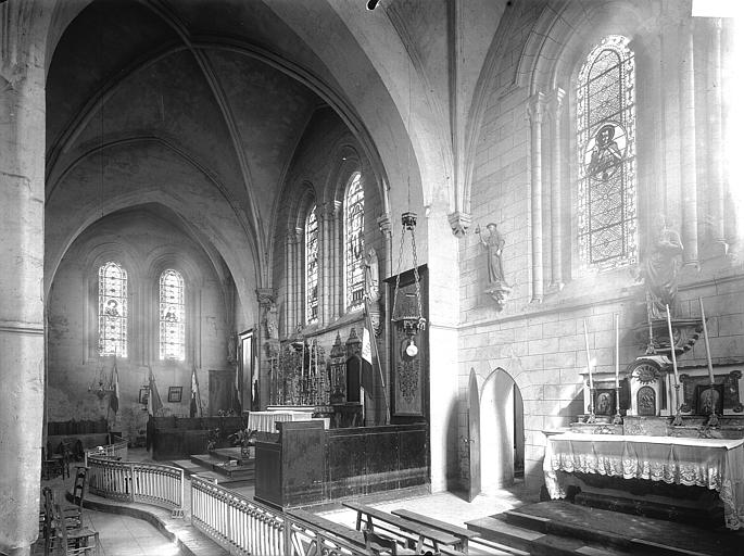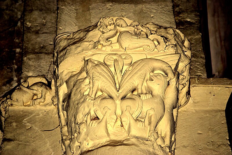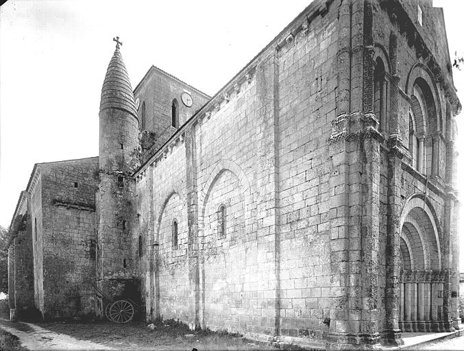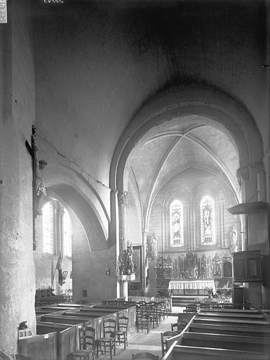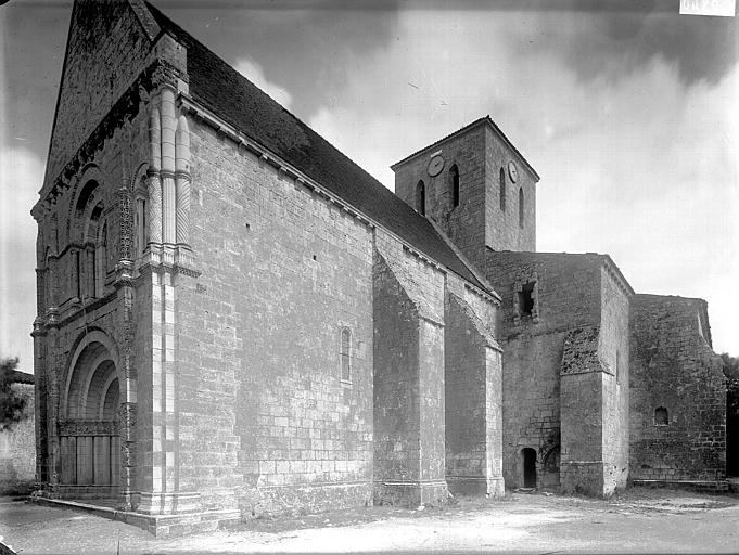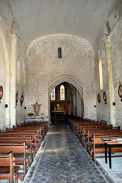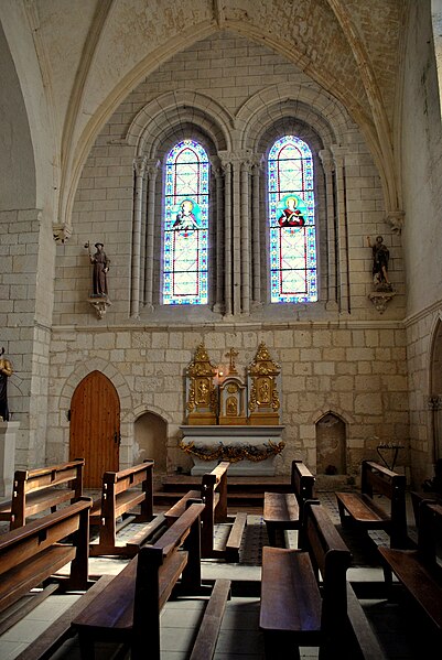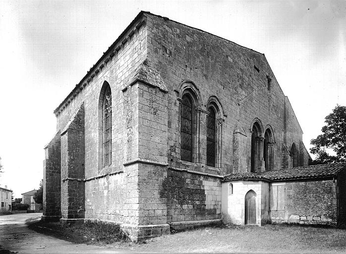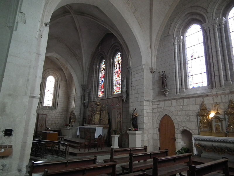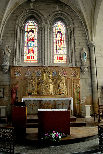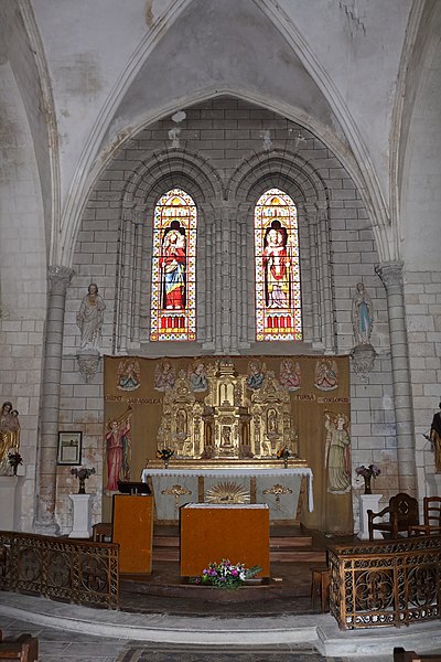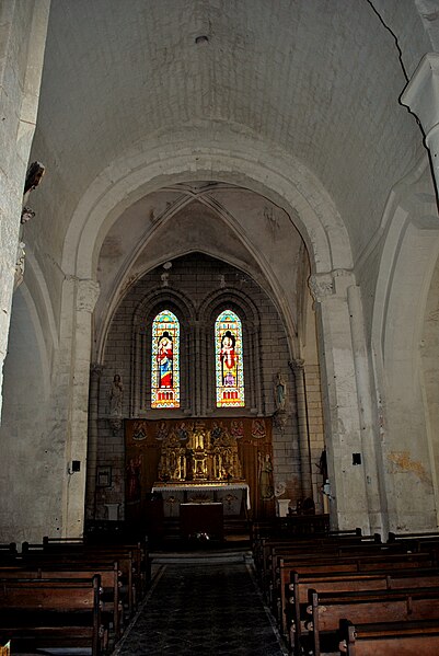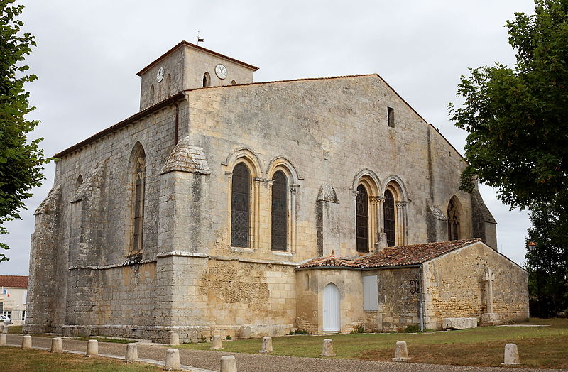 L'église Saint‑Martin est l'église paroissiale de Meursac (Charente‑Maritime), dans le diocèse de La Rochelle et Saintes, et est classée monument historique depuis 1909. À l'origine, elle présentait le plan d'une croix latine avec un clocher à la croisée du transept. Le croisillon nord, avec sa voûte en blocage et ses arcs en plein cintre, ainsi qu'une partie de l'ancien chœur, pourraient remonter au Xe siècle, tandis que d'autres éléments anciens paraissent dater du XIIe siècle. Au XIIIe siècle, le rond‑point de l'ancienne abside fut remplacé par une ouverture ajoutée au chœur et fermée à l'est par un mur droit. Les murs qui fermaient les transepts ont été supprimés pour construire deux chapelles prolongeant l'alignement du fond du sanctuaire. Vu de l'extérieur, l'édifice présente un vaste chevet carré dont le développement est égal à la longueur du transept. La nef a perdu sa voûte primitive, qui devait être ogivale avec des arcs doubleaux carrés. Le clocher, bâti sur la croisée, repose sur des arcs en ogive emboîtés avec leur pilier de support dans l'édifice primitif ; il s'élève en un corps carré couronné d'une coupole sur pendentifs et est flanqué d'une tourelle d'escalier « en pomme de pin ». La façade, divisée en trois niveaux et couronnée d'un pignon aigu, paraît remonter au XIIe siècle ; la porte d'entrée a été refaite au XVIe siècle et les claveaux ont été refaits en 1895. Le portail inférieur, en plein cintre, comporte quatre voussures portées par des colonnettes aux chapiteaux sculptés d'entrelacs, de visages et d'oiseaux. À l'étage supérieur, une baie centrale à trois voussures est encadrée par deux arcades aveugles séparées par des colonnettes reposant sur une corniche ; la transition vers le pignon se fait par une série de modillons figurant des animaux identifiés en latin (Leopardus, Colube) et un personnage tirant la langue. L'intérieur présente une nef de quatre travées couverte d'une voûte en anse de panier ; des colonnes aux chapiteaux dépourvus d'ornementation portaient autrefois les doubleaux de la voûte disparue, et d'amples arcades en berceau brisé rythment les élévations latérales. Le transept et l'avant‑chœur conservent des chapiteaux romans et des voûtes en berceau mais ont été enveloppés par des adjonctions gothiques qui ont conduit à reprendre la maçonnerie ; le carré du transept est entouré de piliers dissemblables portant des arcs grossièrement assemblés. Ces transformations sont attestées en 1488 par un procès‑verbal évoquant la construction « d'ung arseau soulz la tour du clocher dudit lieu ». Le sanctuaire gothique double les parties romanes : chœur et deux chapelles latérales sont couverts de croisées d'ogives retombant sur des culs‑de‑lampe sculptés d'oiseaux et de têtes humaines, et largement éclairés par des baies ogivales ornées de trilobes et quadrilobes. Un retable en bois doré, entouré de deux crédences de style Louis XV et présentant pour motif central « l'agneau de l'apocalypse » sur fond rayonnant, occupe le chœur ; cet ensemble, restauré par les Beaux‑Arts en 1975, aurait été dessiné pour l'abbaye aux Dames de Saintes. La crypte, entièrement taillée dans le roc et accessible au pied du maître‑autel, fut redécouverte en 1976 par le curé D. Héraud ; elle semble avoir été aménagée au Ve siècle, peut‑être sur un souterrain‑refuge d'origine celtique, agrandie au XIIe siècle et longtemps utilisée comme ossuaire. Des traces de fortifications — échauguette et mâchicoulis — ainsi que des indices d'incendie témoignent des combats pendant les guerres de Religion, particulièrement violentes dans la région. Par ses campagnes de reconstruction et ses adjonctions, l'église Saint‑Martin illustre une synthèse des styles roman saintongeais et gothique tardif.