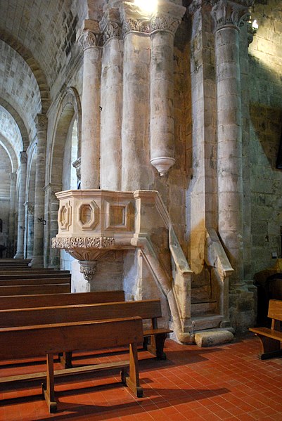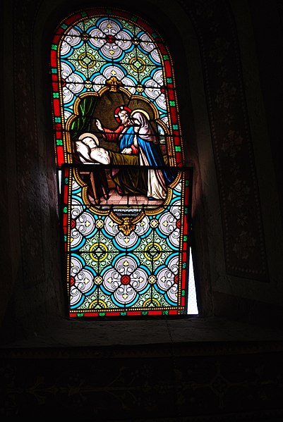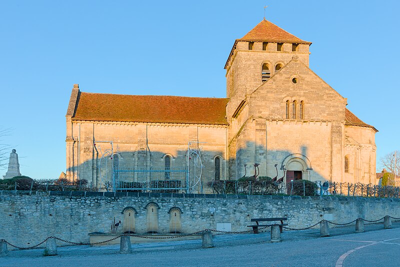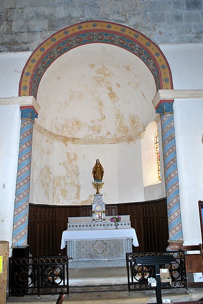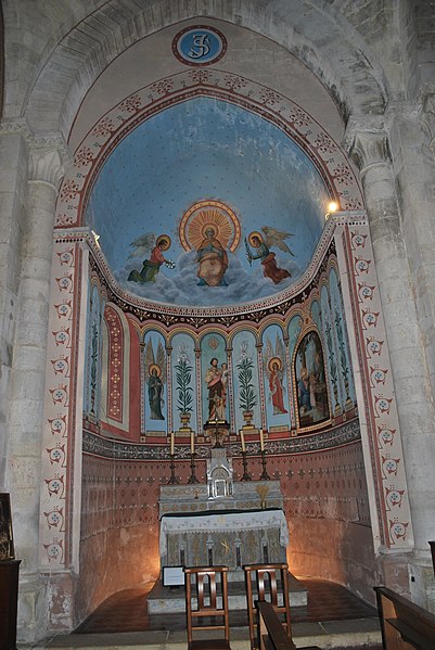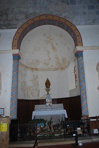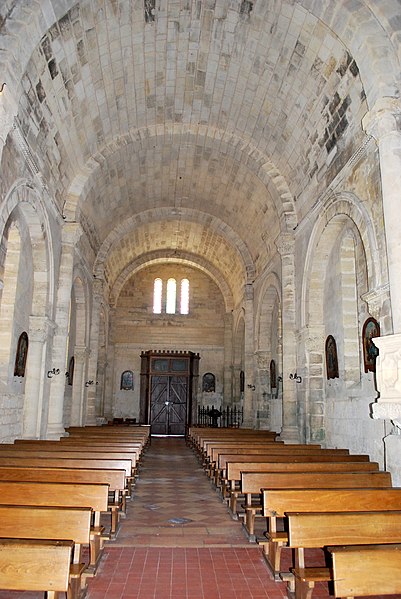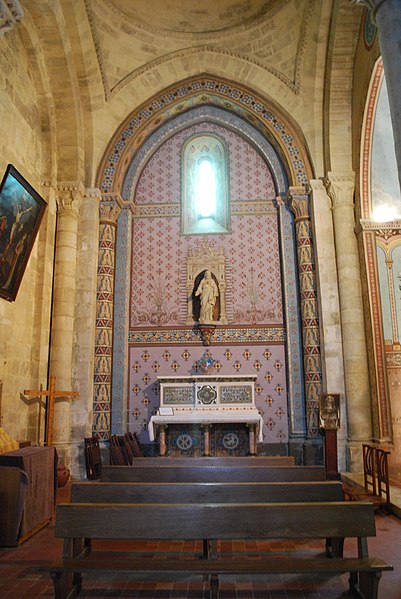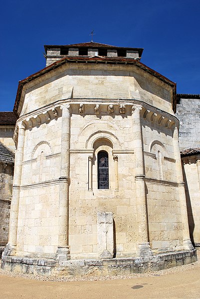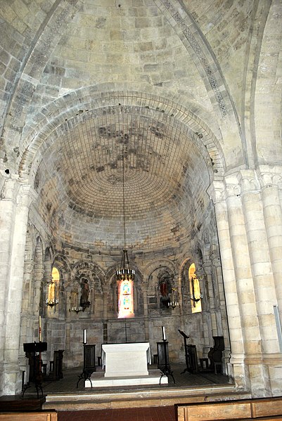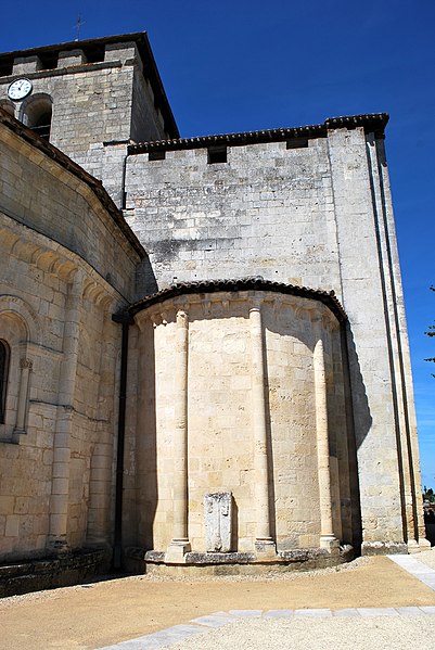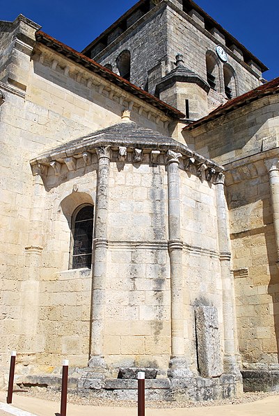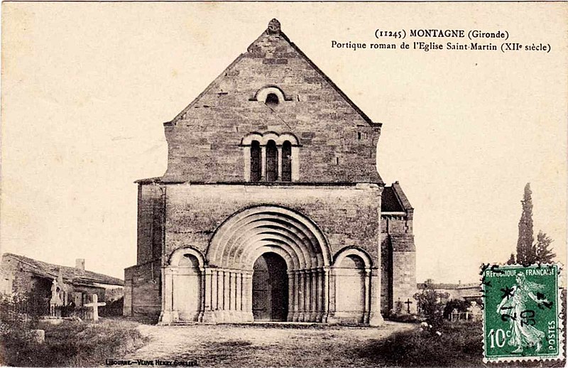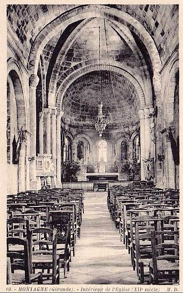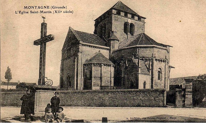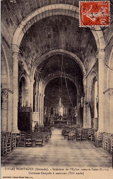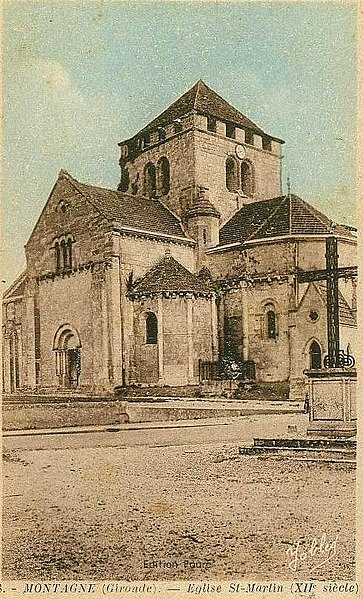 L'église Saint-Martin de Montagne (Gironde) est un édifice catholique d'origine romane, principalement construit au XIIe siècle. Son plan forme une croix latine, avec une nef unique et un transept très saillant; le chevet comprend une abside et deux absidioles anciennes. La nef a été en grande partie refaite au XIXe siècle, et ses voûtes et chapiteaux sculptés datent de cette époque. La croisée du transept est couverte d'une coupole nervée du XIIe siècle, tandis que le croisillon nord porte une coupole à pendentifs postérieure. Le bras sud du transept est voûté en berceau brisé et les trois absides sont voûtées en cul-de-four, si bien que l'édifice présente quatre types de voûtes distincts. Les piliers du carré du transept sont dotés de colonnes engagées et de pilastres arrondis; entre leurs chapiteaux repose un sommier portant une ogive carrée ornée en intrados d'une file de quatre-feuilles, caractéristique annonciatrice des voûtes gothiques sur croisées d'ogives. Cette coupole nervée est unique dans le Libournais. À la croisée s'élève un grand clocher-tour carré, crénelé lors de la Guerre de Cent Ans. Le bras nord du transept, ajouté ultérieurement, recouvre des contreforts qui soutenaient primitivement le clocher central, et les bases des colonnes y témoignent d'une datation plus récente que celles du carré primitif. L'abside principale et l'absidiole sud sont polygonales avec des colonnes engagées aux angles extérieurs; l'absidiole nord est semi-circulaire mais présente un panneau central aplati pour faciliter l'ouverture d'une fenêtre. L'ordonnance des ouvertures s'accompagne d'un cordon horizontal et d'une corniche portée par des modillons figurés et des chapiteaux de colonnes engagées; la corniche principale se compose d'un encorbellement continu avec modillons saillants et rapprochés. Les modillons, le plus souvent à décor végétal simple, datent du XIIe siècle; parmi les mieux conservés, six sont figurés et représentent notamment un loup tenant une tige, des hommes enlacés, des lions aux attributs sexuels, un ours avec sa proie et deux hommes tirant leurs moustaches. Certains modillons romans ont été remployés au XIXe siècle sur le transept sud et y présentent des motifs géométriques ou végétaux. En 1866, l'édifice, très délabré, a fait l'objet d'une restauration conduite par l'architecte M. Labbé : la nef a été largement reconstruite, la charpente, la couverture et le carrelage refaits, l'abside, le transept et les absidioles restaurés en élévation et les voûtes du transept réparées. Des travaux complémentaires ont eu lieu en 1880 sous la direction de M. Hosteing, portant notamment sur la rénovation du transept sud et l'arcature intérieure du chevet. L'édifice possède deux accès : l'entrée d'origine à l'ouest, très simple et flanquée de deux portes feintes, et une porte au sud aménagée lors de la restauration de 1866 dont le tympan porte la date 1870. Au XIVe siècle, le pignon de la façade sud avait été percé pour établir une logette défensive avec archères et mâchicoulis; cet aménagement a été remanié lors des restaurations, mais certains modillons romans ont été conservés sur la façade actuelle. À l'intérieur, les trois absides et le bras nord abritent des autels dédiés à saint Joseph, saint Martin, Notre-Dame et au Sacré-Cœur; derrière l'autel principal s'ouvre l'entrée d'une salle funéraire signalée par une plaque aux blasons des familles inhumées. Cette salle renferme le dernier descendant de la famille de Calvimont, ancien propriétaire de nombreux biens du canton, dont le château des Tours de Montagne. Les vitraux peints de l'abside et de l'absidiole sud sont l'œuvre du maître-verrier bordelais Gustave Pierre Dagrant et datent de 1893 et 1896; les autres vitraux ne sont pas signés. Le mobilier comprend une chaire à prêcher, un confessionnal, des fonts baptismaux et deux tableaux représentant une crucifixion et la Sainte-Famille. À l'extérieur, un cadran canonial figure sur l'absidiole sud, un dessin géométrique de cercles formant une « croix de Malte » est gravé sur un contrefort de l'absidiole nord, et plusieurs sarcophages sont exposés autour du chevet. L'édifice est classé au titre des monuments historiques depuis le 1er décembre 1908.