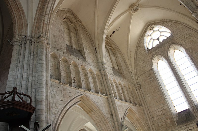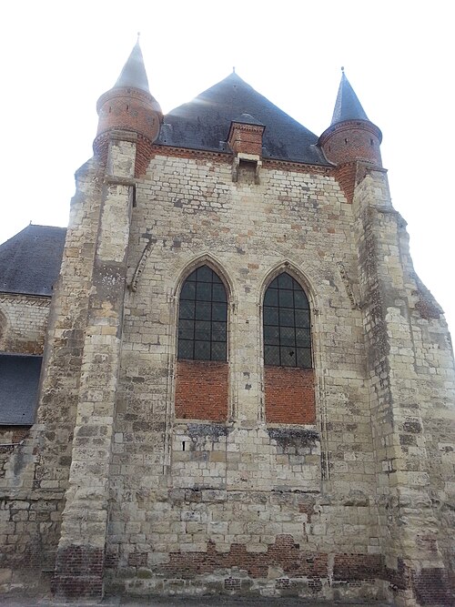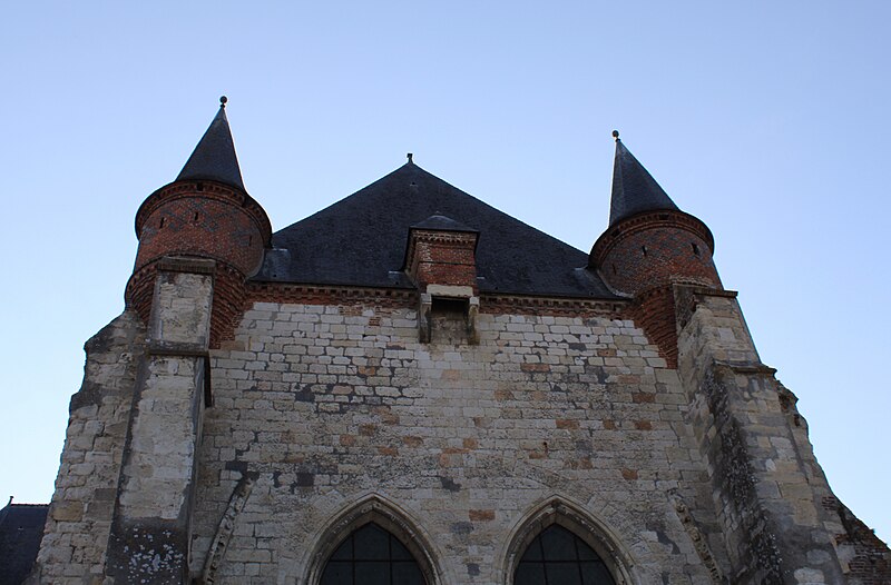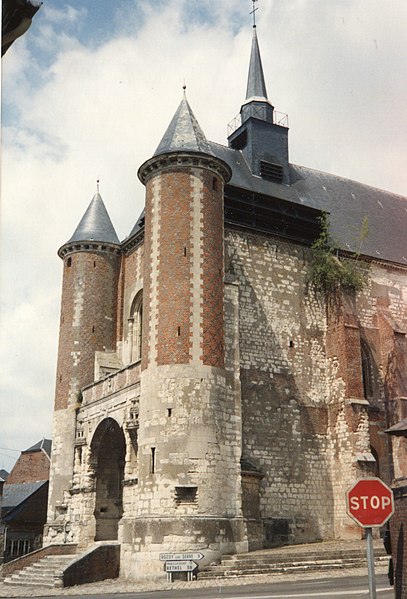 L'église Saint-Martin de Montcornet, dans l'Aisne, appartient à la période de transition du roman au gothique et présente un plan en croix grecque, aussi large que long. Huit tourelles lui confèrent l'allure d'un château fort et son portail est décoré de belles sculptures gothiques ; la flèche qui la surmontait a été détruite en 1574. Certains auteurs supposent une origine templière et évoquent l'existence, autrefois, d'une autre église paroissiale aujourd'hui disparue. Une maquette exposée à l'intérieur restitue l'ensemble des tours, tourelles et échauguettes.
