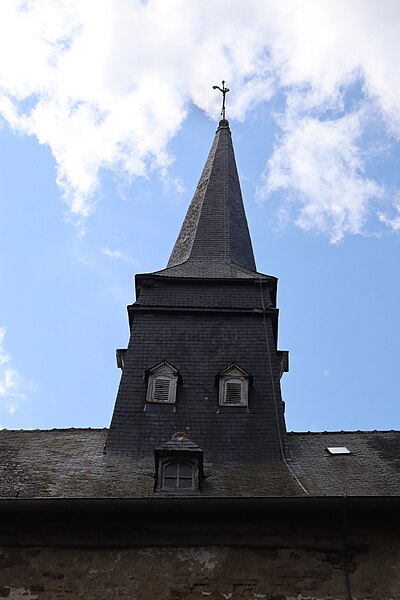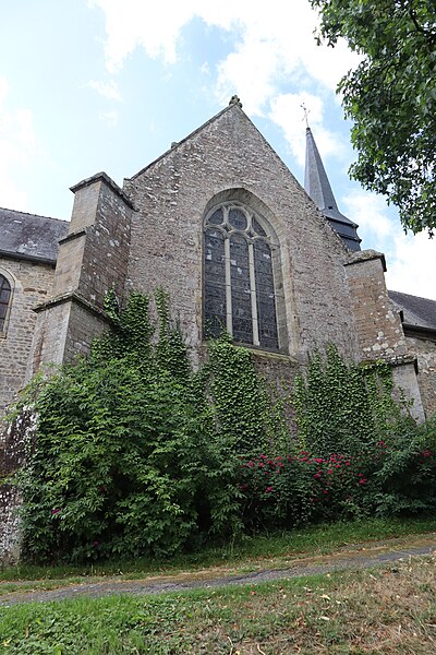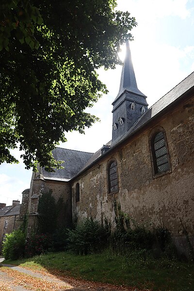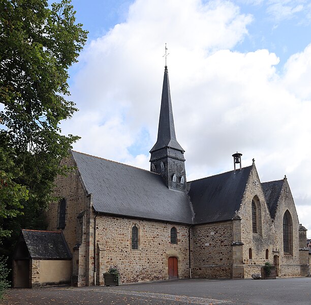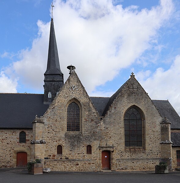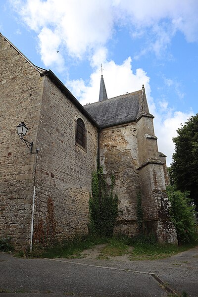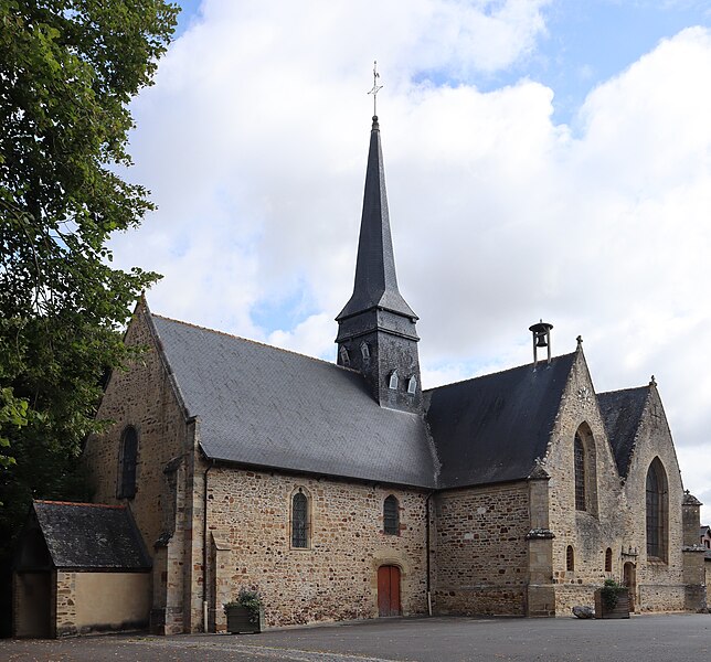 L'église Saint-Martin, située à Moulins (Ille-et-Vilaine), est considérée comme un prototype de l'église rurale du XVe siècle dans le département tout en conservant des éléments du XIIe siècle. La paroisse est attestée dès le XIIe siècle et dépendait alors de l'abbaye Saint-Melaine de Rennes. Des vestiges probables de l'édifice roman demeurent visibles dans le mur sud de la nef, repris en même temps que le mur occidental dans la première moitié du XVe siècle. Trois chapelles ont été ajoutées au XVIe siècle : la chapelle orientale s'ouvre par une porte à décor Renaissance dite porte mortuaire, et la chapelle occidentale contient une sacristie à étage, ancienne trésorerie, aménagée au XVIIIe siècle. La nef a été reconstruite au XVIIIe siècle et le chœur en 1836. Le portail occidental, daté du XVe ou du XVIe siècle, était autrefois en arc brisé ; il est encadré de deux colonnettes aux chapiteaux formés de petites têtes humaines et surmonté d'une archivolte en arc brisé. La façade sud présente une porte Renaissance flanquée de deux pilastres à chapiteaux feuillés. Une flèche polygonale s'élève au centre de l'édifice. Le porche occidental pourrait avoir été ajouté au XVIIIe siècle, période où la sacristie a été aménagée. L'architecture, le mobilier intérieur et une verrière attribuée à Michel Bayonne forment un ensemble patrimonial protégé au titre des Monuments historiques ; l'édifice a été inscrit par arrêté le 17 mai 1974. Le décor mural, en mauvais état de conservation, participe néanmoins au charme désuet de l'édifice, qui mérite une visite.