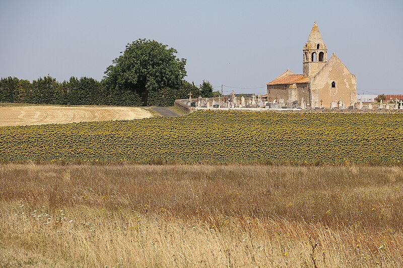L'église Saint-Martin-de-Noizé, située sur la commune associée de Noizé à Oiron dans les Deux-Sèvres, est isolée en pleine campagne et jouxte un petit cimetière à environ 500 mètres au sud-est du village. Les sources indiquent différentes datations de sa construction, évoquant les Xe, XIe ou XIIe siècles, et font également état d'une ancienne dépendance d'un prieuré relevant de l'abbaye de Bourgueil. La tradition locale rapporte que saint Martin aurait, lors d'un passage dans la région, transformé en ce lieu un ancien temple païen en lieu de culte chrétien. Une autre tradition explique l'isolement du bourg par une épidémie de peste noire ayant entraîné l'incendie des maisons par mesure sanitaire. Classé au titre des monuments historiques en 1976, le bâtiment se trouve proche de l'ancienne voie romaine reliant Poitiers à Nantes et, selon le texte, servait d'étape aux pèlerins empruntant le chemin de Saint-Hilaire. À l'ouest, un porche couvert d'une charpente repose sur quatre piliers carrés et s'adosse au mur de la nef unique, dont l'extrémité orientale est marquée par un large fronton plat. Le clocher, de plan carré, est surmonté d'un cône de pierre lisse en forme de pomme de pin ; ses faces est et ouest sont percées chacune de deux arcades, les faces nord et sud d'une arcade unique, et ces ouvertures sont surmontées de petites lucarnes. À l'intérieur, la nef unique est séparée du chœur par un mur percé de deux grandes arcades en plein cintre, et le dallage conserve des dalles funéraires datées du XVIIe siècle. On note également, au bas droit de l'arcade centrale, la présence d'un bas-relief.